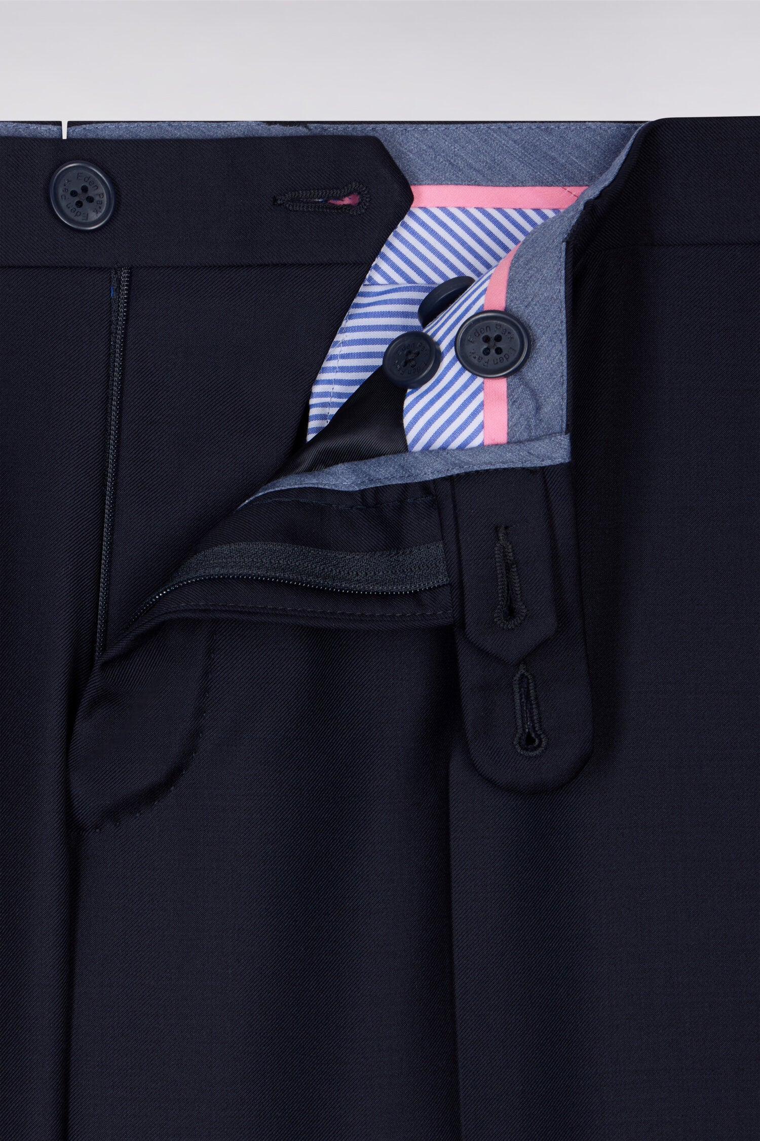 • Back buttoned welt pockets