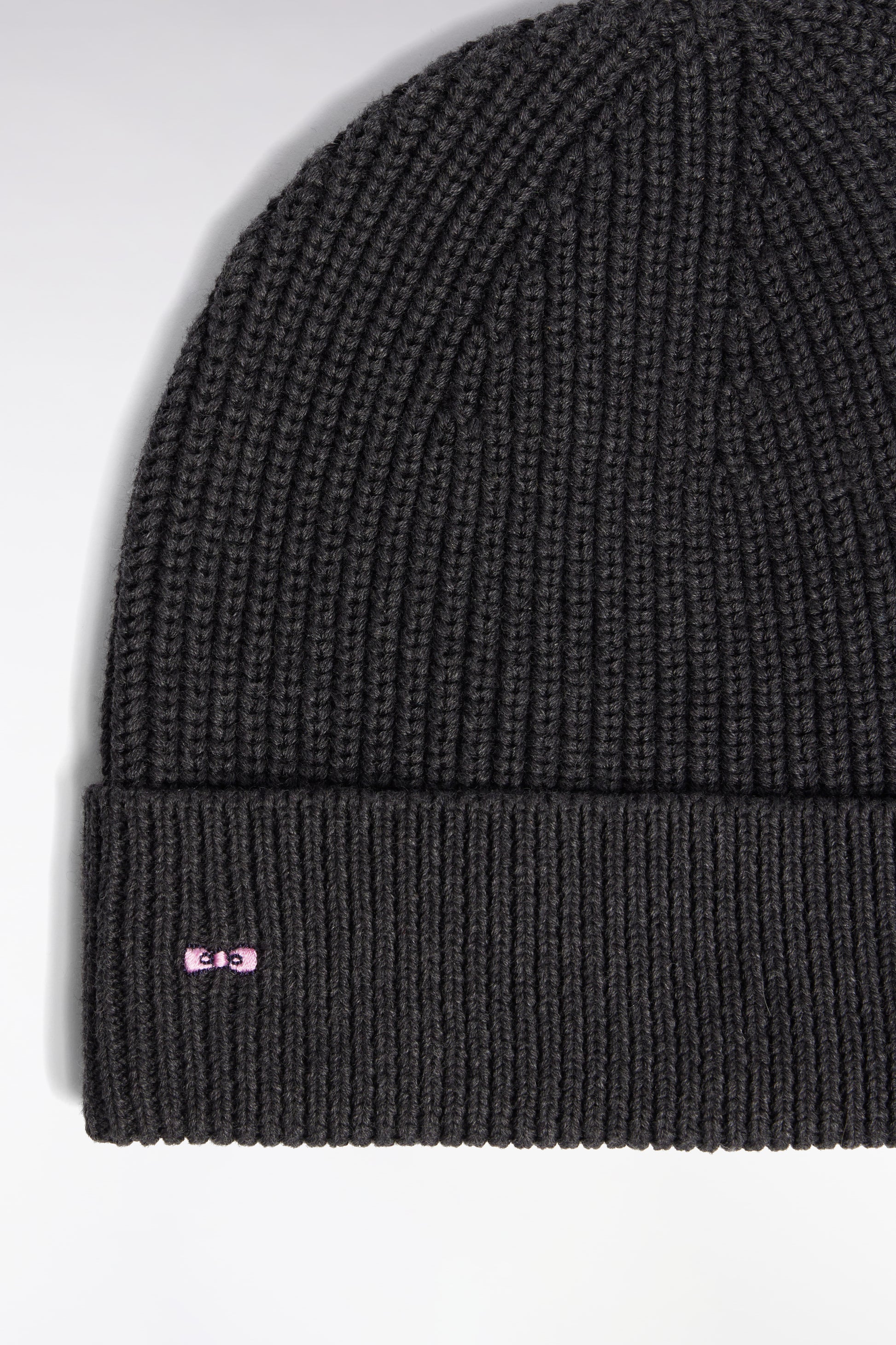 These ribbed knit cups combine warmth and simplicity. Knitted in pure cotton, they offer breathable, natural comfort. Topped with a cuff, they are adorned with a discreet claw featuring our House emblem: the pink bow tie. Available in three timeless colors, these hats will be a welcome addition to any fall-winter wardrobe.
