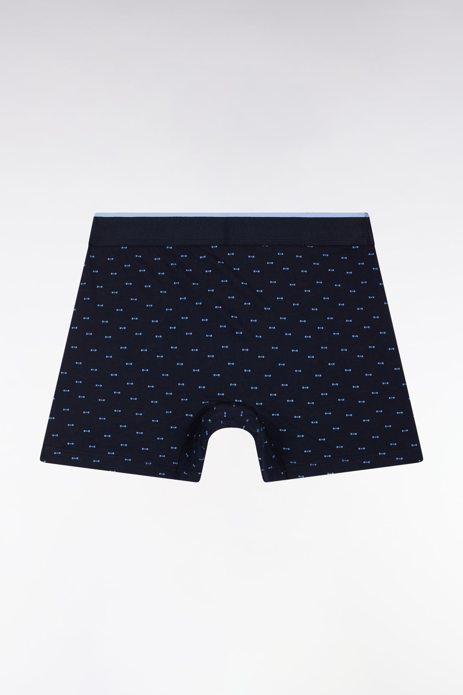 Cotton jersey boxer shorts with blue bow tie micropatterns