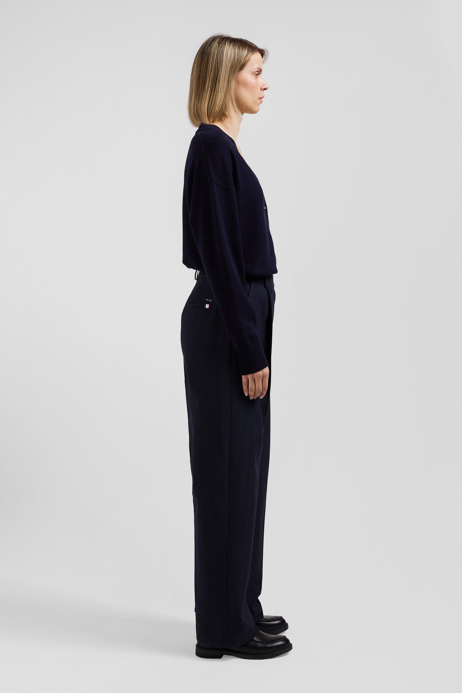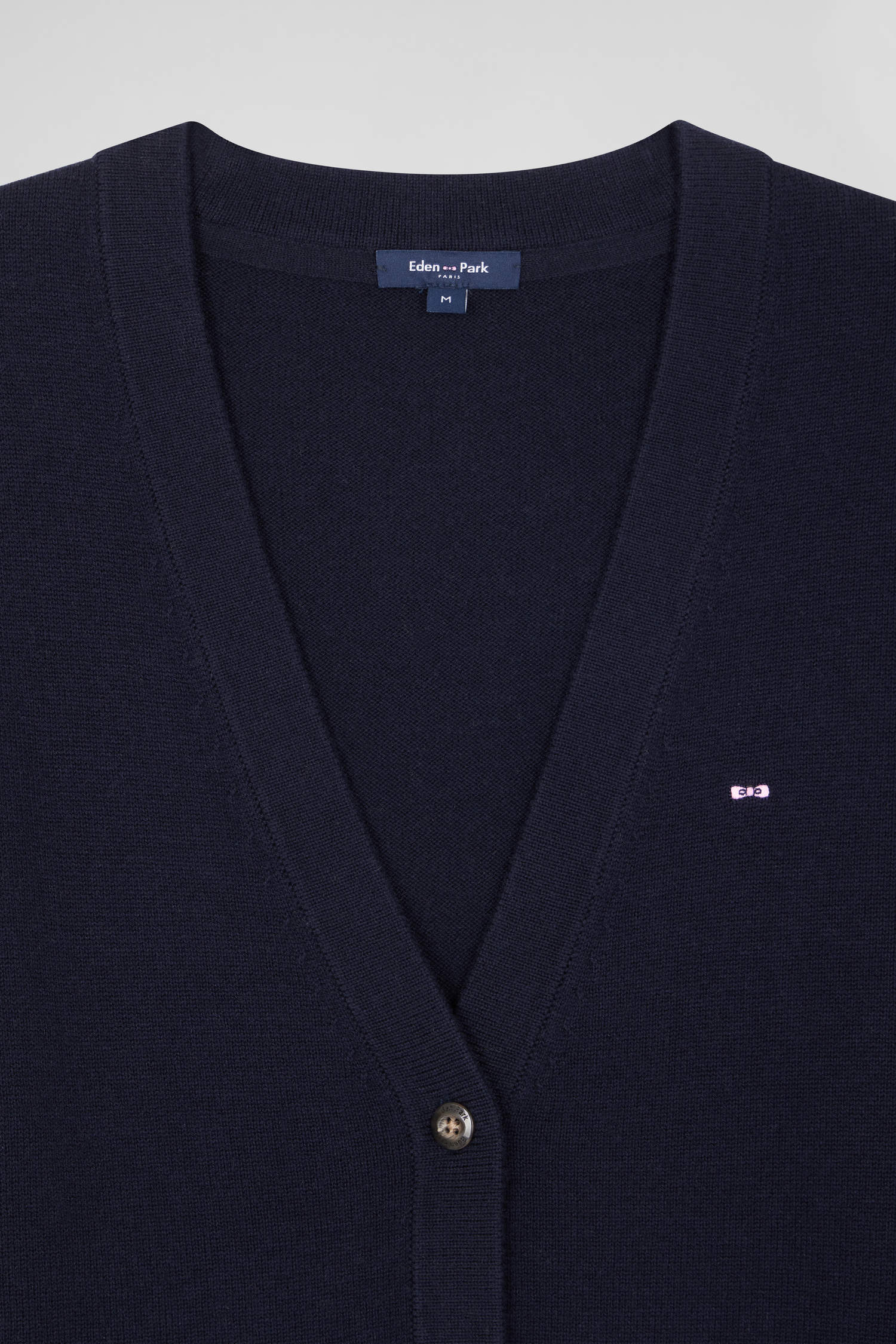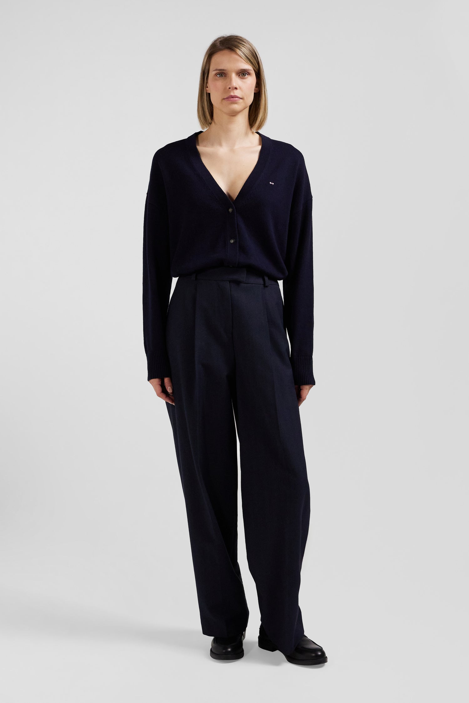 This timeless wool and cotton cardigan is available in six timeless colors to match your entire fall-winter wardrobe. Featuring classic buttoning and a V-neckline, this cardigan is slightly loose-fitting for easy layering, with ribbing at the sleeves and waist for a perfect fit. It's a safe choice for adding a touch of warmth and style to your wardrobe.