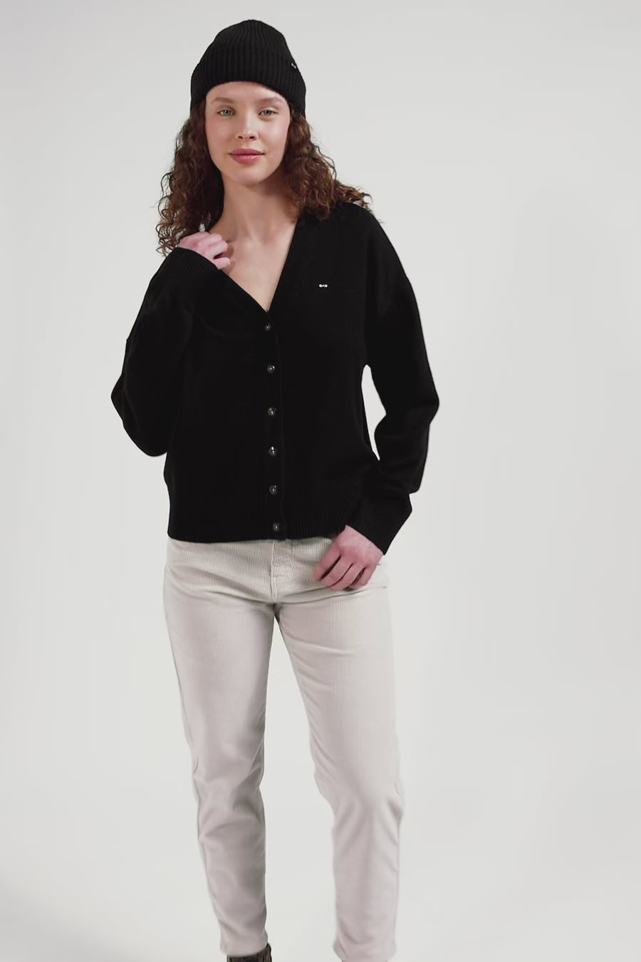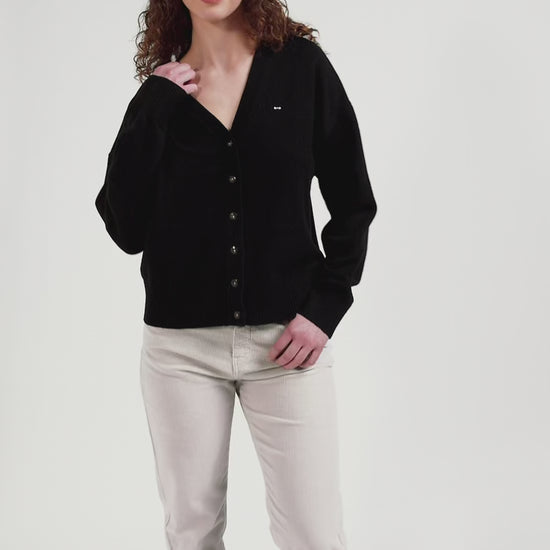This timeless wool and cotton cardigan is available in six timeless colors to match your entire fall-winter wardrobe. Featuring classic buttoning and a V-neckline, this cardigan is slightly loose-fitting for easy layering, with ribbing at the sleeves and waist for a perfect fit. It's a safe choice for adding a touch of warmth and style to your wardrobe.