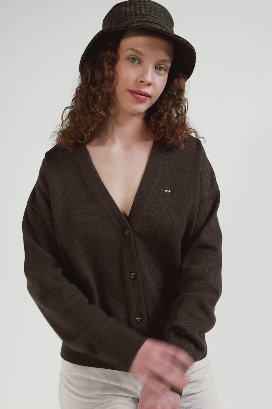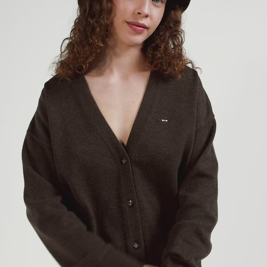 Relax brown blended wool and cotton cardigan