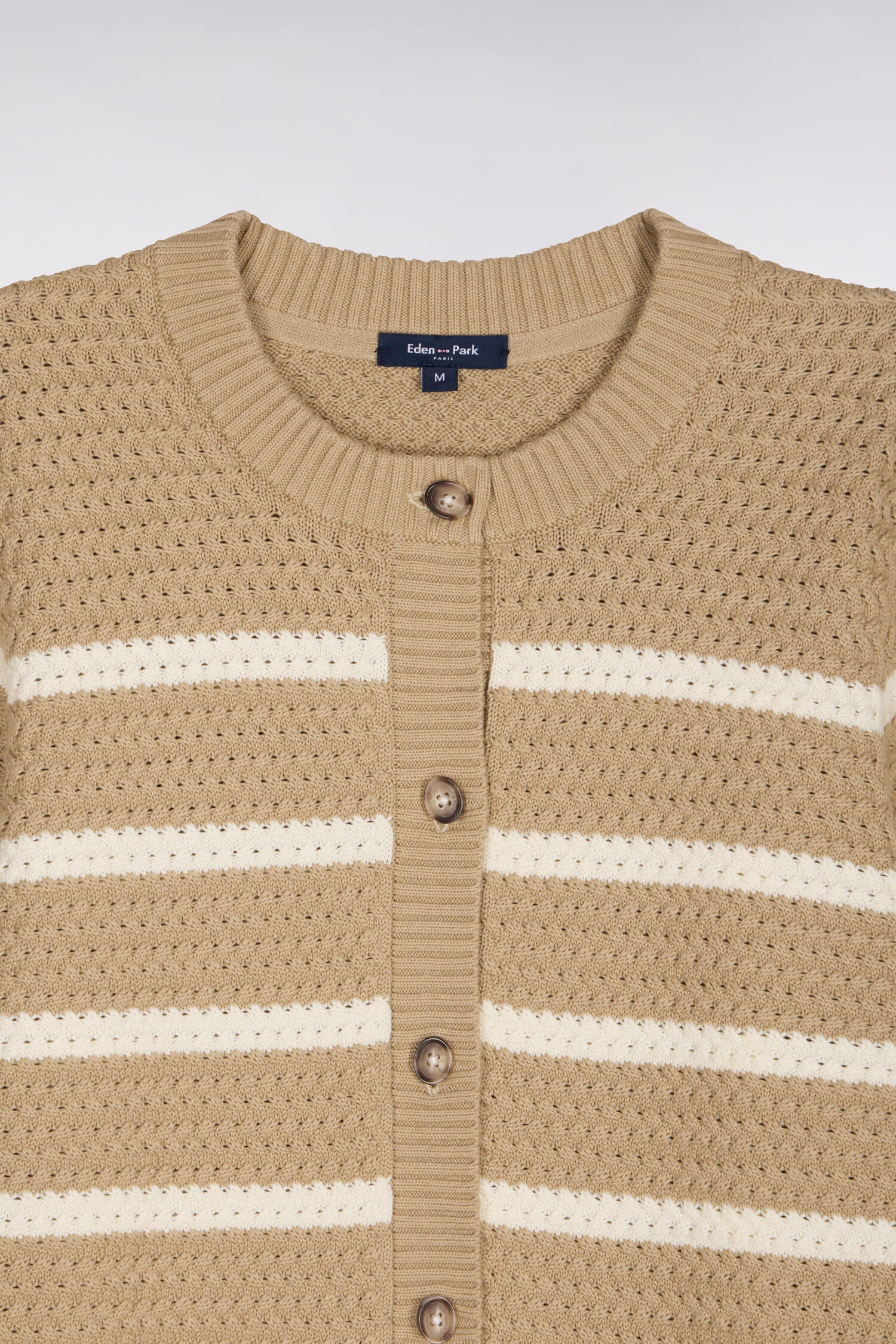 Cardigan marinière en maille tressée beige
