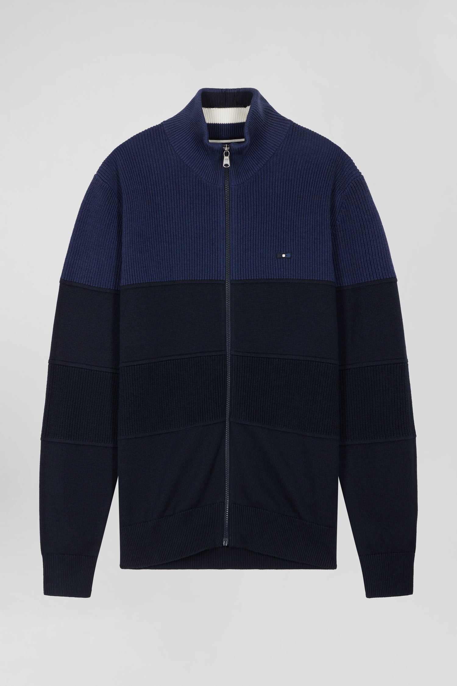 This zip-up cardigan with stand-up collar is a testament to the care we put into every detail of our collections. Its contrasting stitch effects, alternating pearl ribbing and jersey stitch, give this cotton cardigan an inimitable sport-chic look, whatever color you choose.