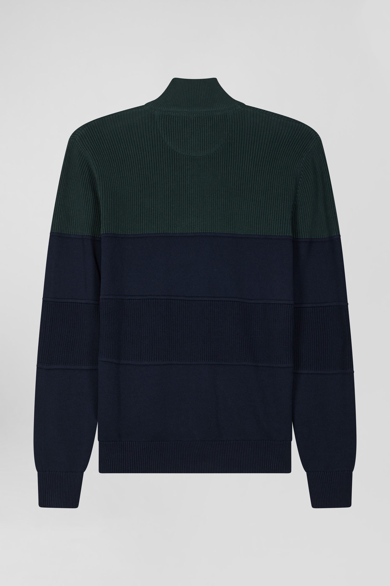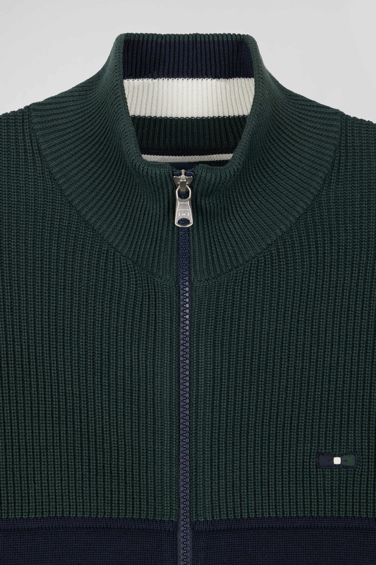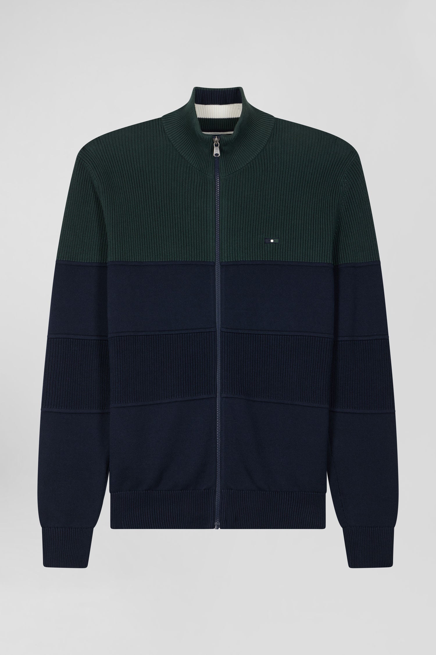 This zip-up cardigan with stand-up collar is a testament to the care we put into every detail of our collections. Its contrasting stitch effects, alternating pearl ribbing and jersey stitch, give this cotton cardigan an inimitable sport-chic look, whatever color you choose.