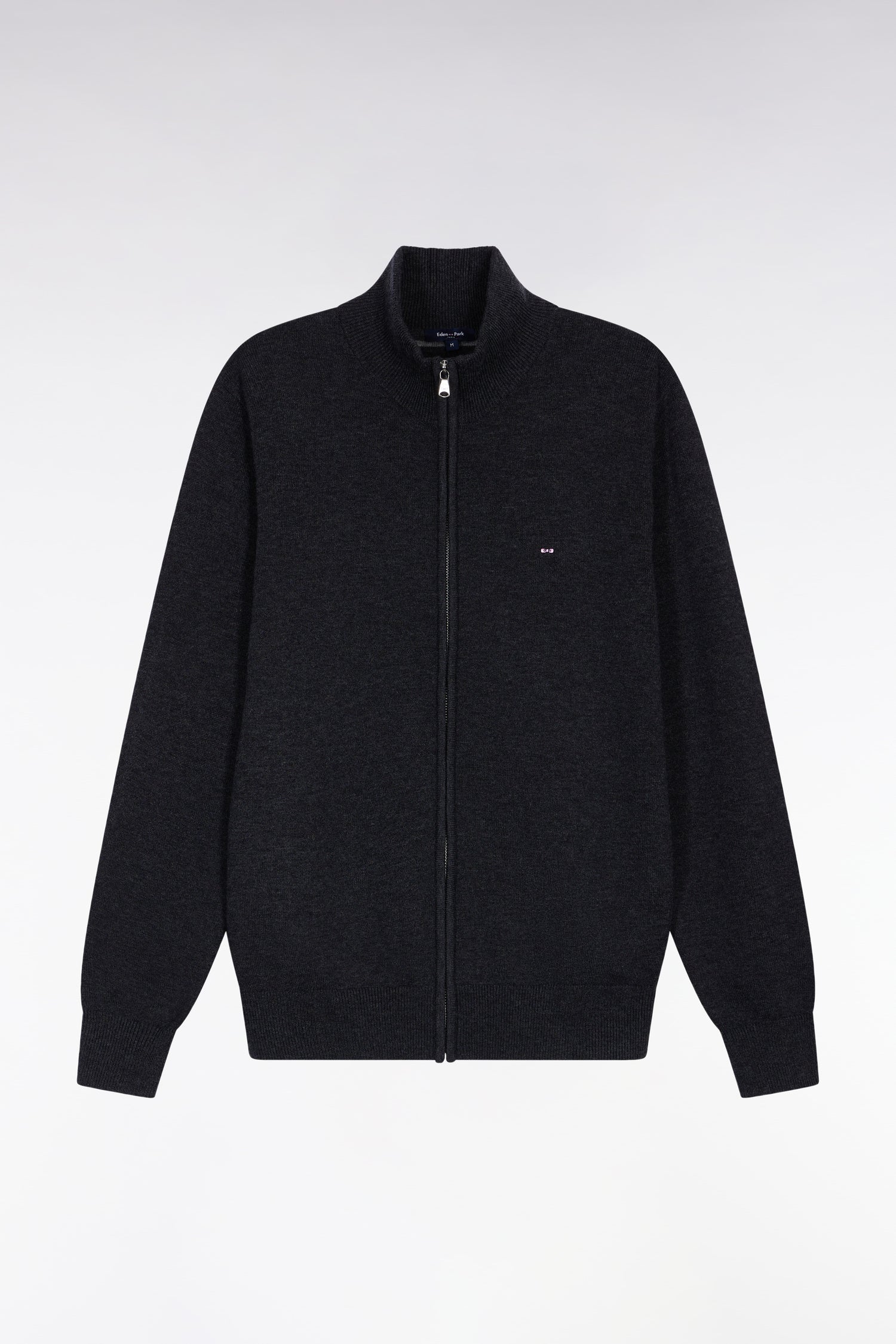 Zipped cardigan in dark grey wool and cotton, straight cut