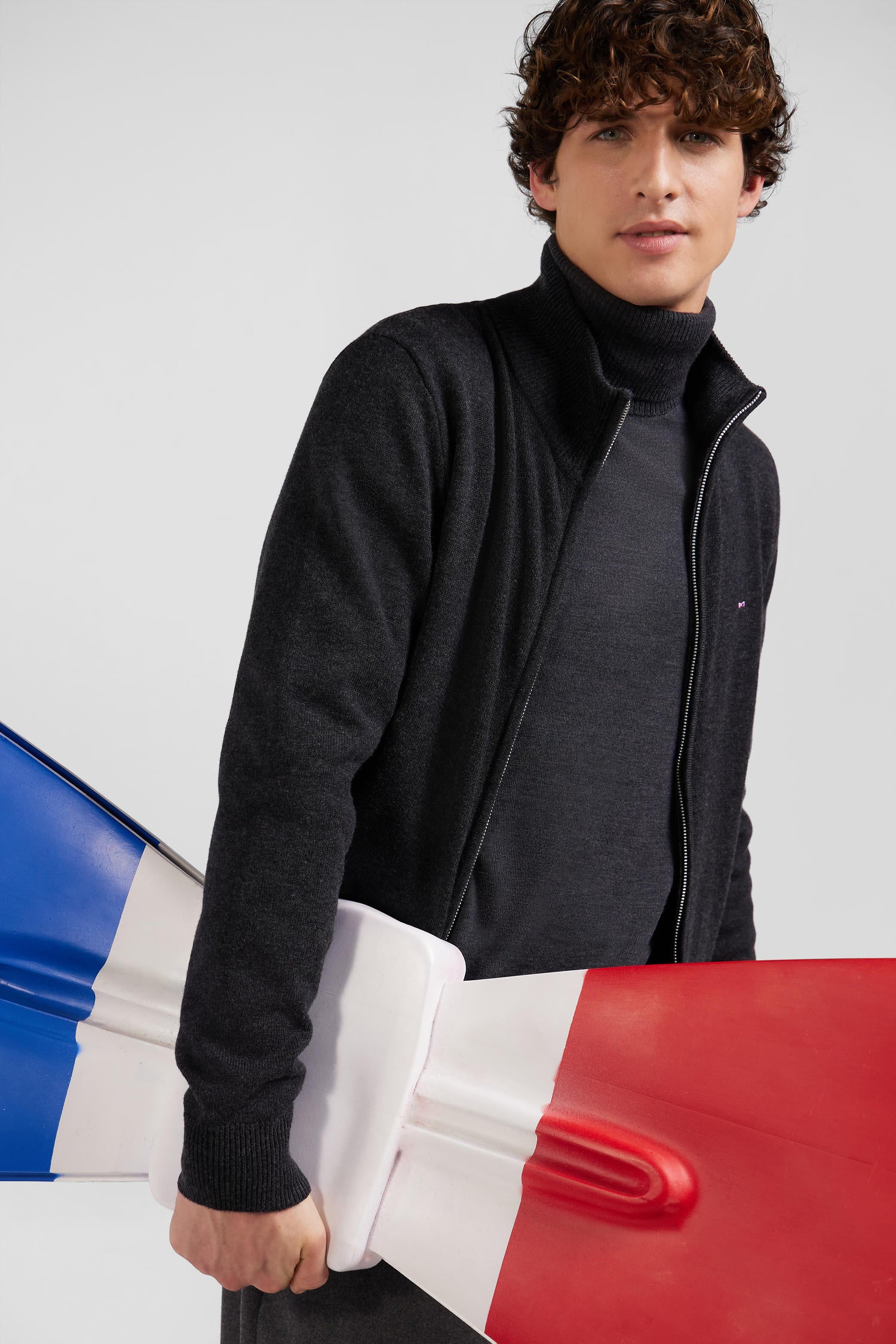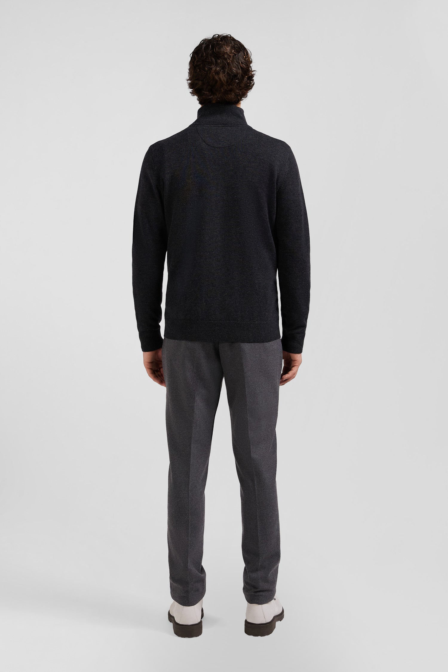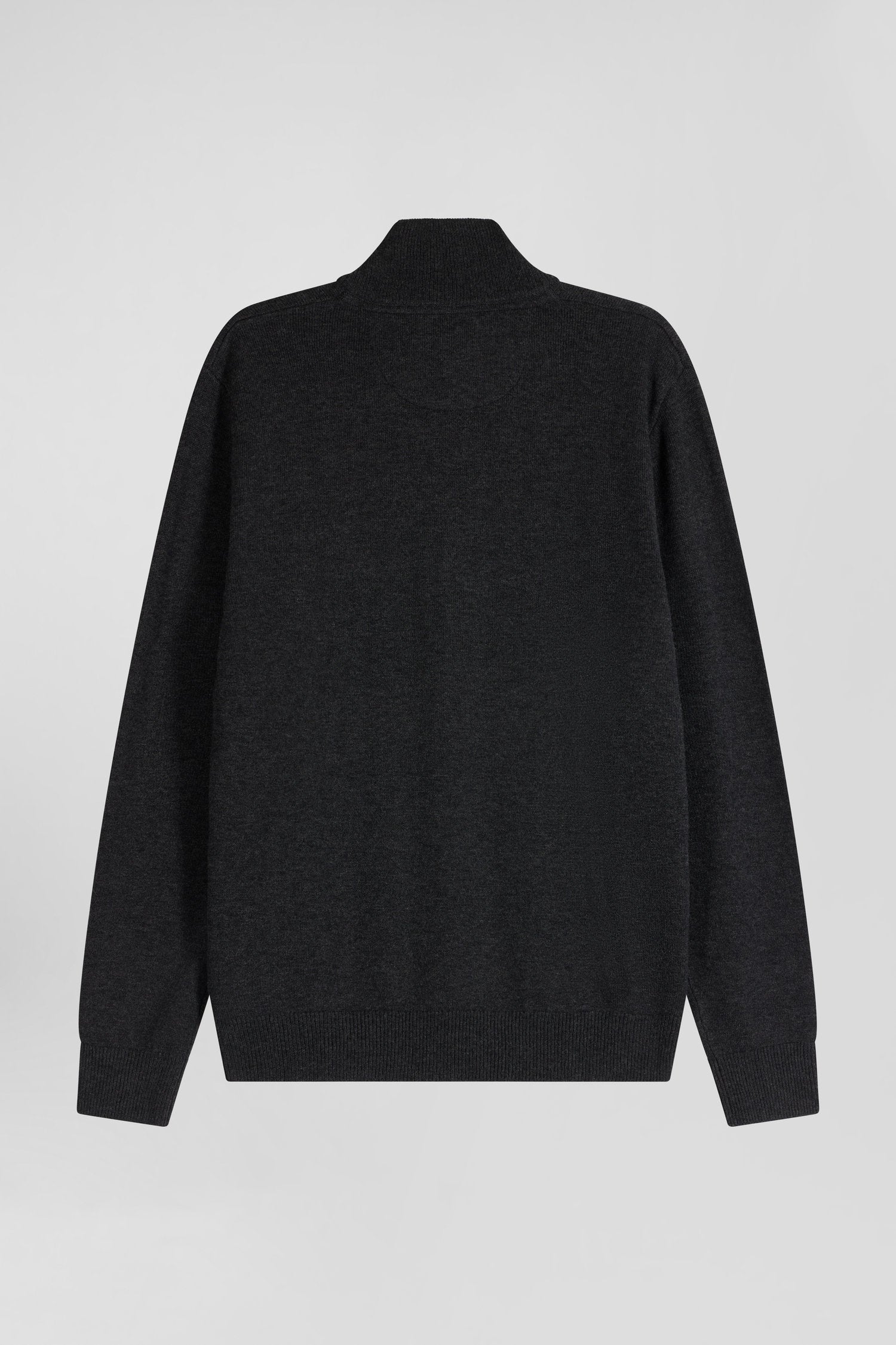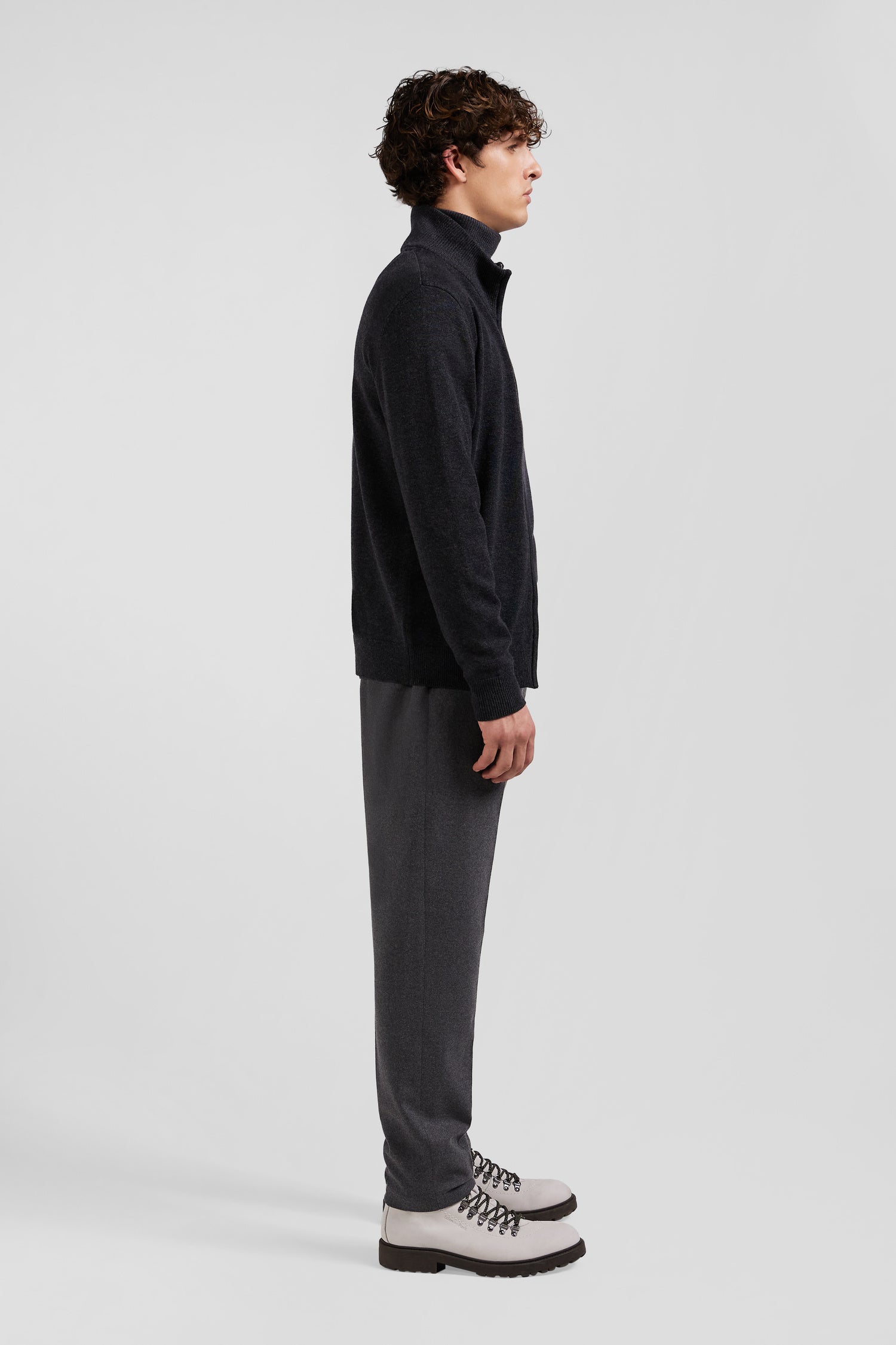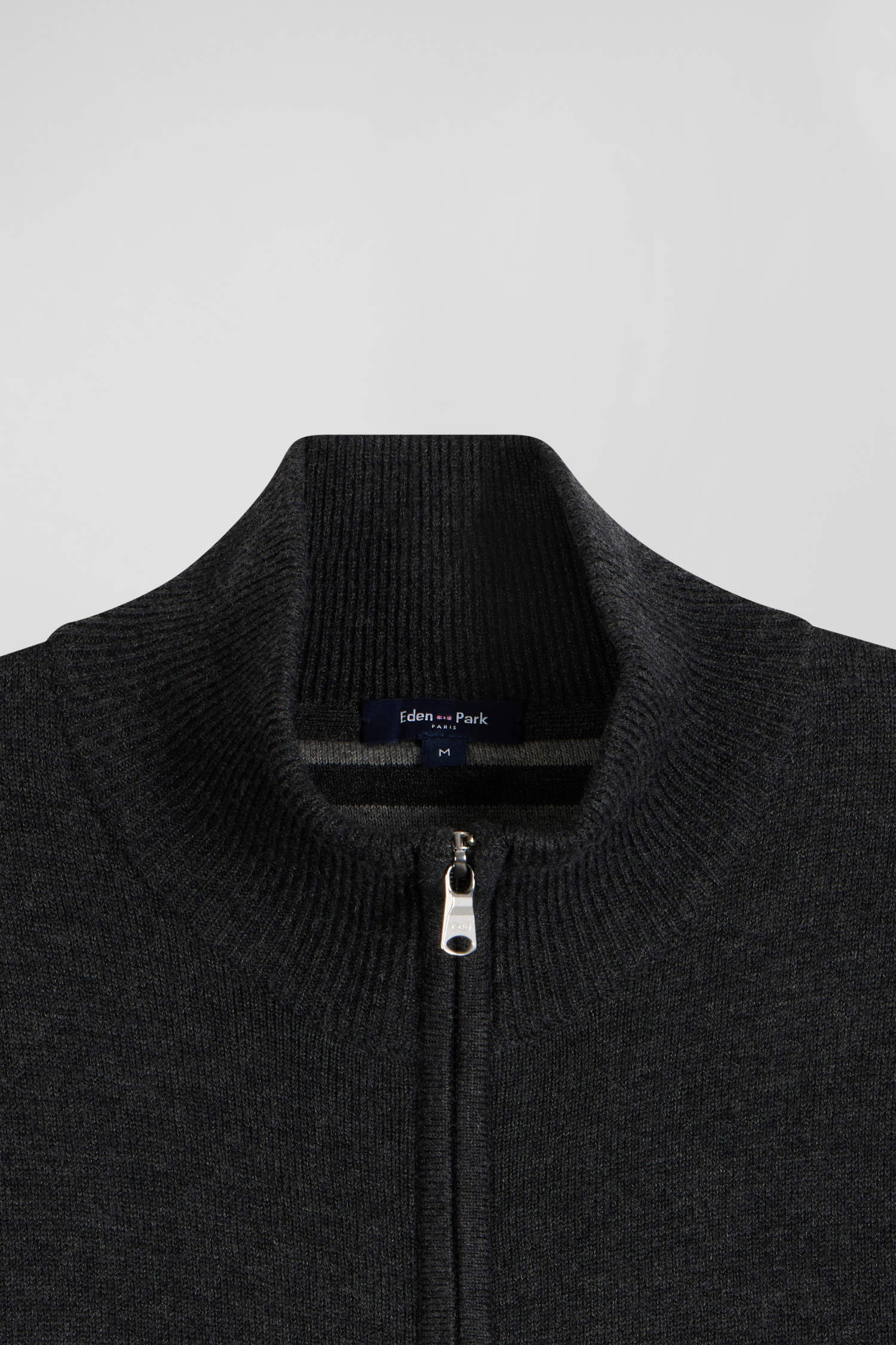 Regular anthracite grey plain wool and cotton zipped cardigan