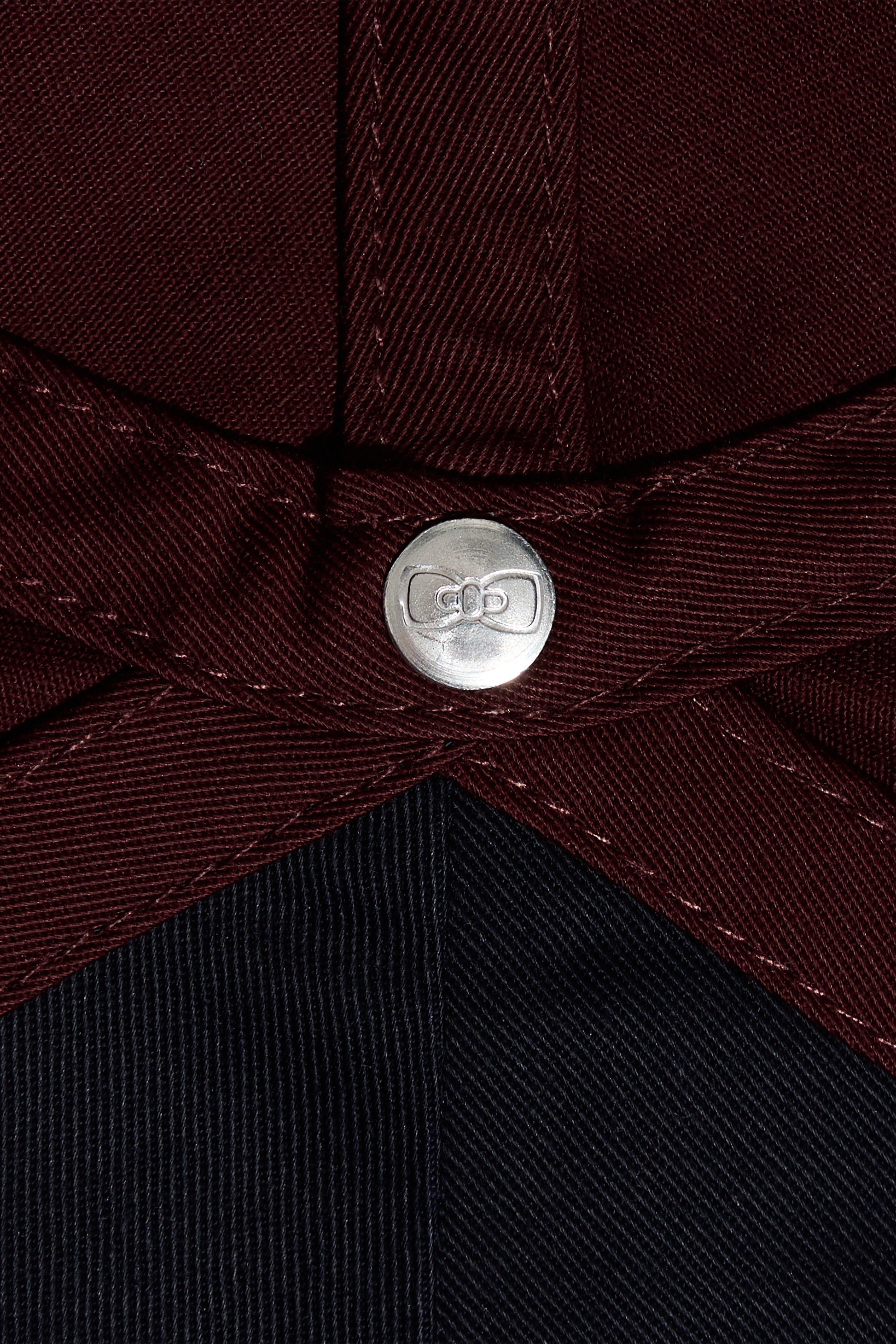 Opt for our two-tone cap, elegantly blending brown and navy, and embellished with a sports-inspired pattern on the front. This dynamic design lends a bold character to this timeless accessory.
