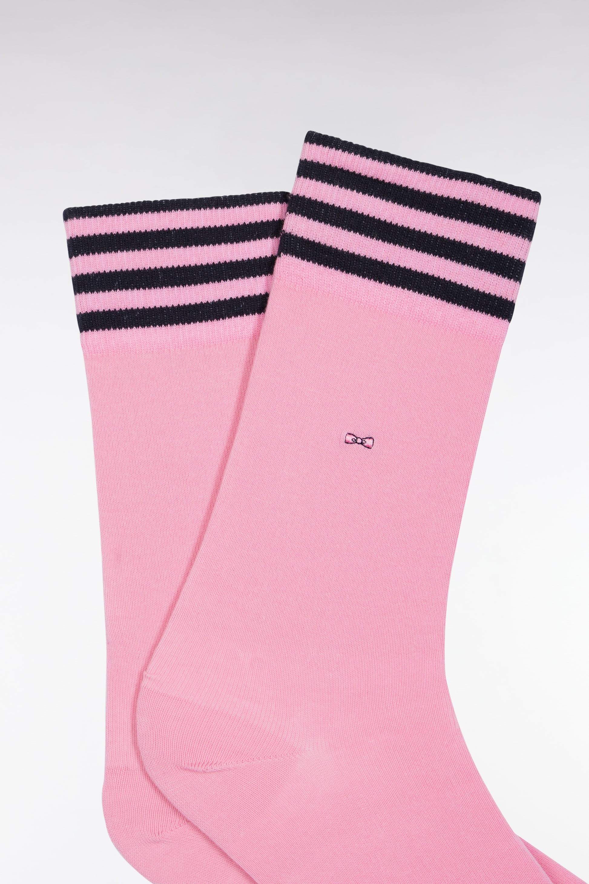 Graphic without overdoing it, these men's socks with contrasting stripes on the edges play up the sporty-chic detail. Comfortable and soft, the stretch knit follows your movements all day long. A model available in all our seasonal colors, to perfect your silhouette down to the smallest detail.