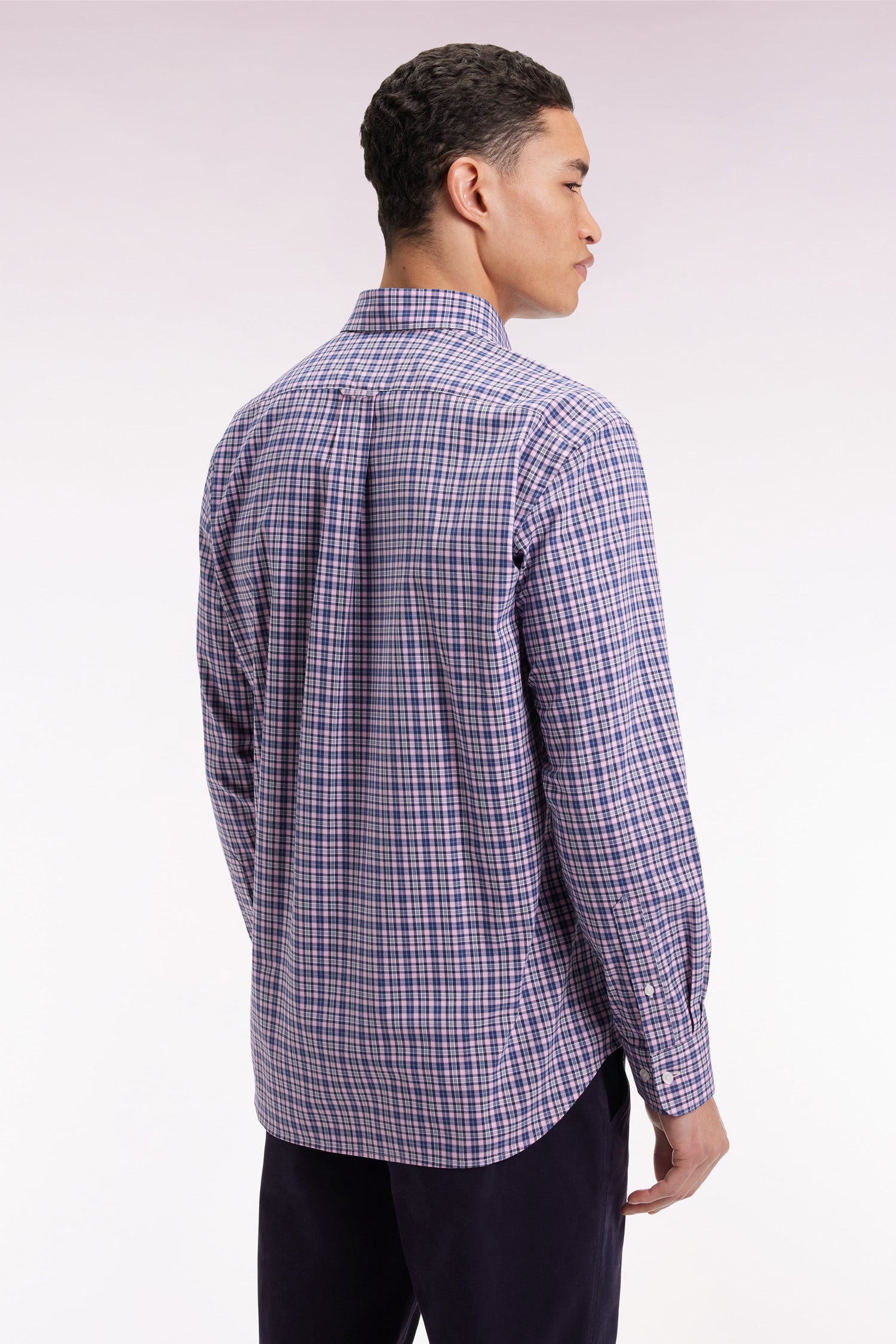 This men's plaid shirt, in navy cotton poplin punctuated with beige or pink, offers natural, understated elegance. Its straight cut and soft cotton make it a comfortable piece, ideal for structuring a casual outfit with style.