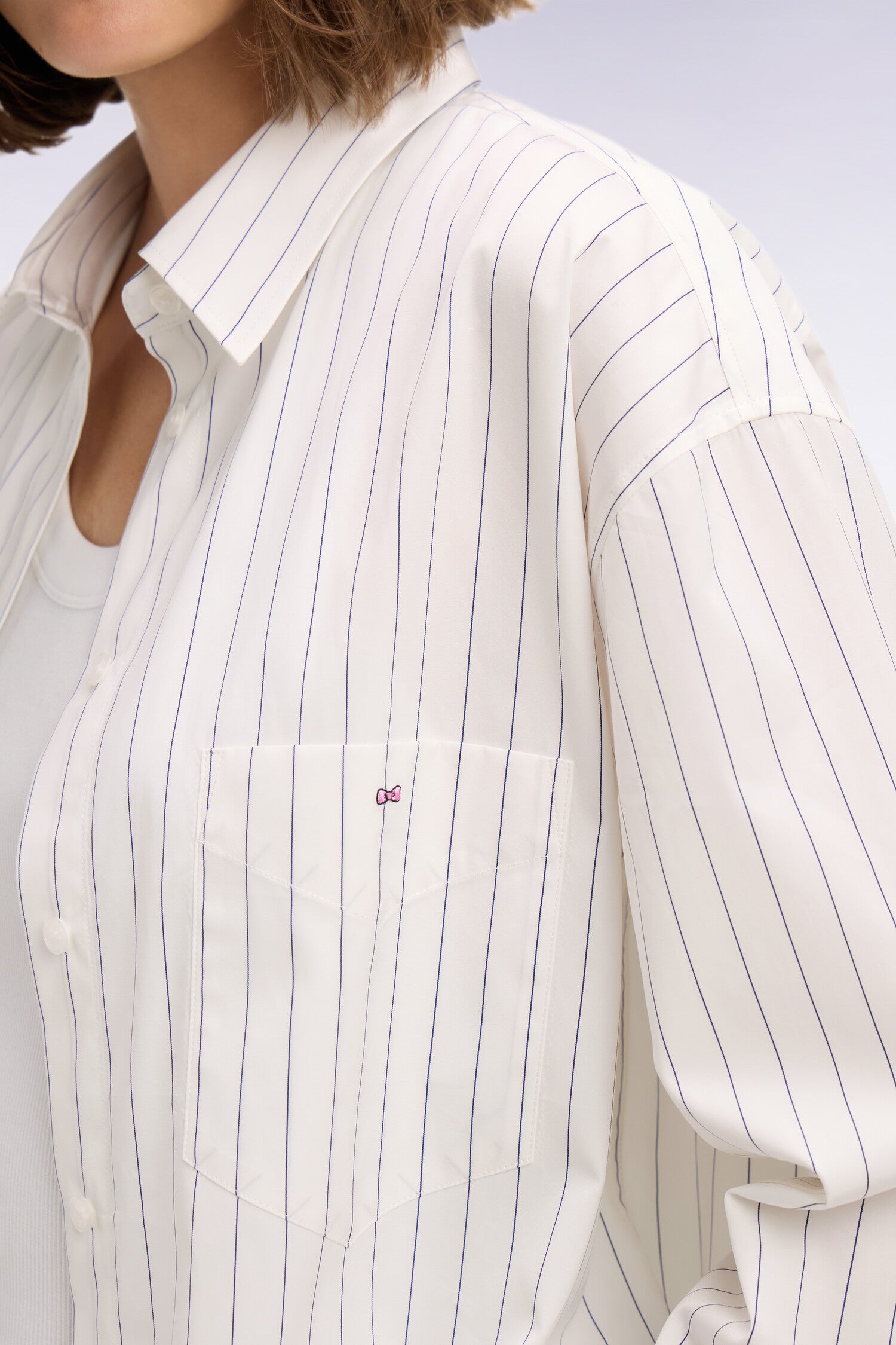 Chemise à fines rayures en popeline de coton blanche coupe oversized