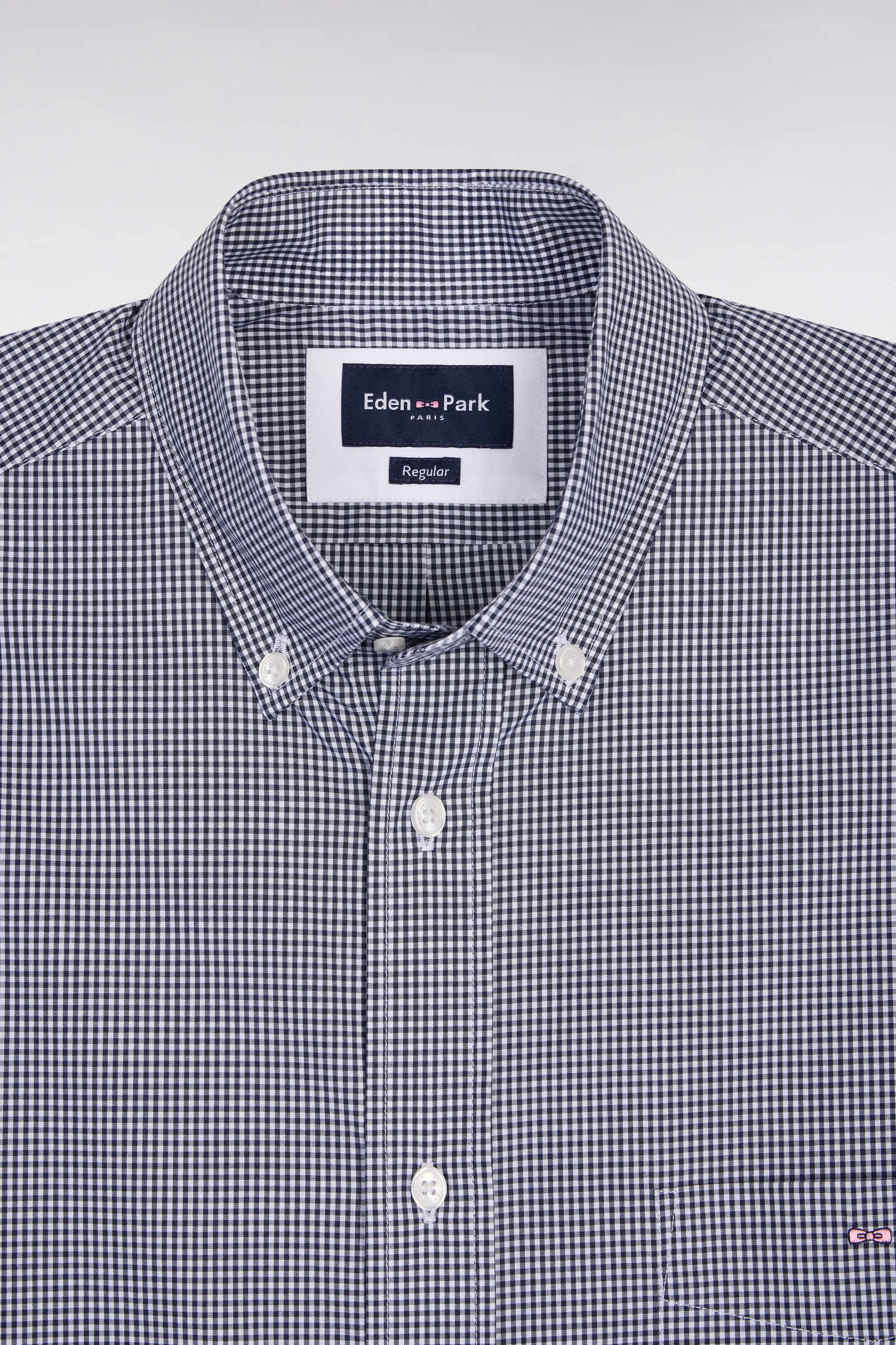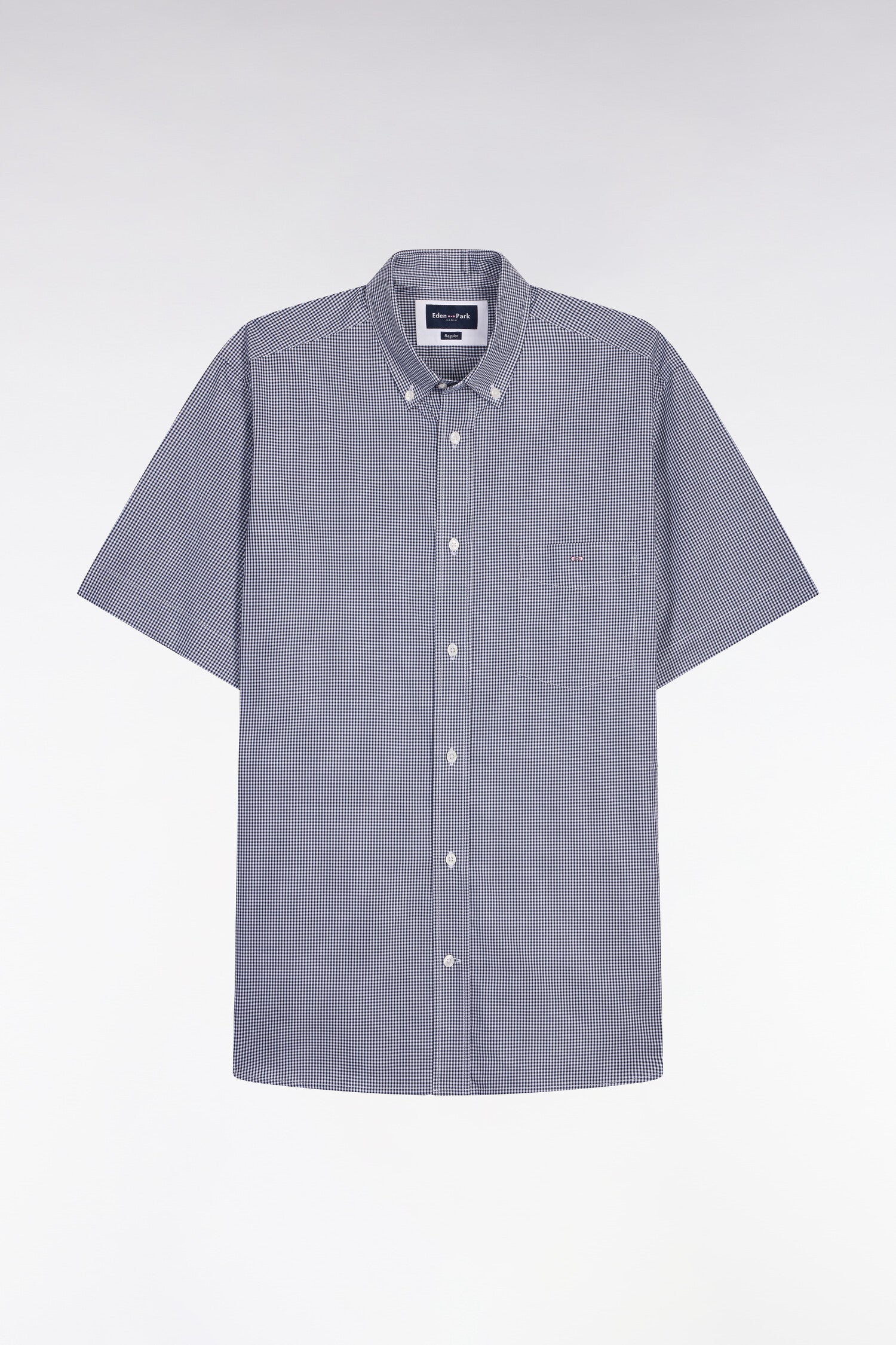 Chemise à manches courtes en coton à carreaux Vichy marine