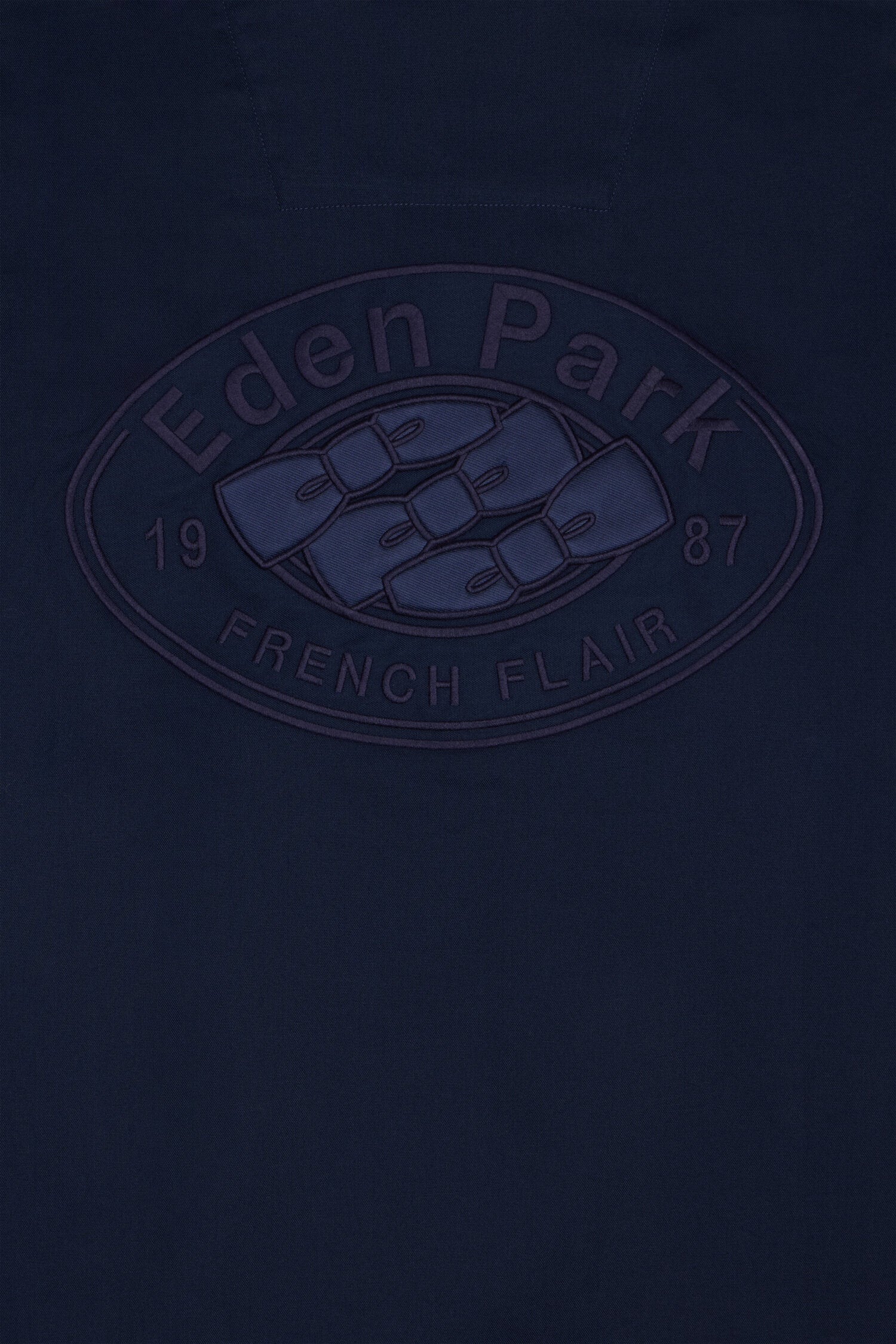 Cette chemise à manches courtes en coton marine se distingue par son design bicolore unique à notre vestiaire : une manche ciel et une manche rose, les coloris emblématiques Eden Park. Cette association contrastée affirme une allure sport chic immédiatement reconnaissable, tout en restant facile à porter au quotidien. Réalisée dans une coupe slim, cette chemisette offre confort, tenue et légèreté pour accompagner la belle saison. Son col à pointes boutonnées, sa broderie dos discrète et sa broderie poitrine complètent cette pièce identitaire. Pensée pour celui qui aime affirmer son style avec justesse et personnalité.