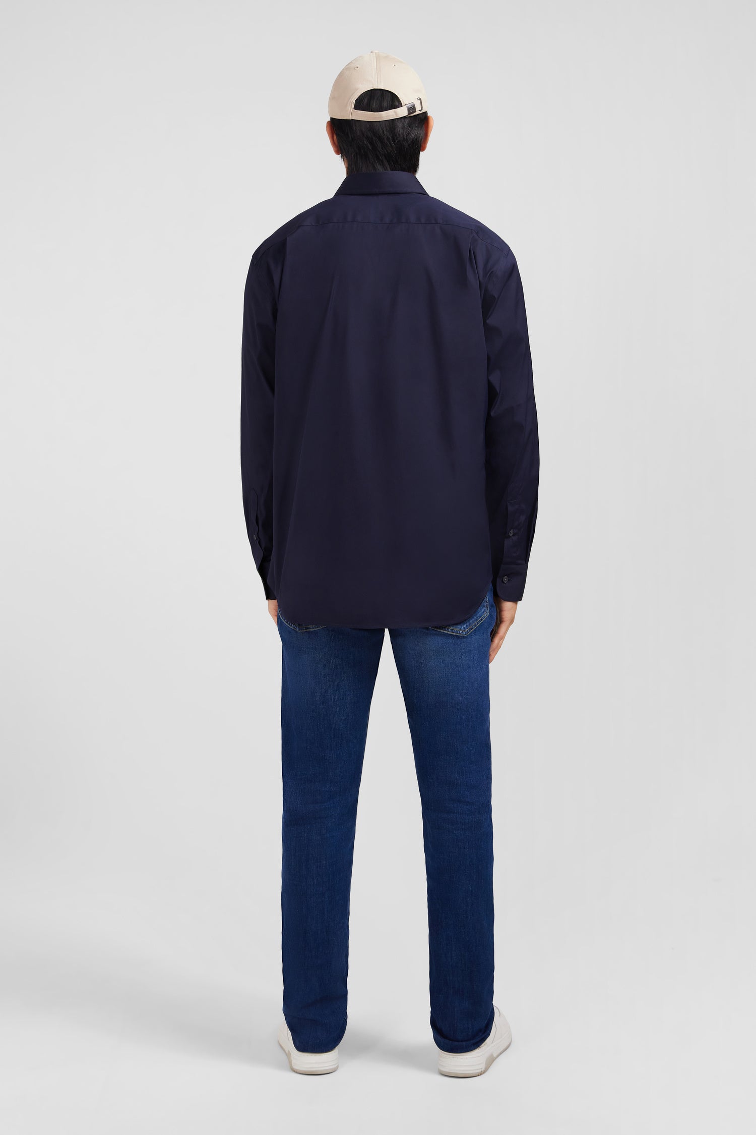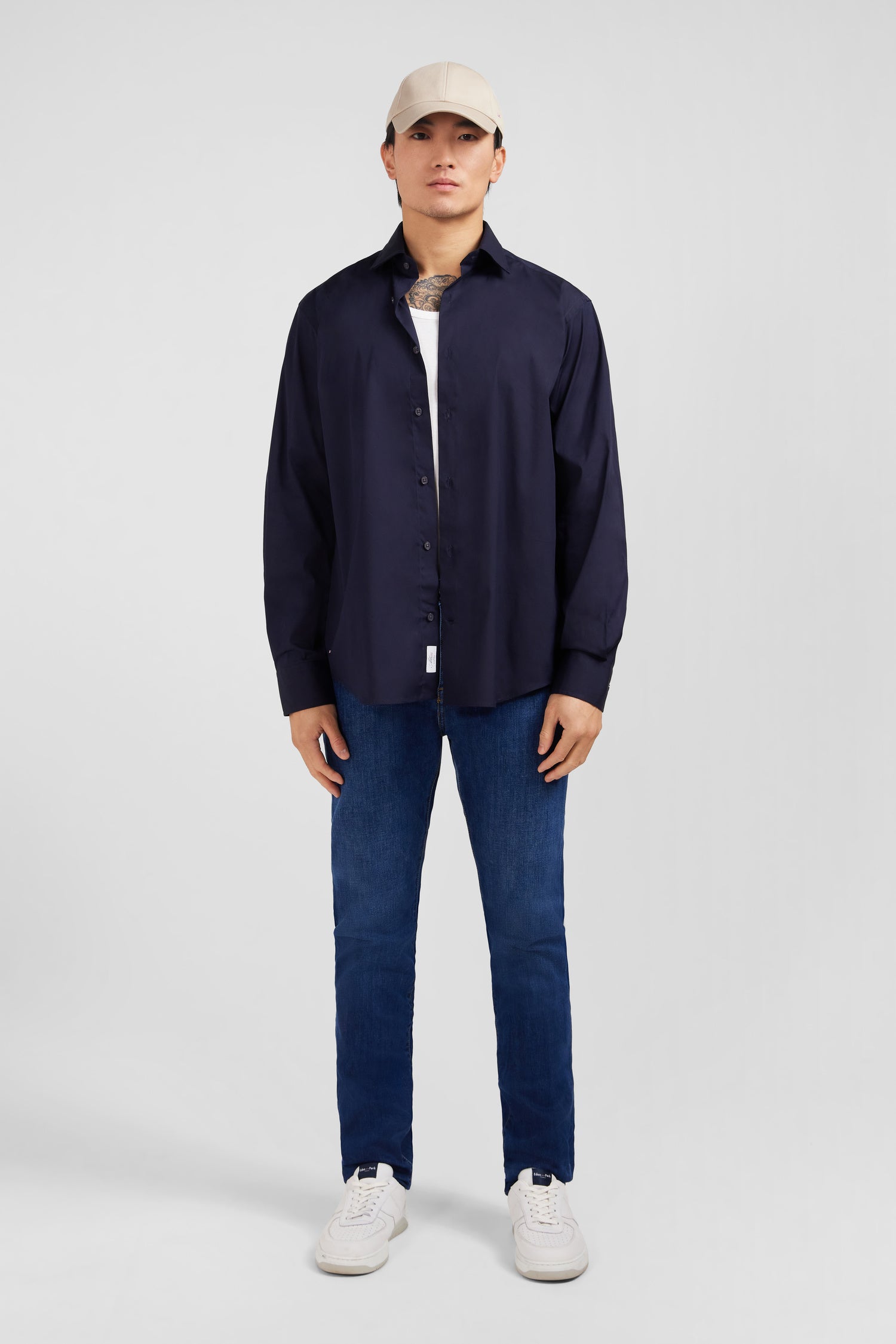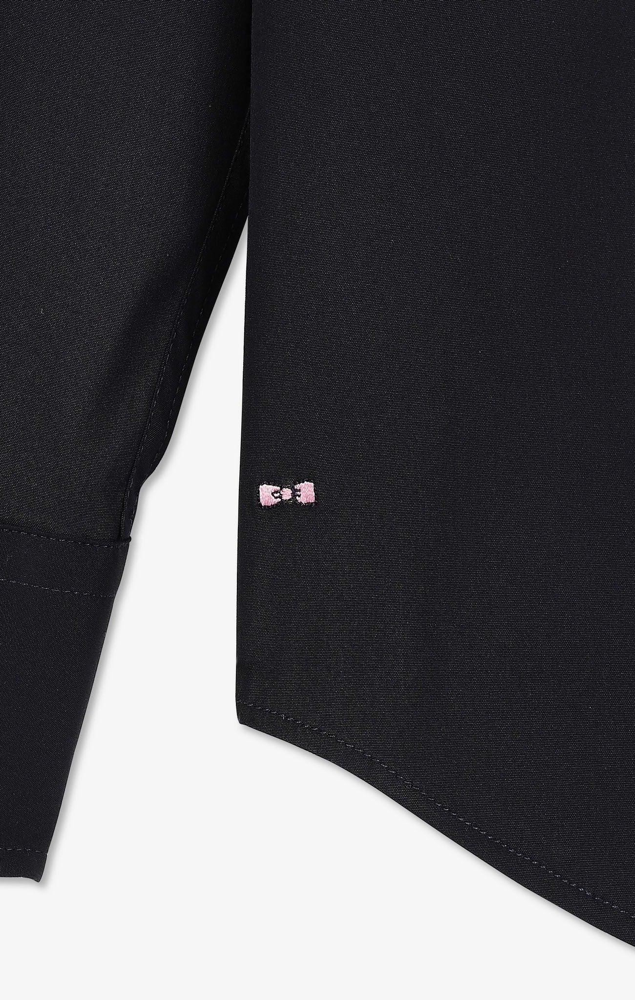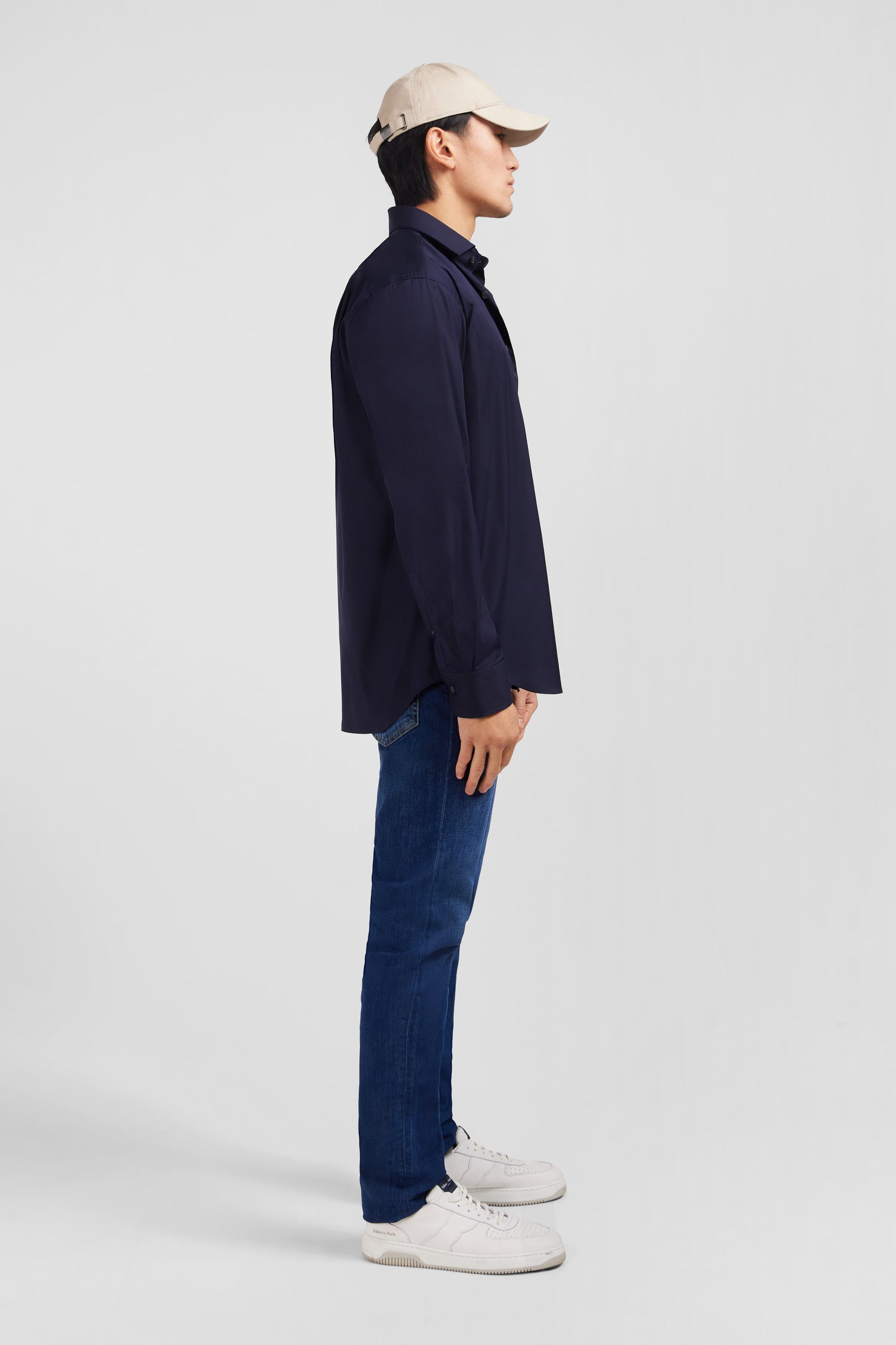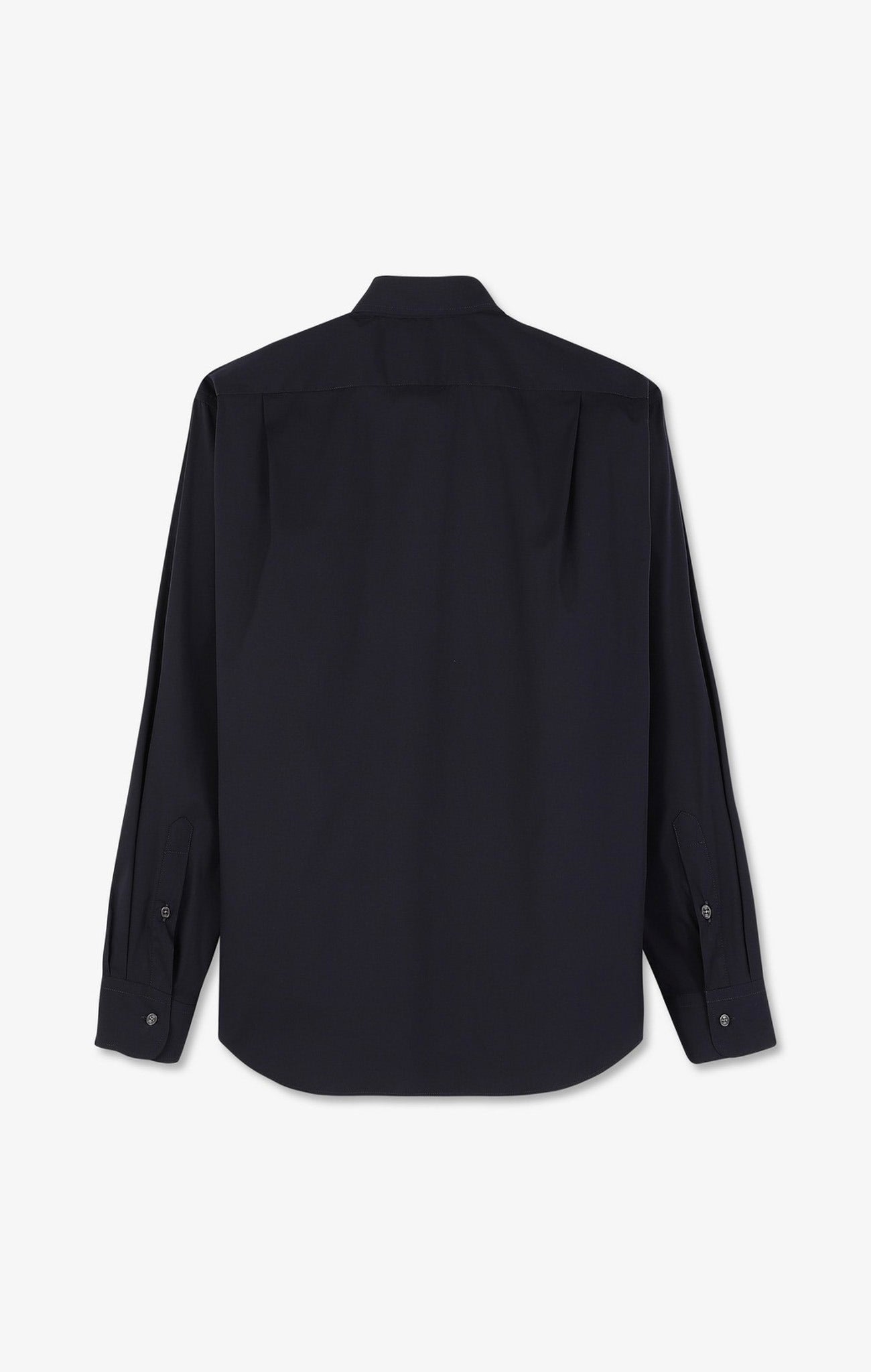 This plain coloured shirt is subtly accented with an embroidered bow tie on the bottom right. It is made of stretch cotton for more comfort