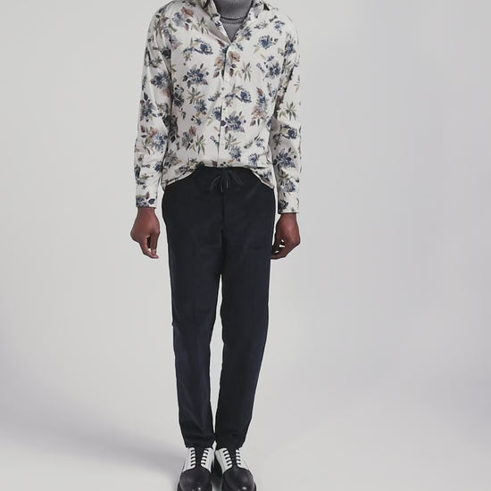 Modern navy blue elastic waist corduroy trousers