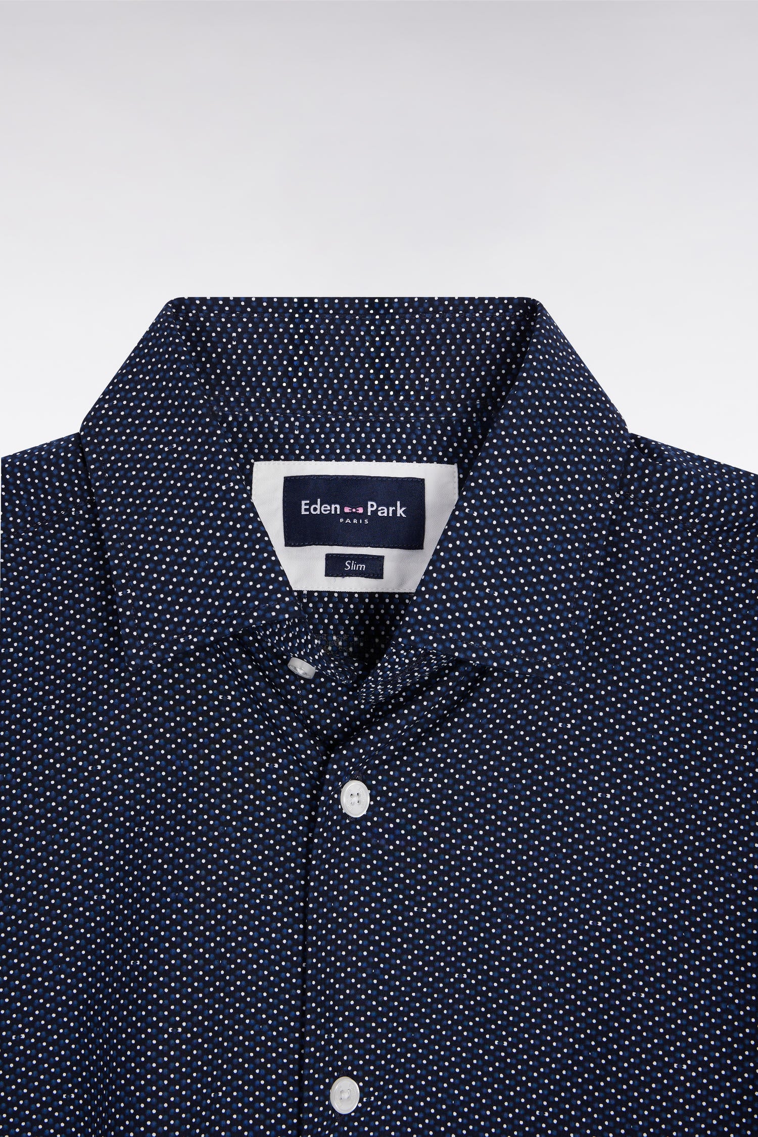 With its discreet pink or blue micro pea print on a navy background, this slim-fitting shirt has a modern look while respecting the codes of Eden Park elegance. Made from a soft, breathable cotton poplin, it features no chest pocket and bowtie embroidery at the bottom, a minimalist nod to the house's French Flair universe.