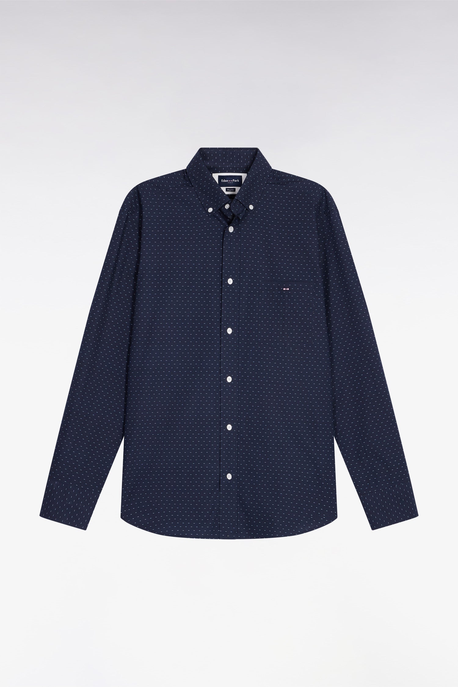 Designed in a print exclusive to our company, this men's shirt with a motif drawn in our workshops combines originality and elegance. A close look reveals the Eden Park emblem: the bow tie, repeated all-over and combined with circles for an original, graphic effect. A collector's item for lovers of French Flair elegance. This cotton poplin shirt, available in three colors, features all the meticulous finishing touches emblematic of the savoir-faire of our French house, including a button-down collar and signature oval buttons.