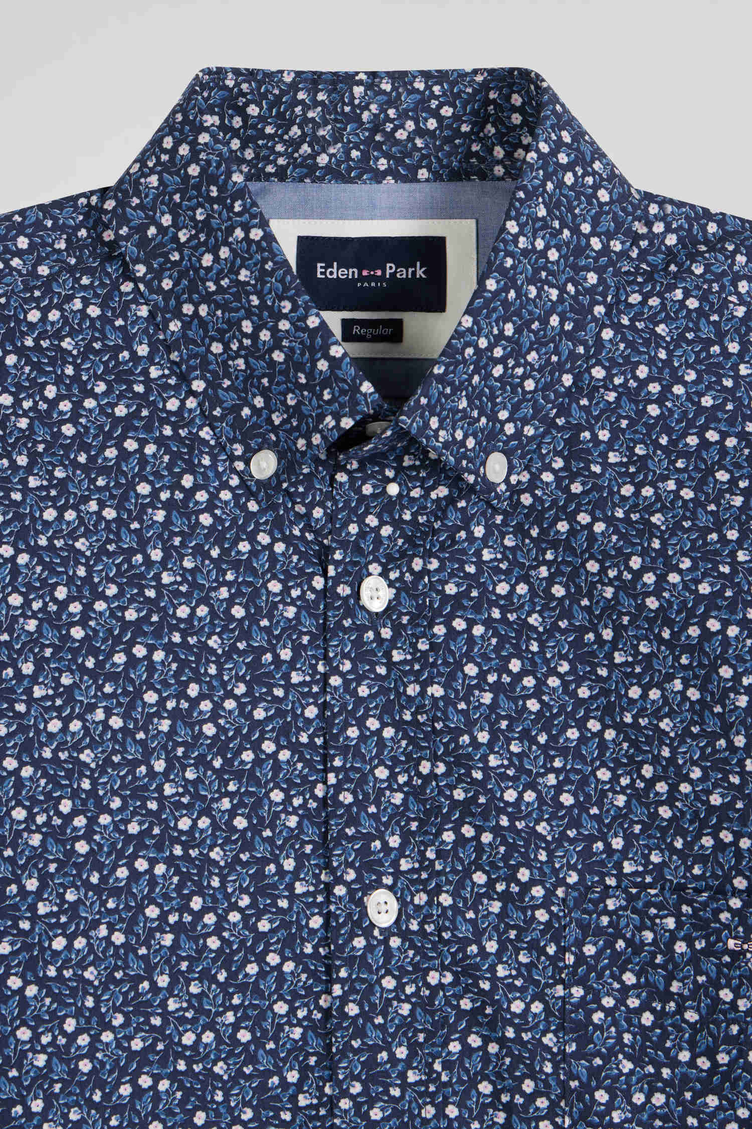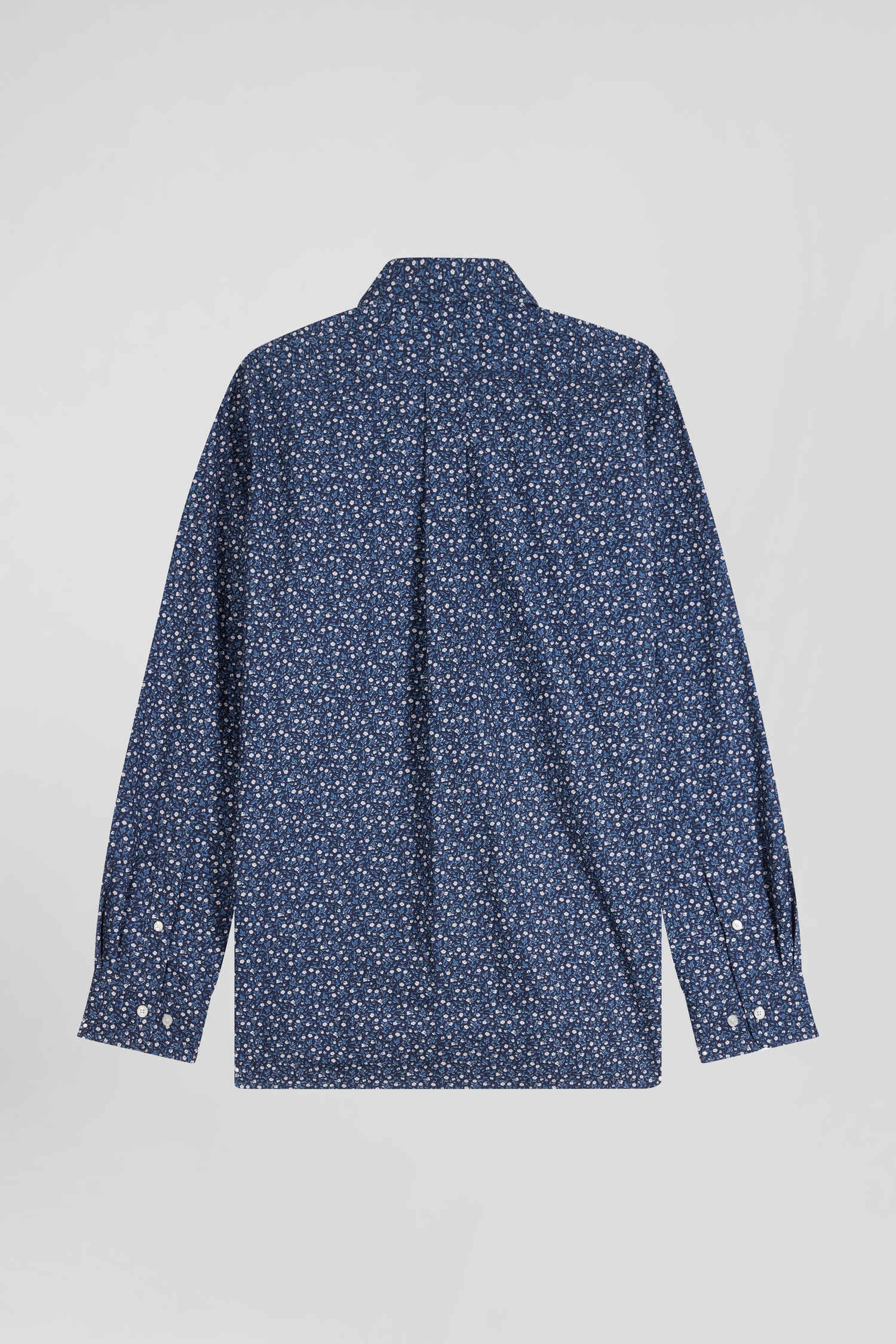Regular indigo cotton shirt with microprint