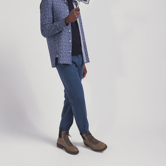 Regular blue chino trousers in stretch cotton gabardine