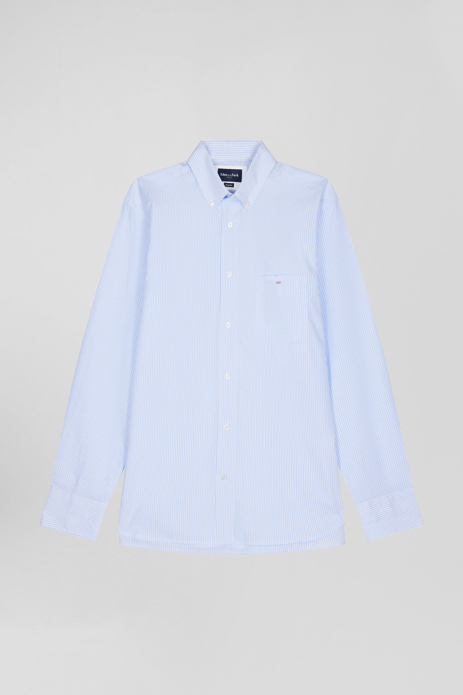 Our men's striped cotton jacquard shirt combines quality cotton with our inimitable craftsmanship. Available in navy blue, sky blue or pink, this striped shirt offers a regular fit for optimum comfort. With its practical pocket and button-down collar, it combines practicality with everyday elegance.