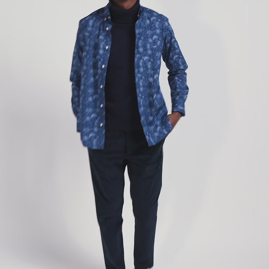 Regular navy blue cotton shirt with graphic print