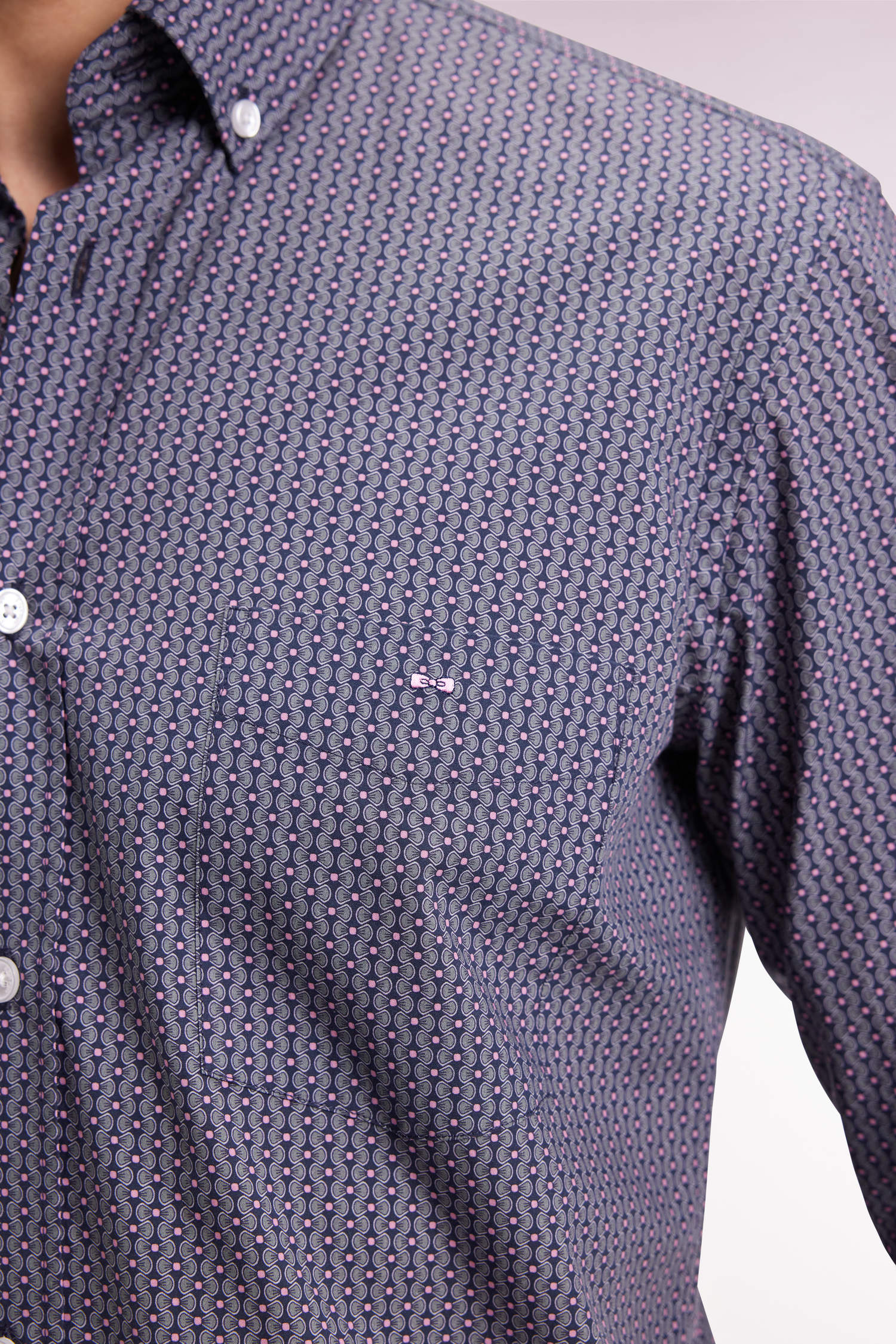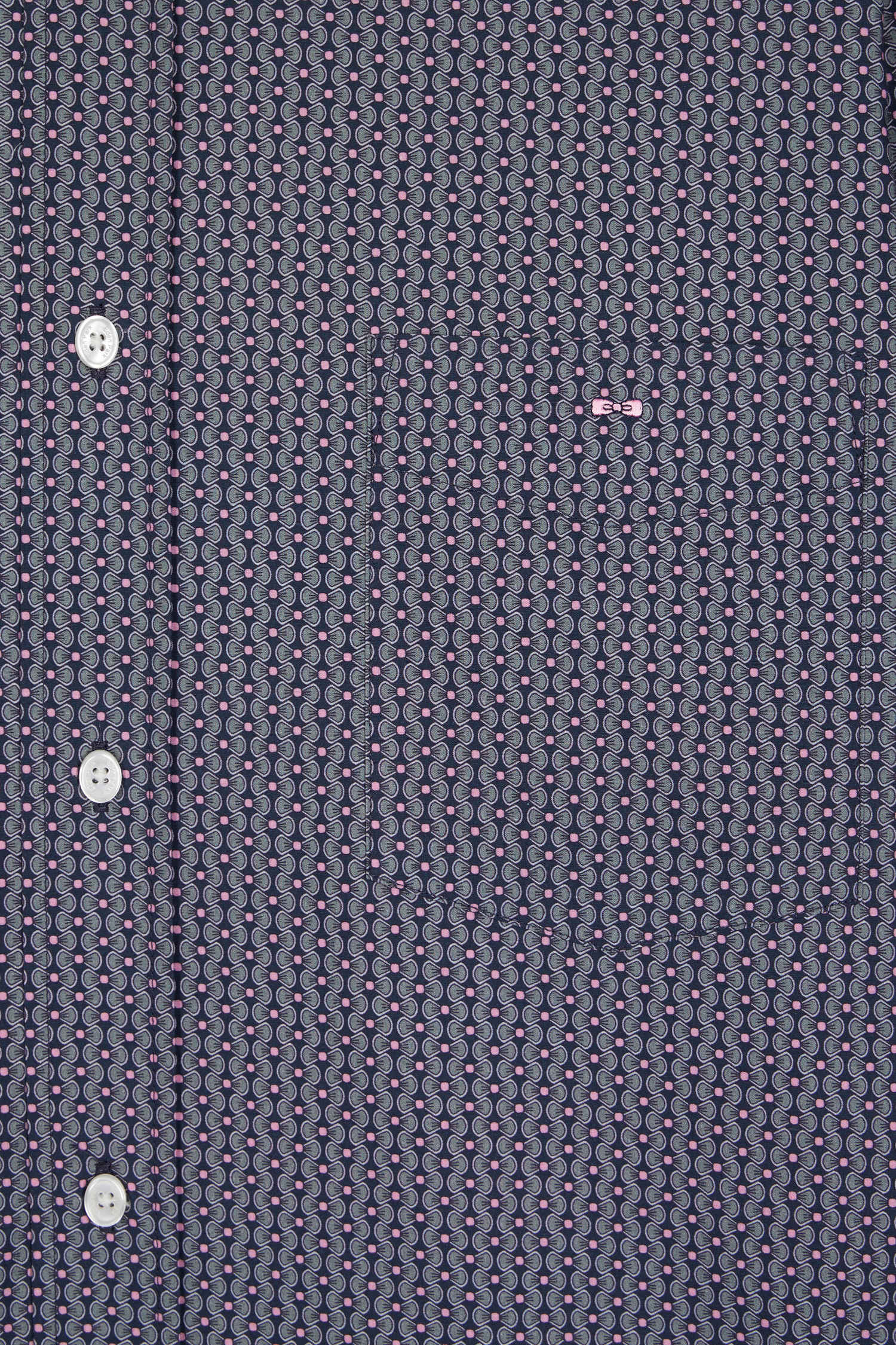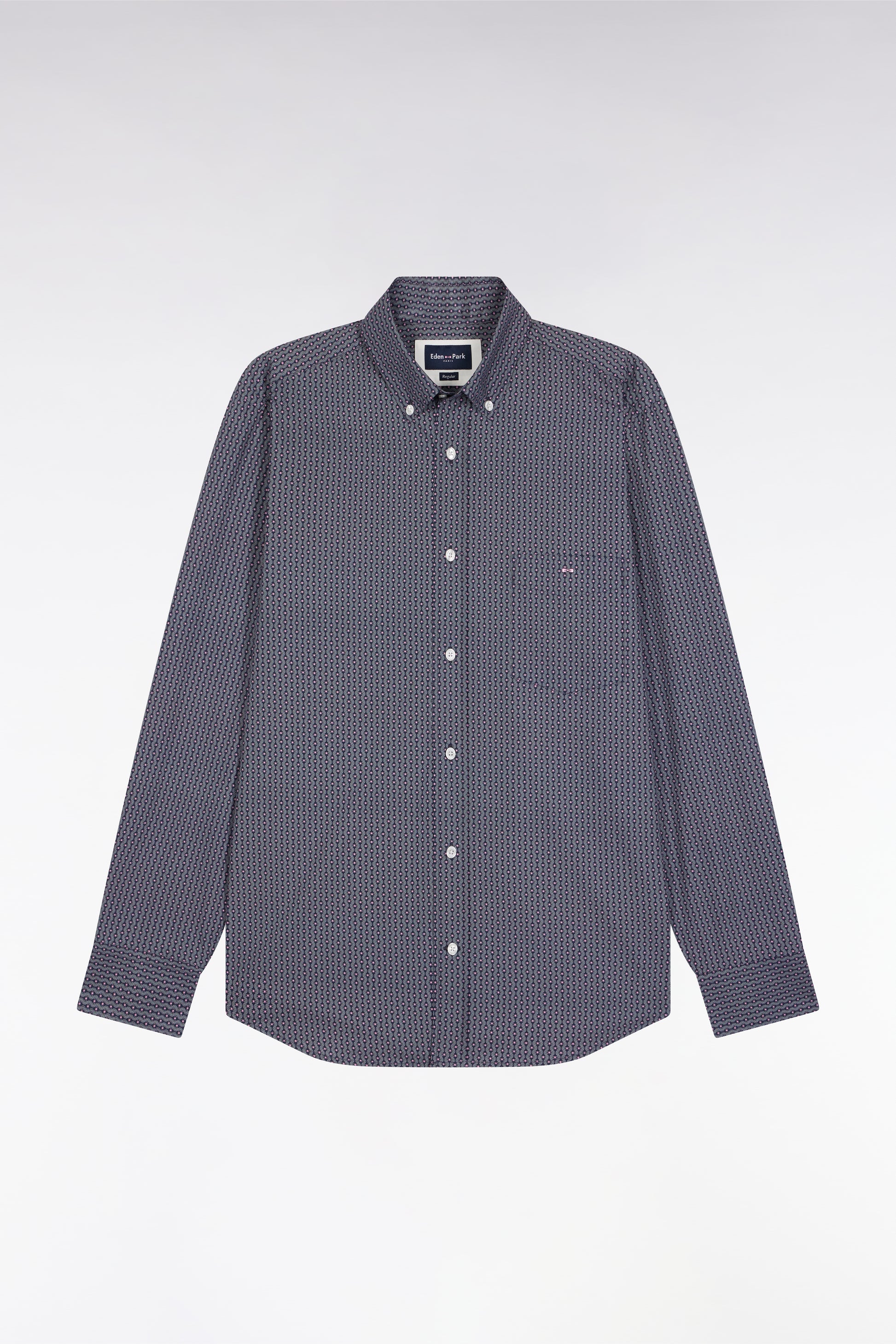 Navy cotton shirt with graphic micro-patterns, straight cut