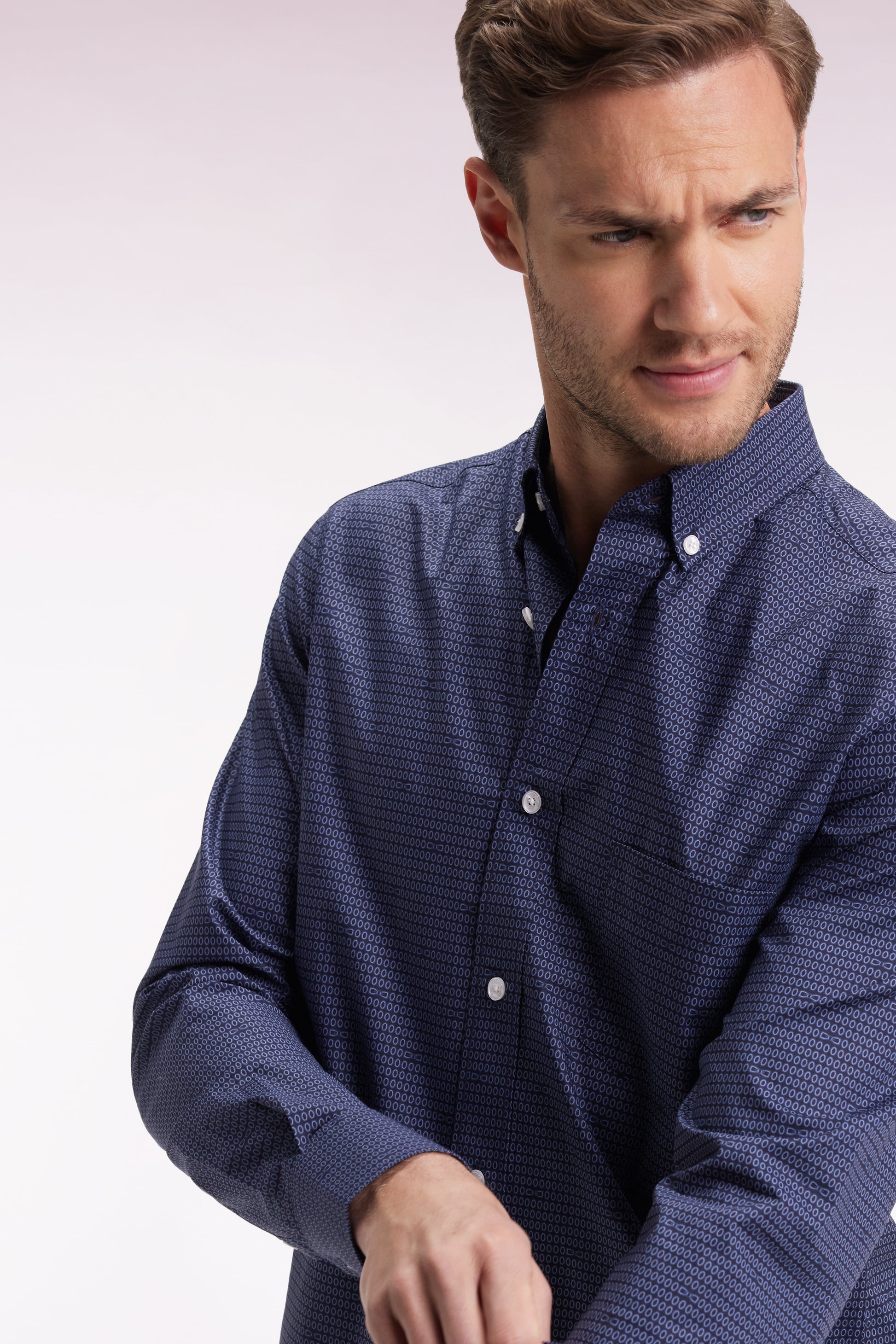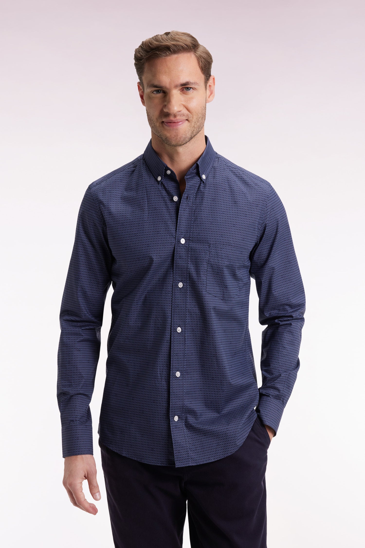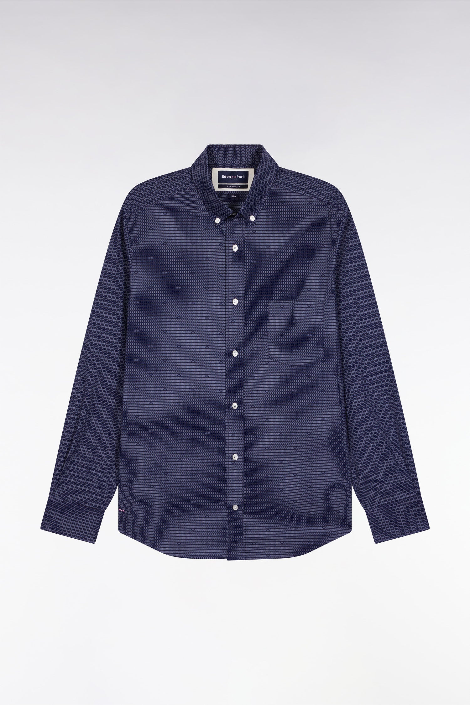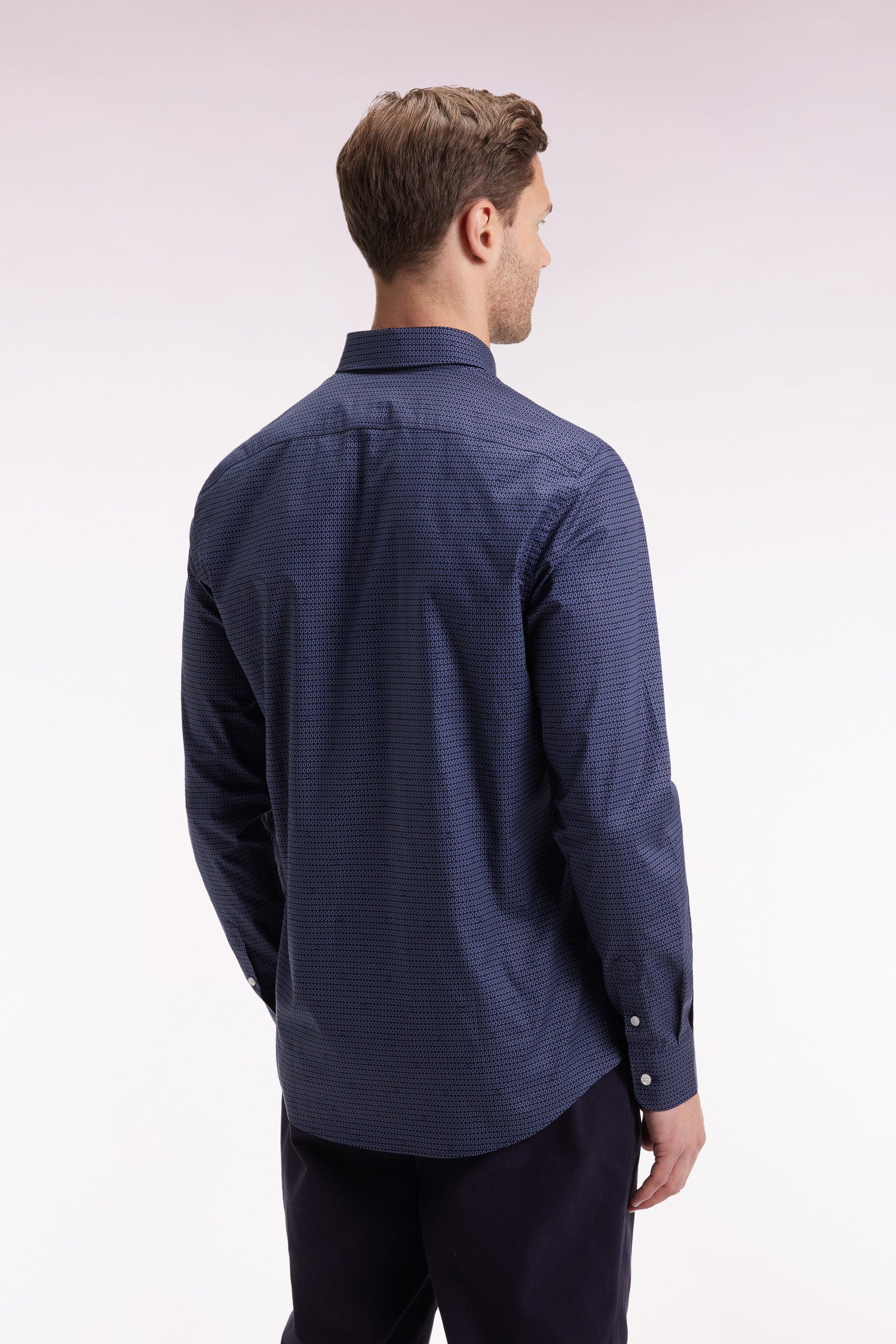 Slim-fit navy Pima cotton shirt with micro-patterns