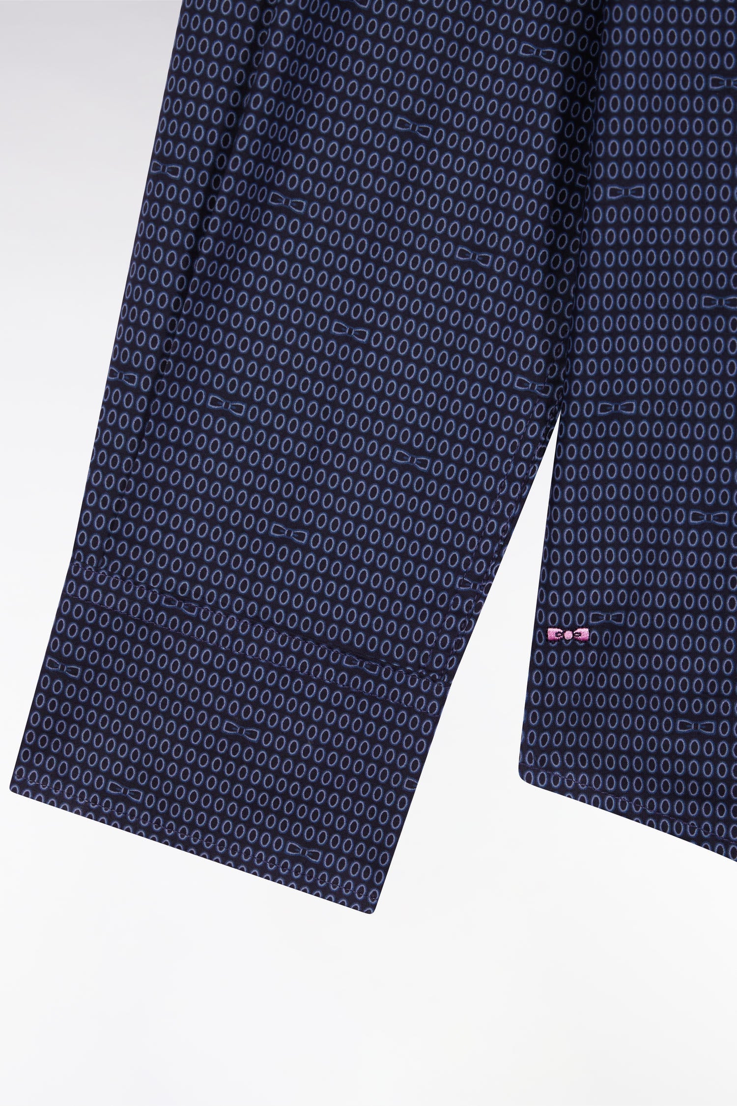 More than just a shirt, this piece is a statement of the Eden Park state of mind. This model in blue Pima cotton features an exclusive micro-print, inspired by the oval shape of the rugby ball, into which are discreetly slipped a few bow ties, emblematic of our French house. Designed with style in mind, this slim-fit shirt creates a slim silhouette while offering comfort and flexibility.