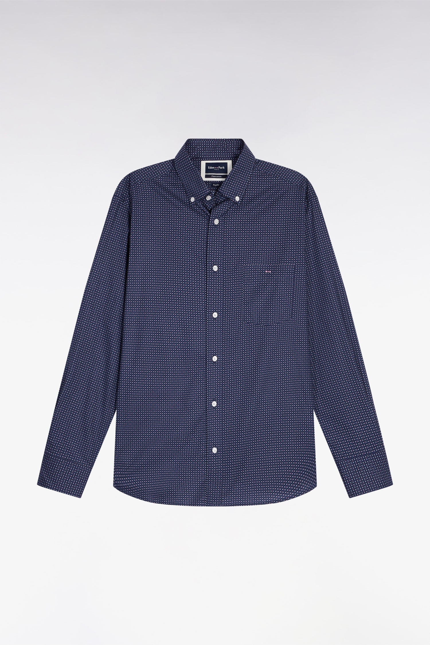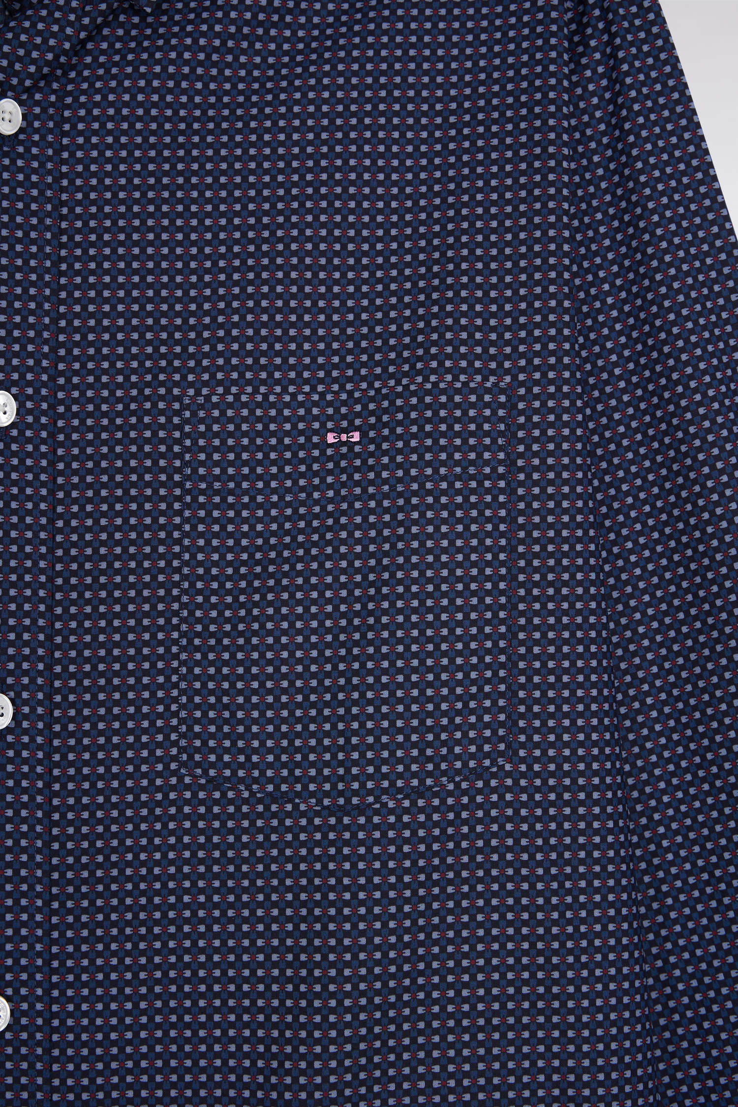 Navy Pima cotton shirt with micro-patterned bow tie, straight cut