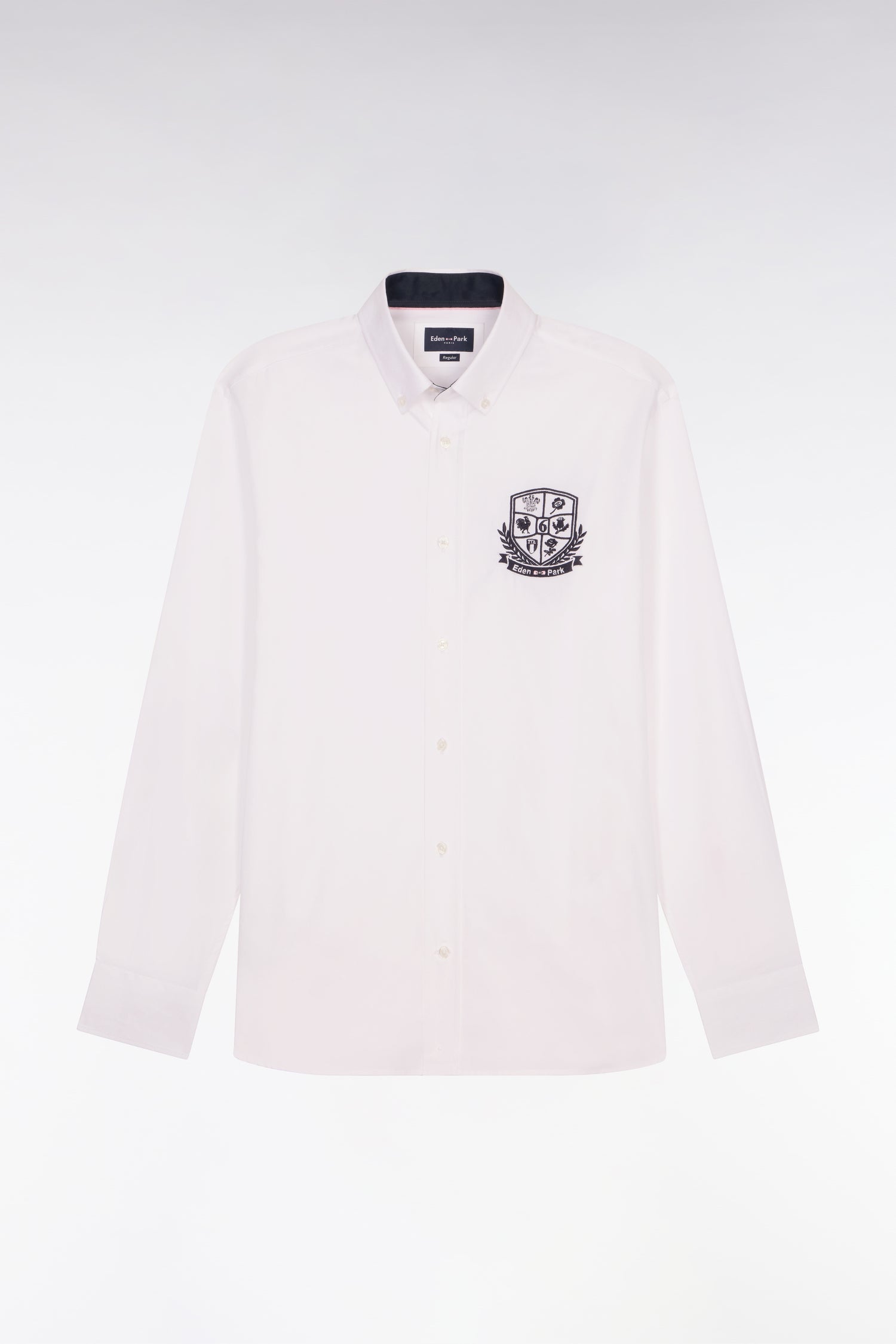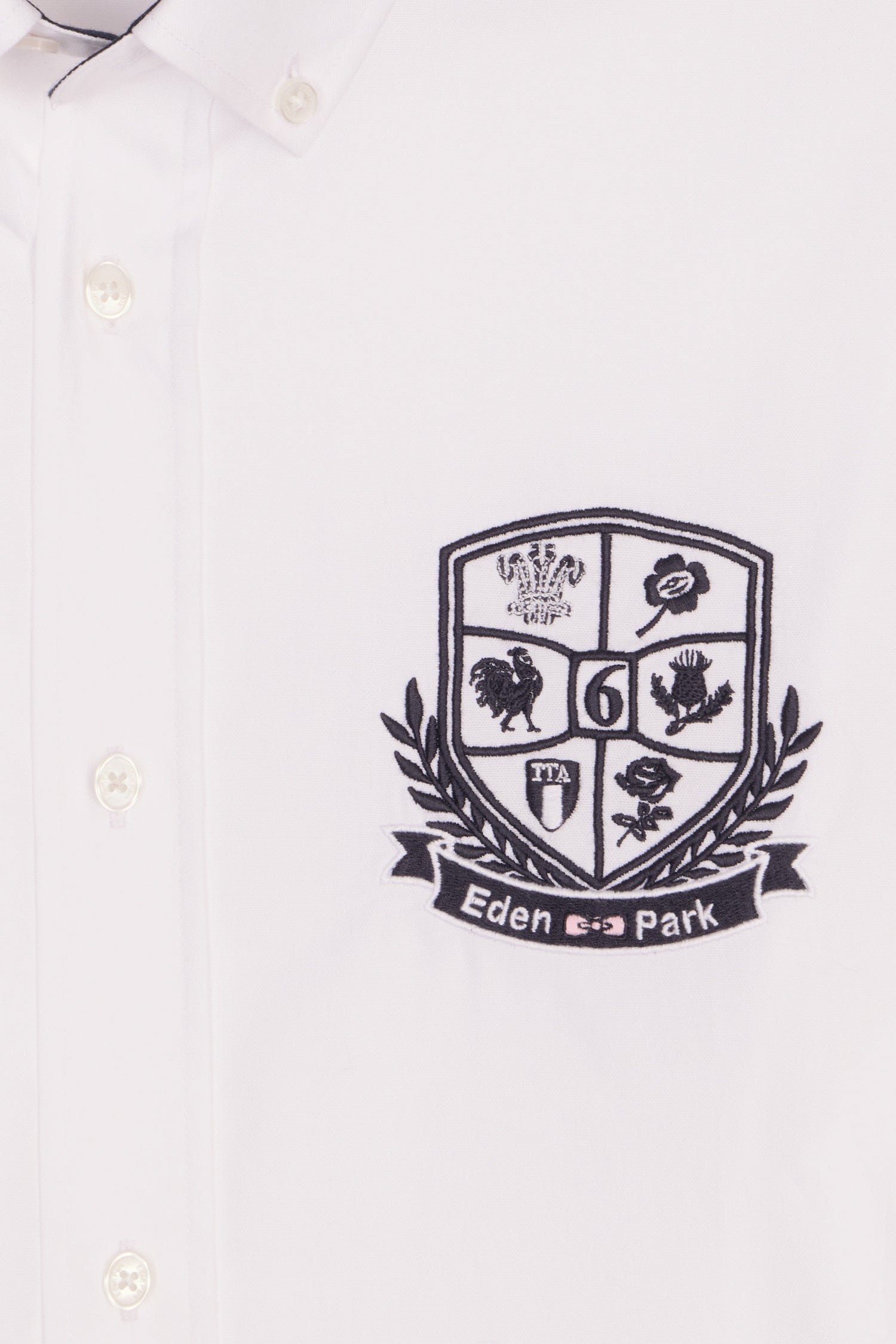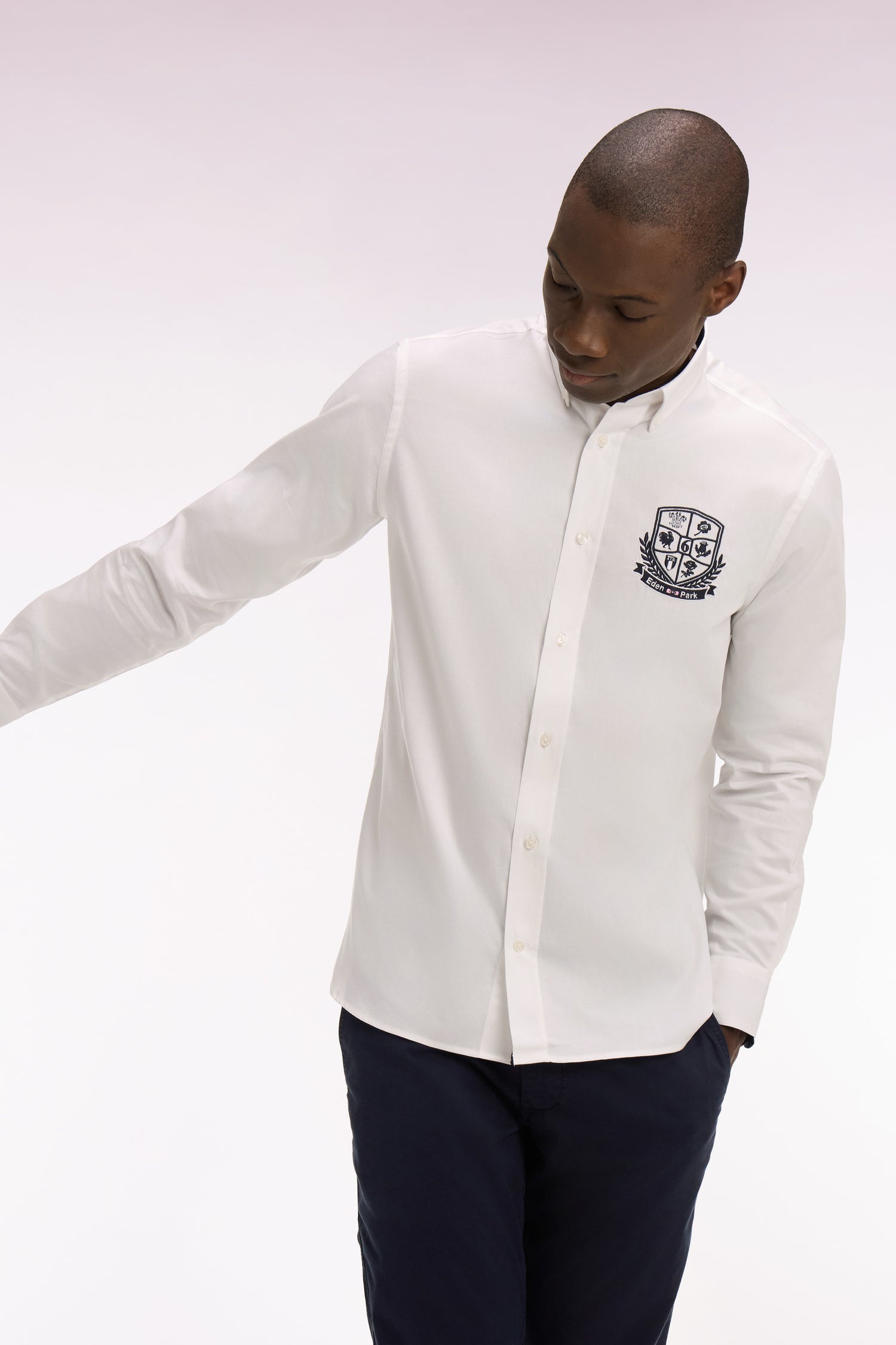 Chemise en coton pinpoint blanc broderie blason 6 Nations