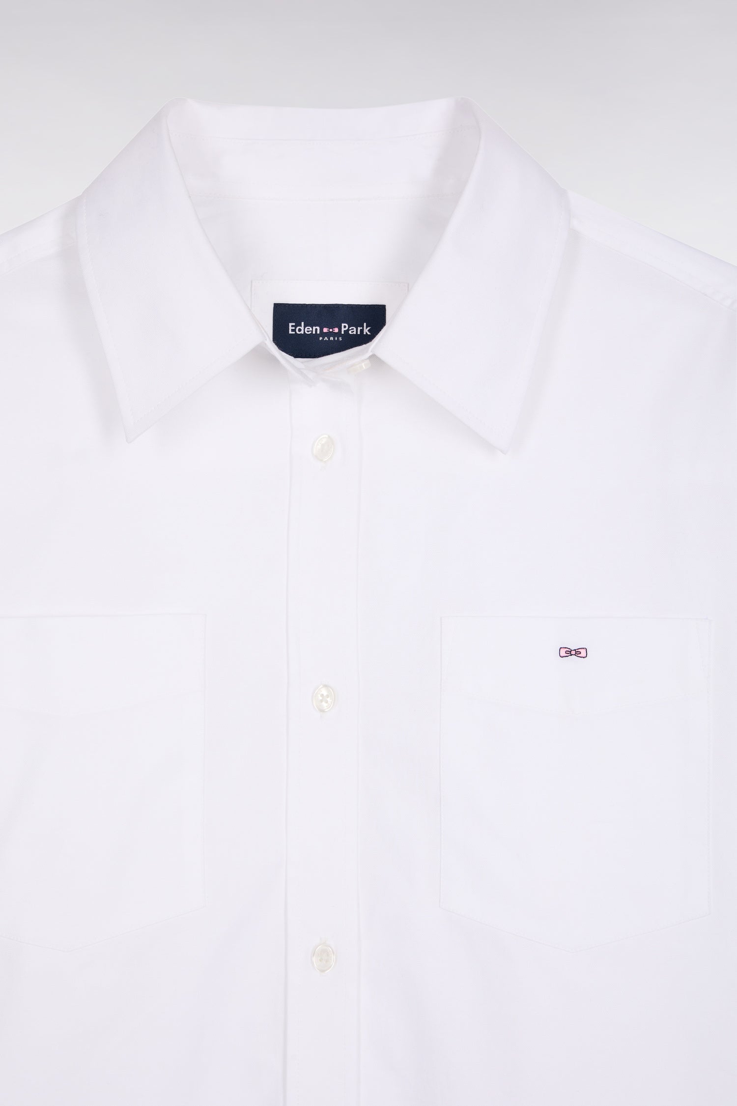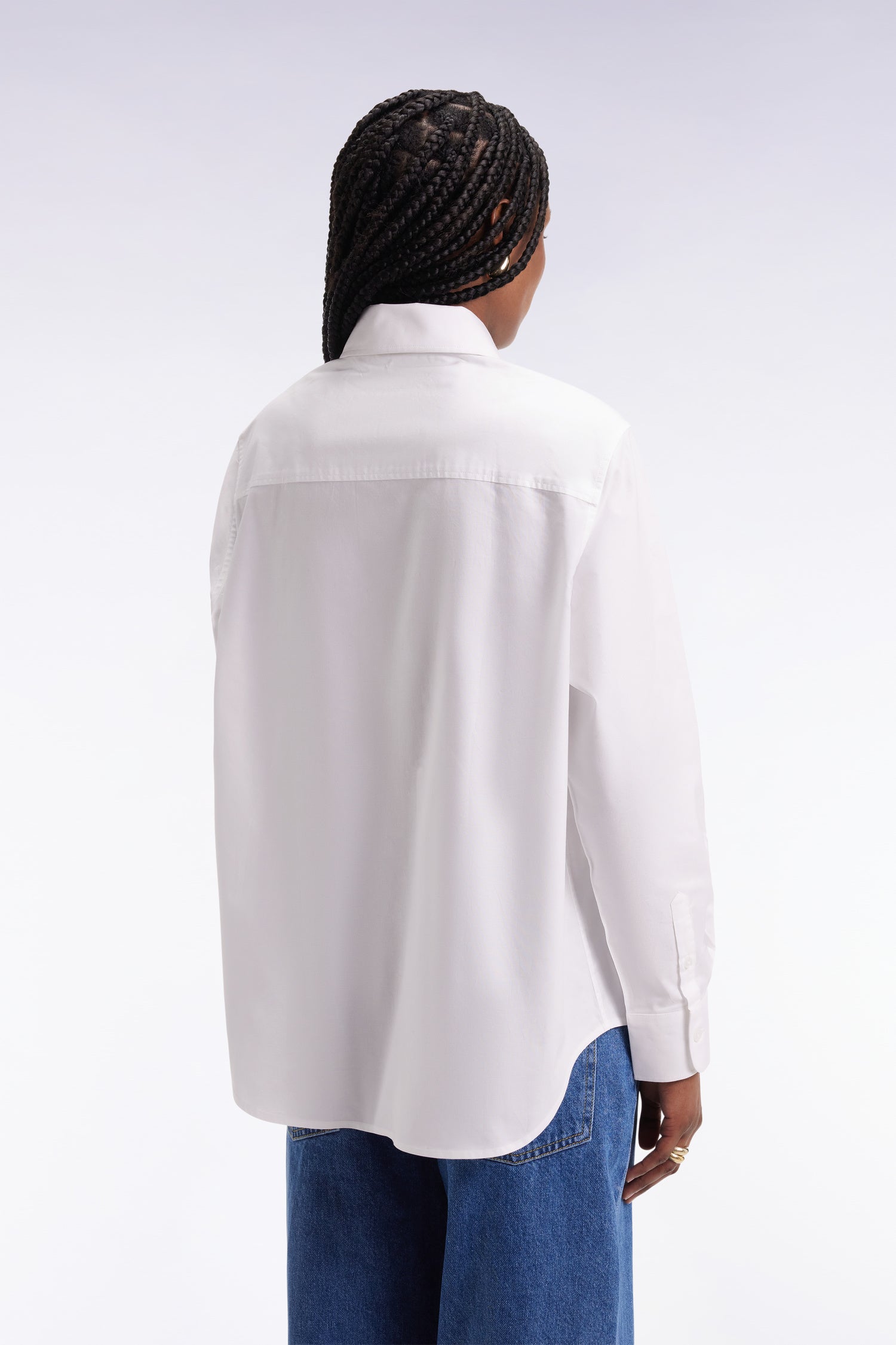 A relaxed interpretation of a classic dress shirt, this white cotton shirt features a relaxed fit and loose lines. Two patch pockets reinforce its casual chic spirit. A timeless, versatile model that can be worn open or tucked into wide-leg pants for a slightly boyish look.