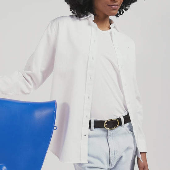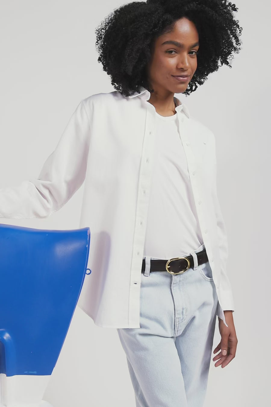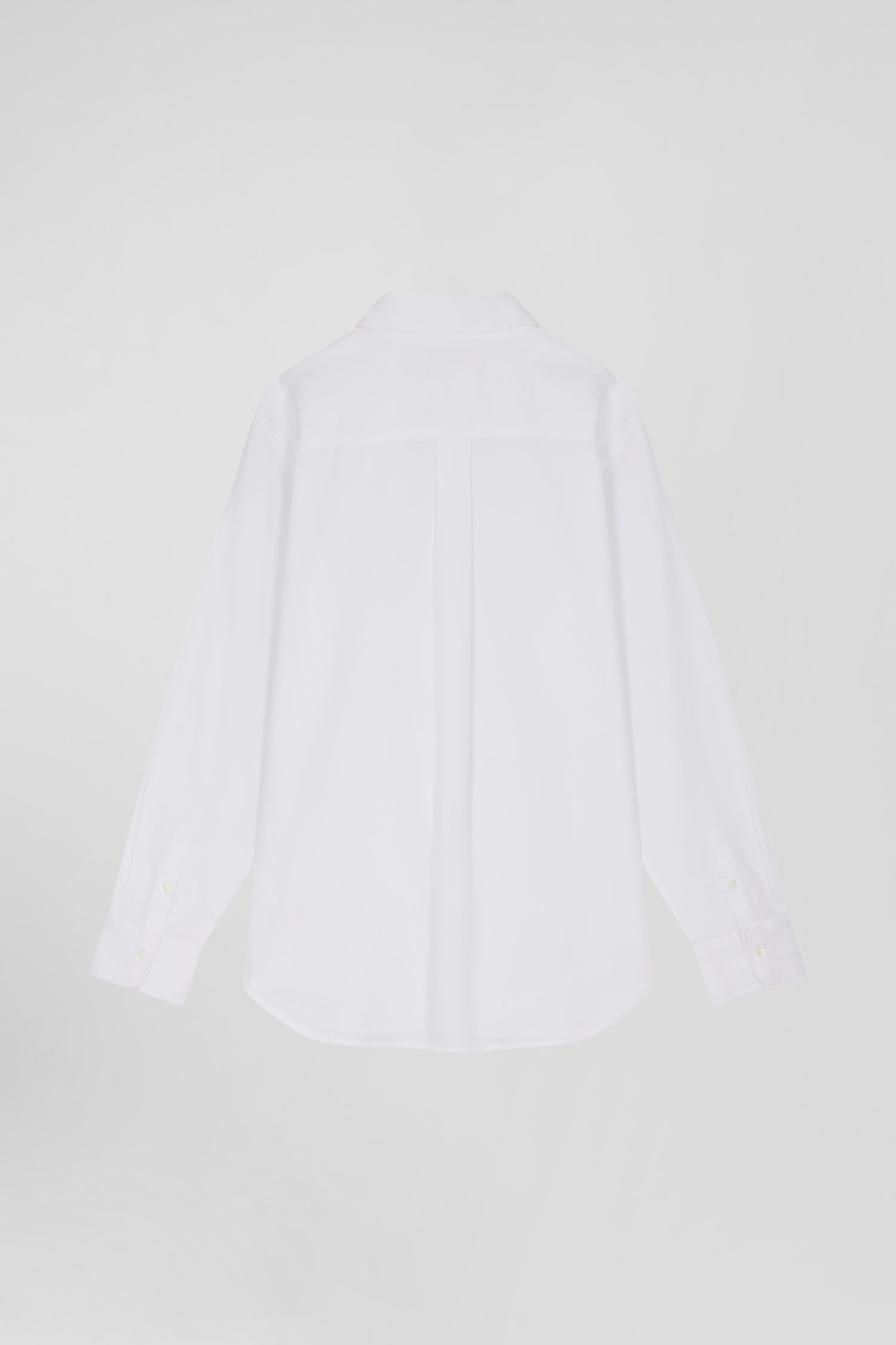 Opt for the timeless elegance of our white poplin shirt, a classic in both men's and women's wardrobes. Made from a cotton poplin selected for the softness and comfort of this natural fiber, its precise cut offers a refined, streamlined silhouette.
