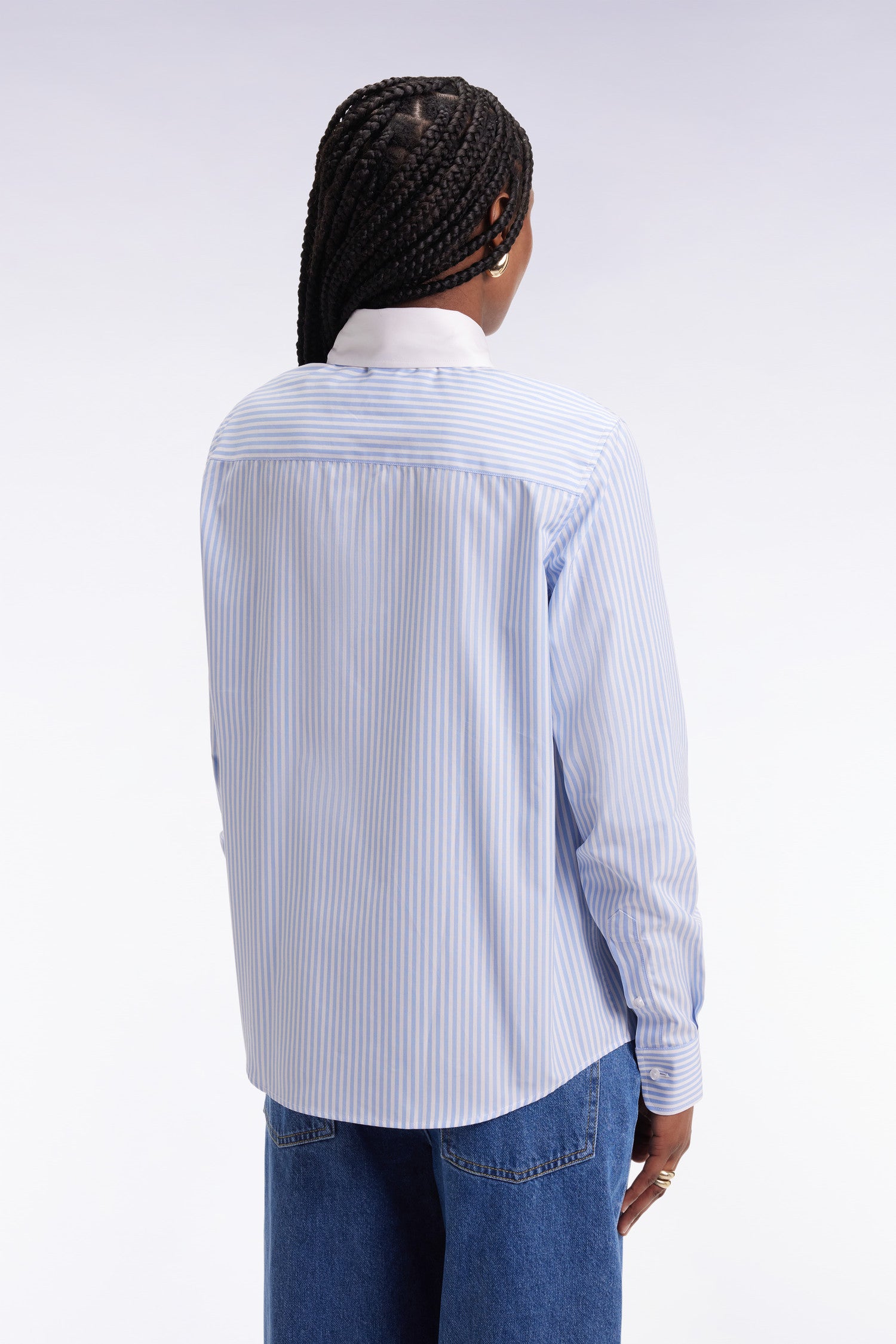 Slim-fit shirt in sky and white striped cotton poplin