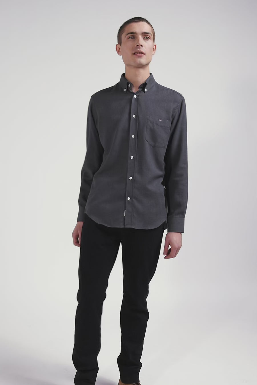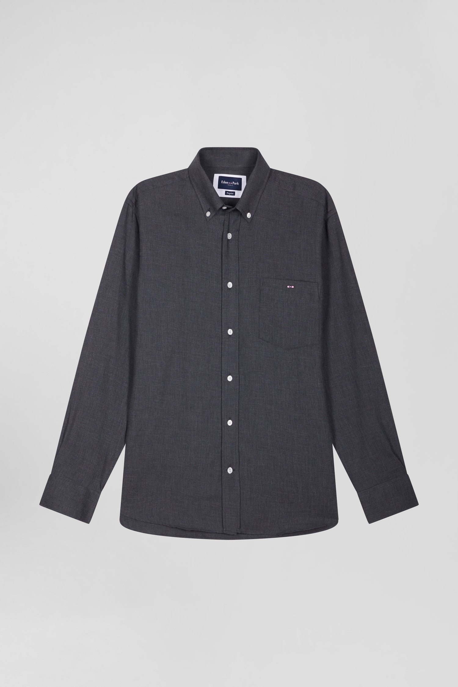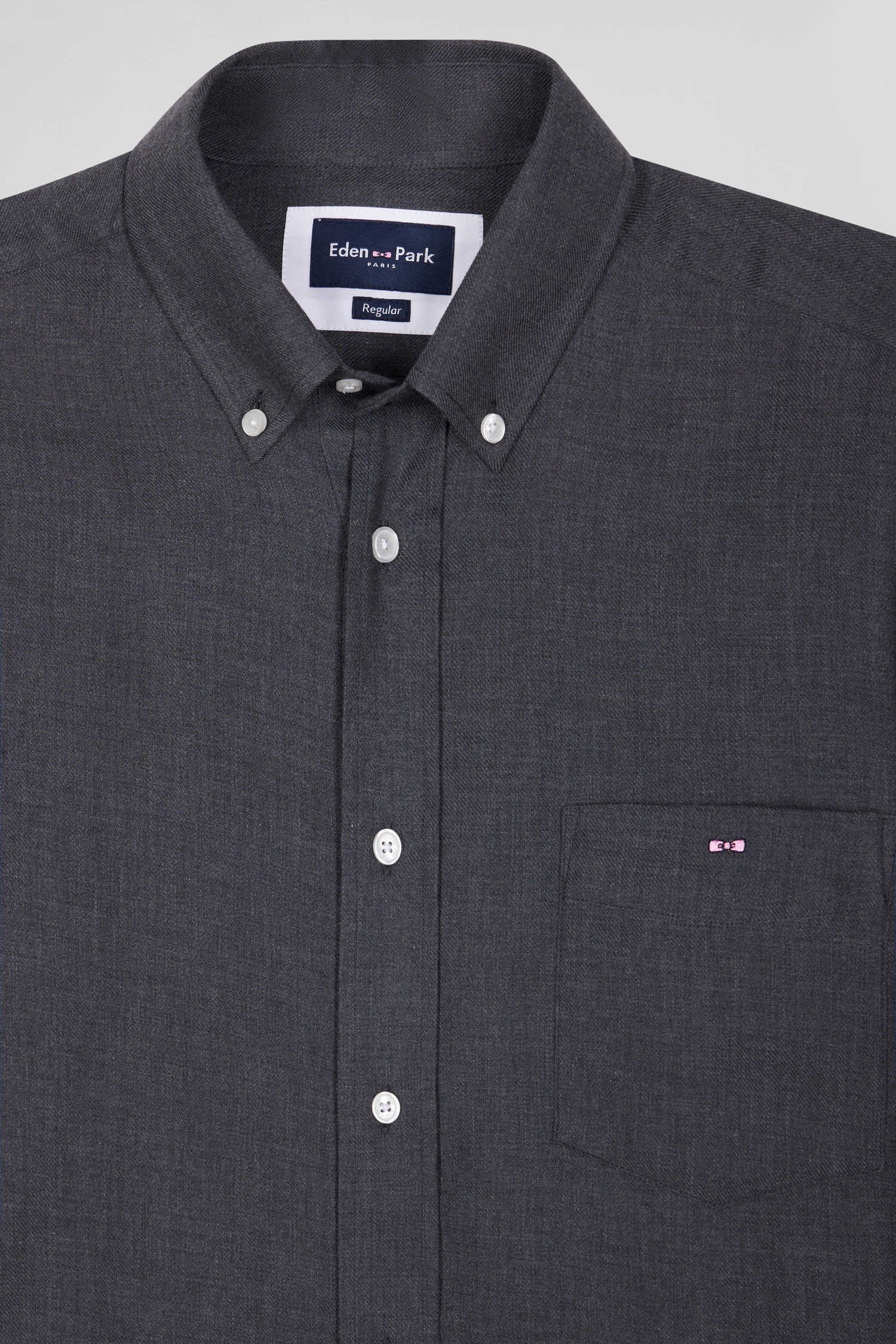 Regular anthracite grey cotton and cashmere twill shirt