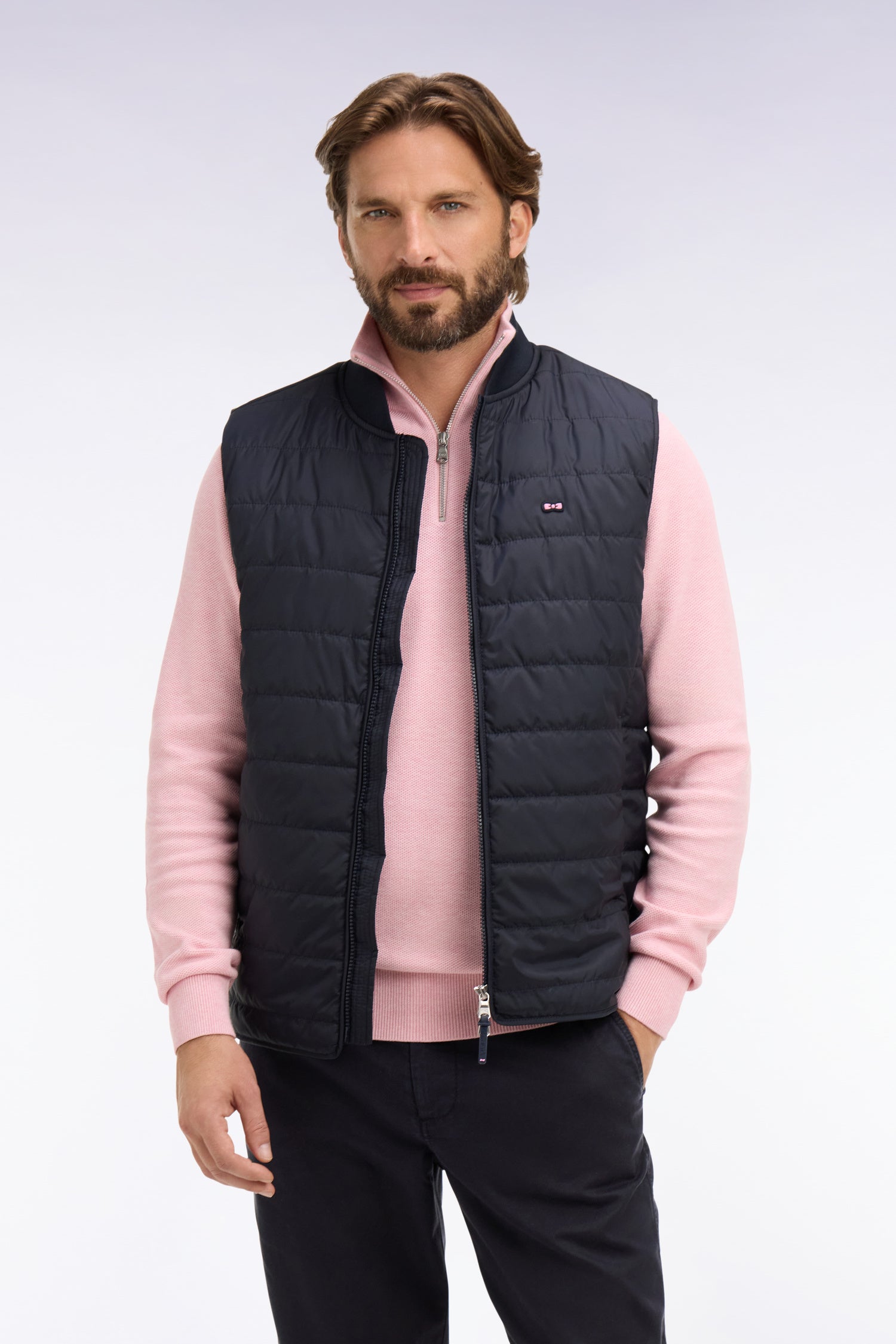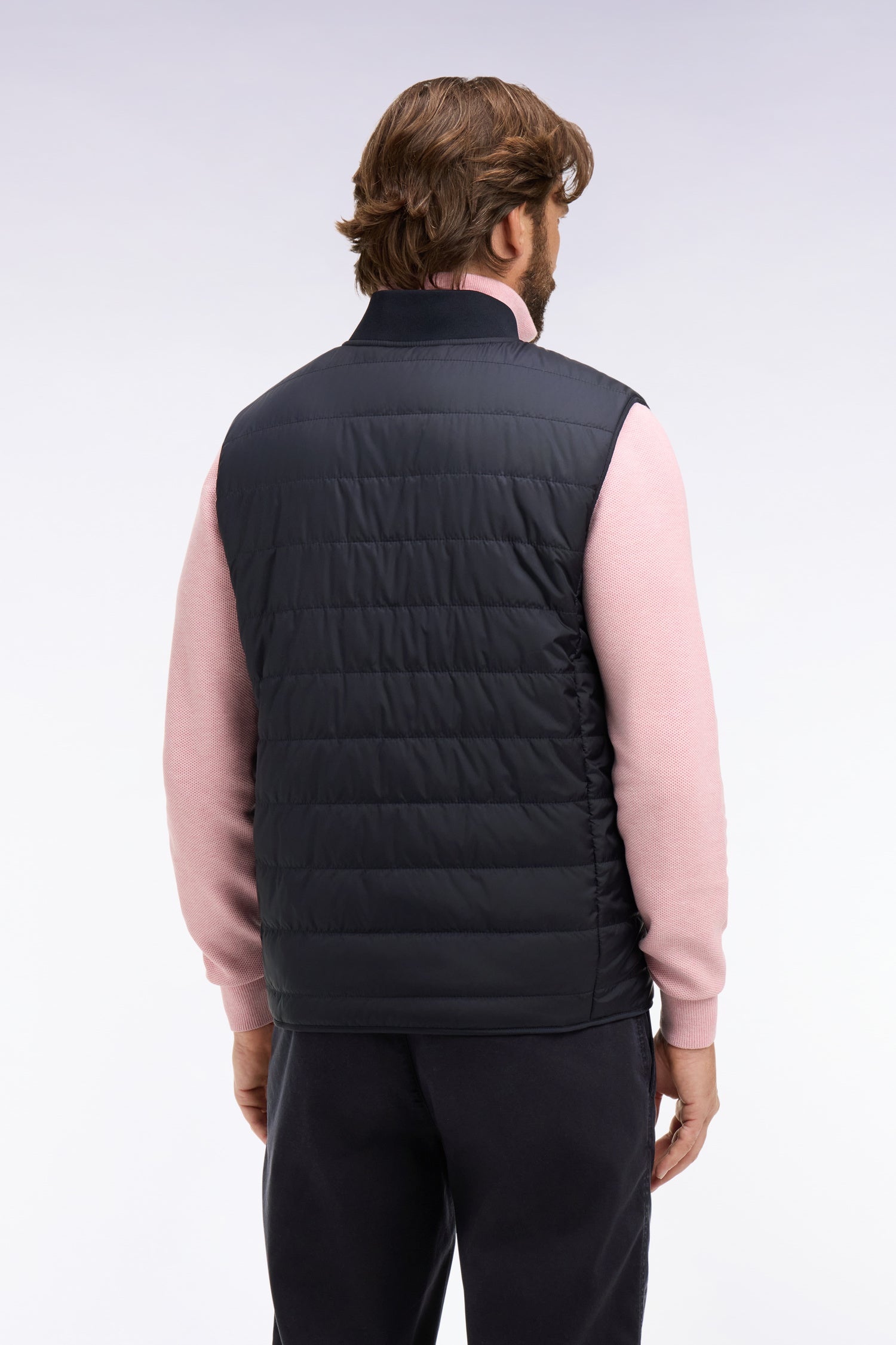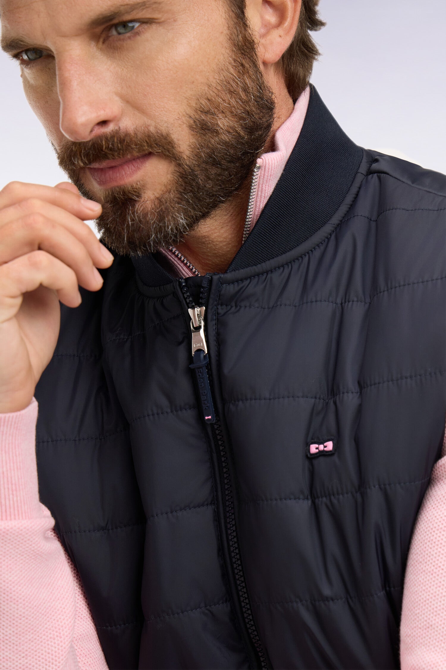 Notre doudoune sans manches allie style et fonctionnalité. Ce modèle intemporel disponible en marine ou en kaki, se distingue par son extérieur matelassé et son col tricoté en bords-côtes apportant structure et confort. Avec ses finitions siglées et sa fermeture zippée cette doudoune sans manches est idéale pour l'entrée de saison et facilite vos jeux de superposition.