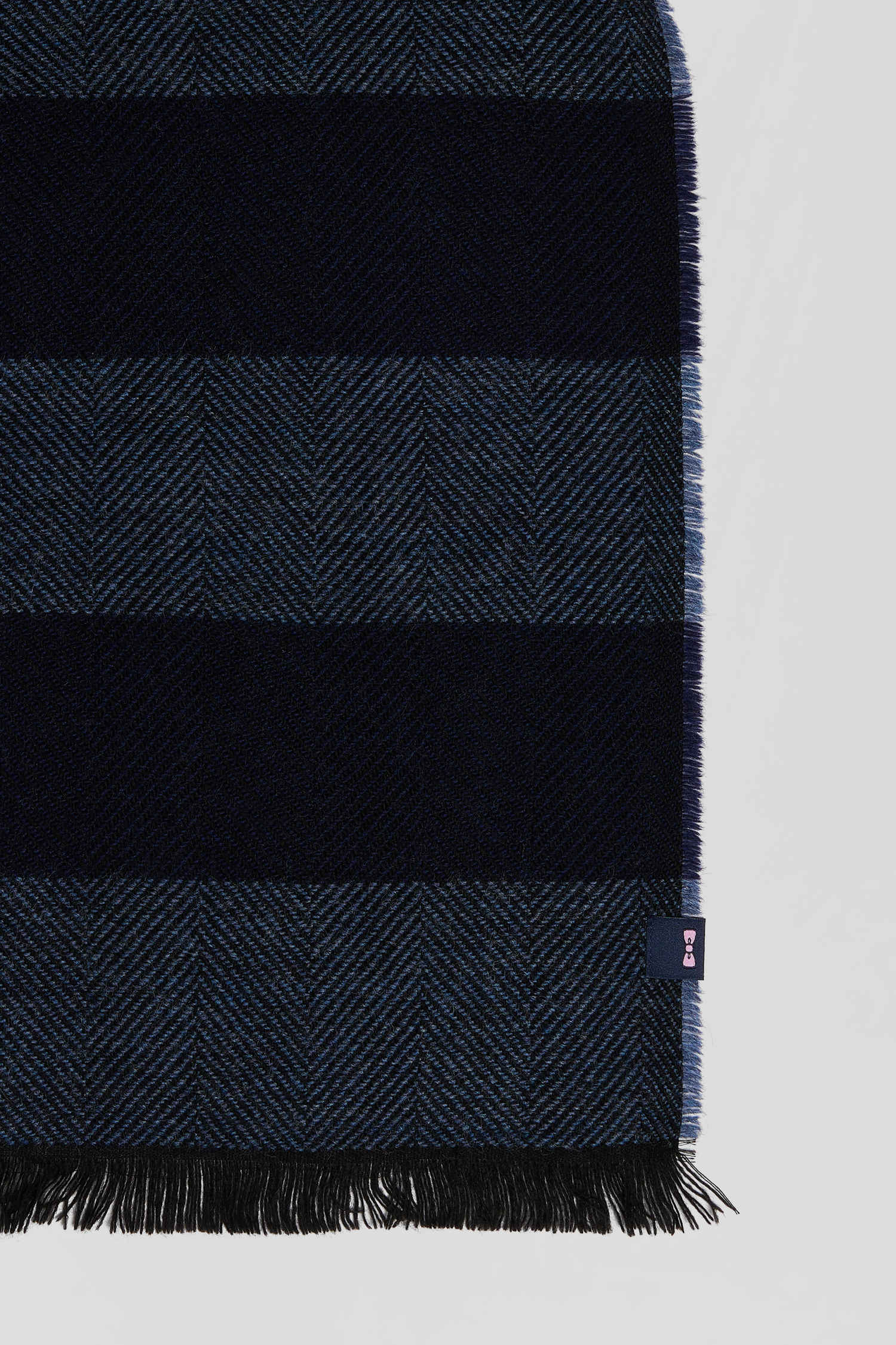 Navy blue striped mixed wool large scarf