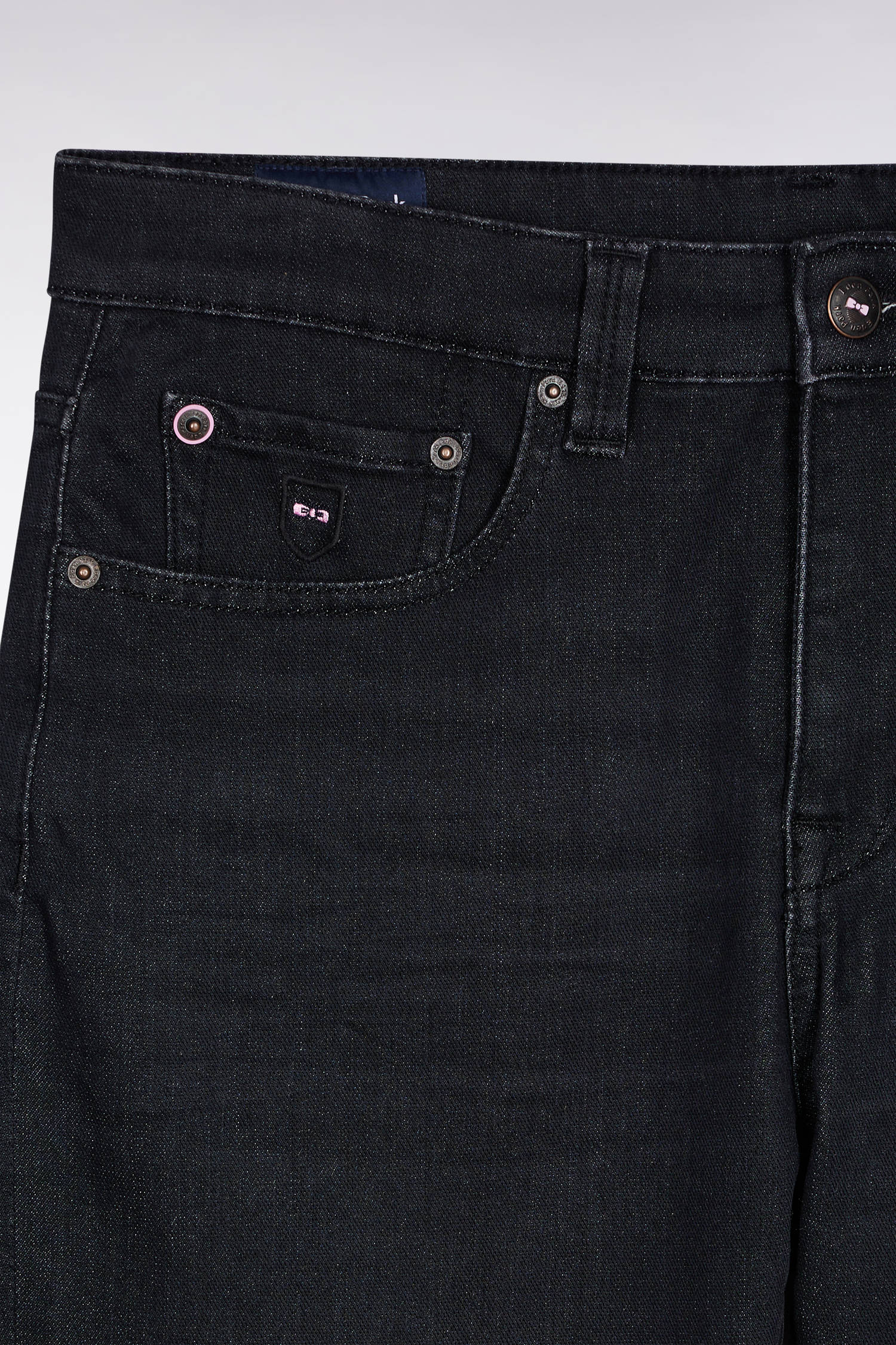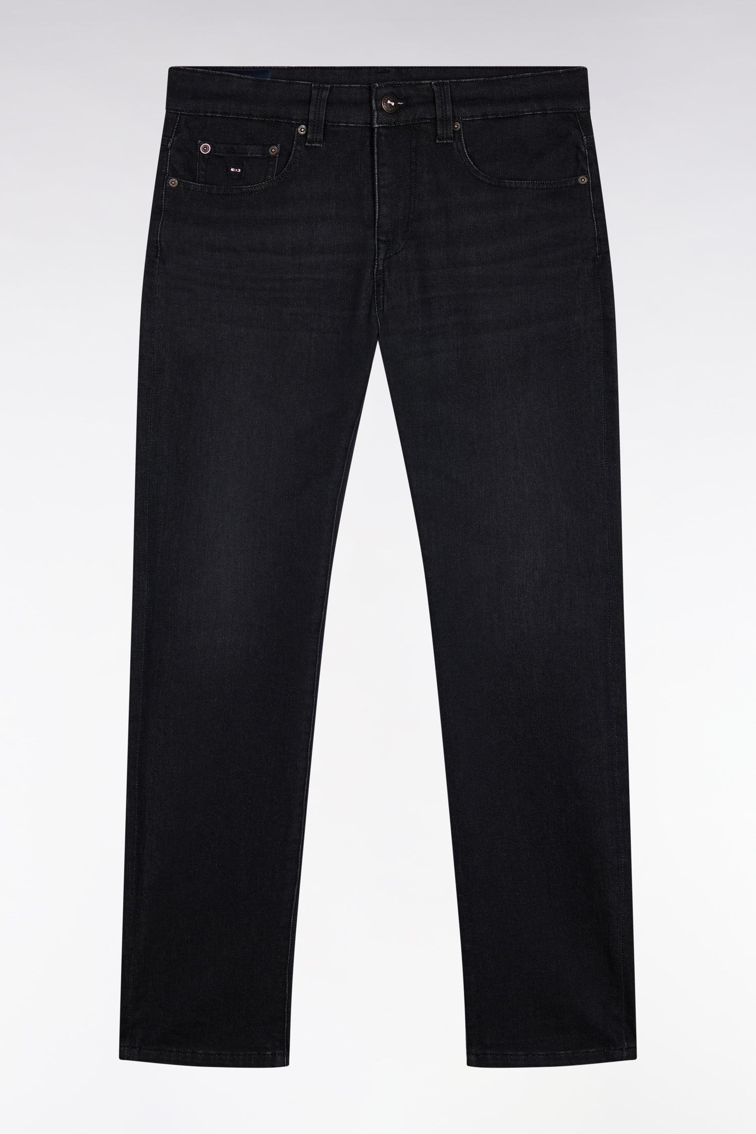 These 5-pocket stretch denim jeans in subtly faded black combine comfort, suppleness and character. Their slim fit emphasizes a well-groomed look. Enhanced by emblematic trims featuring our signature bow tie, these black slim jeans will dress you from morning to night, whatever the season.