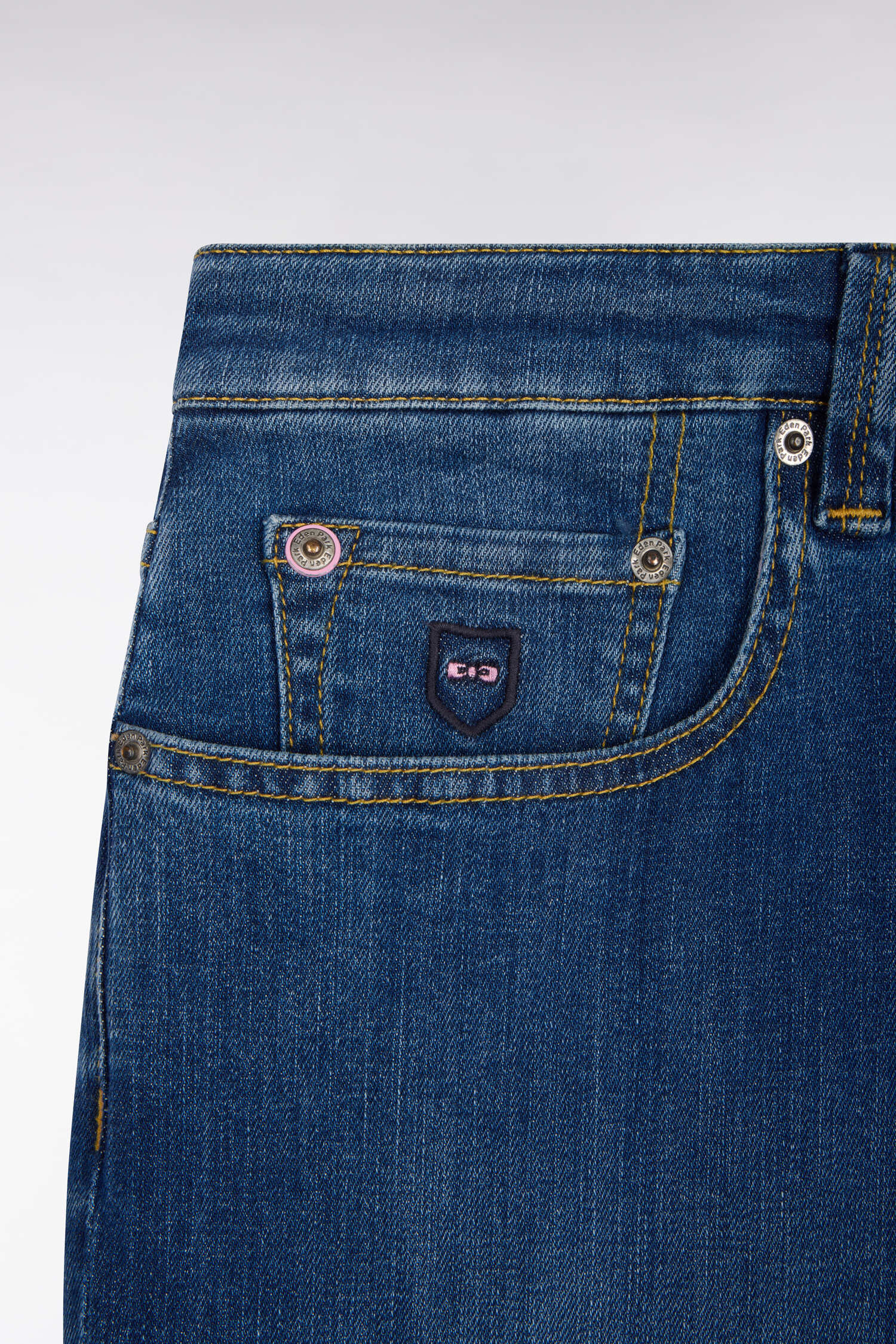 These stretch-cotton jeans have two western front pockets and a front coin pocket, 2 patch back pockets, button fastening and a signature Eden Park leather tag on the back