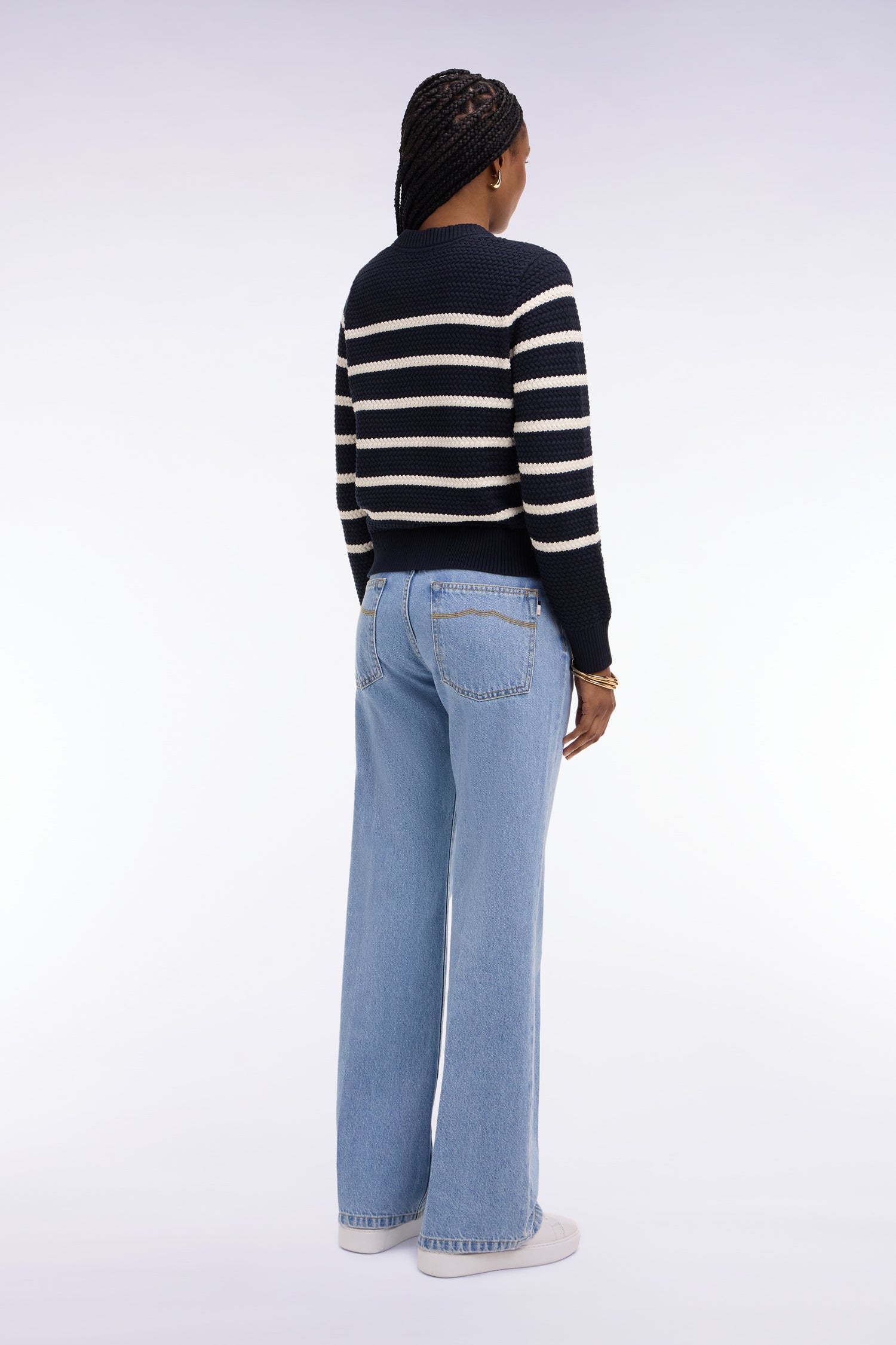 Notre jean flare en denim brut promet une silhouette élancée grâce à sa ligne parfaitement évasée qui allonge naturellement la jambe. Sa coupe seyante souligne les courbes sans les contraindre, créant une allure chic et décontractée. Idéal pour les beaux jours, bien qu'il vous accompagne été comme hiver, il se porte avec des sandales pour inaugurer une soirée d’été avec style et allure.