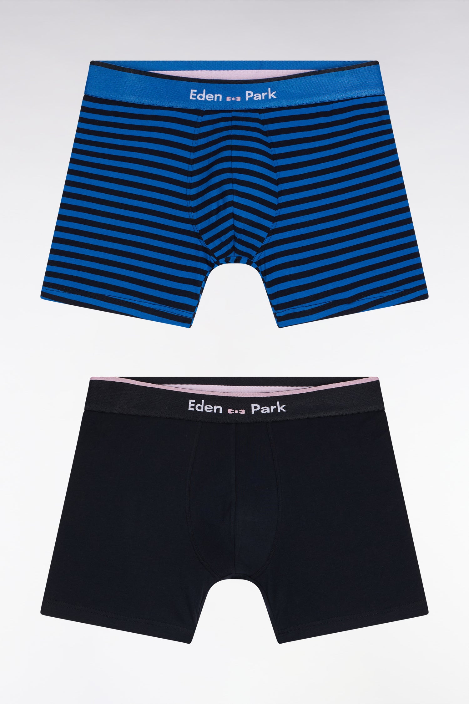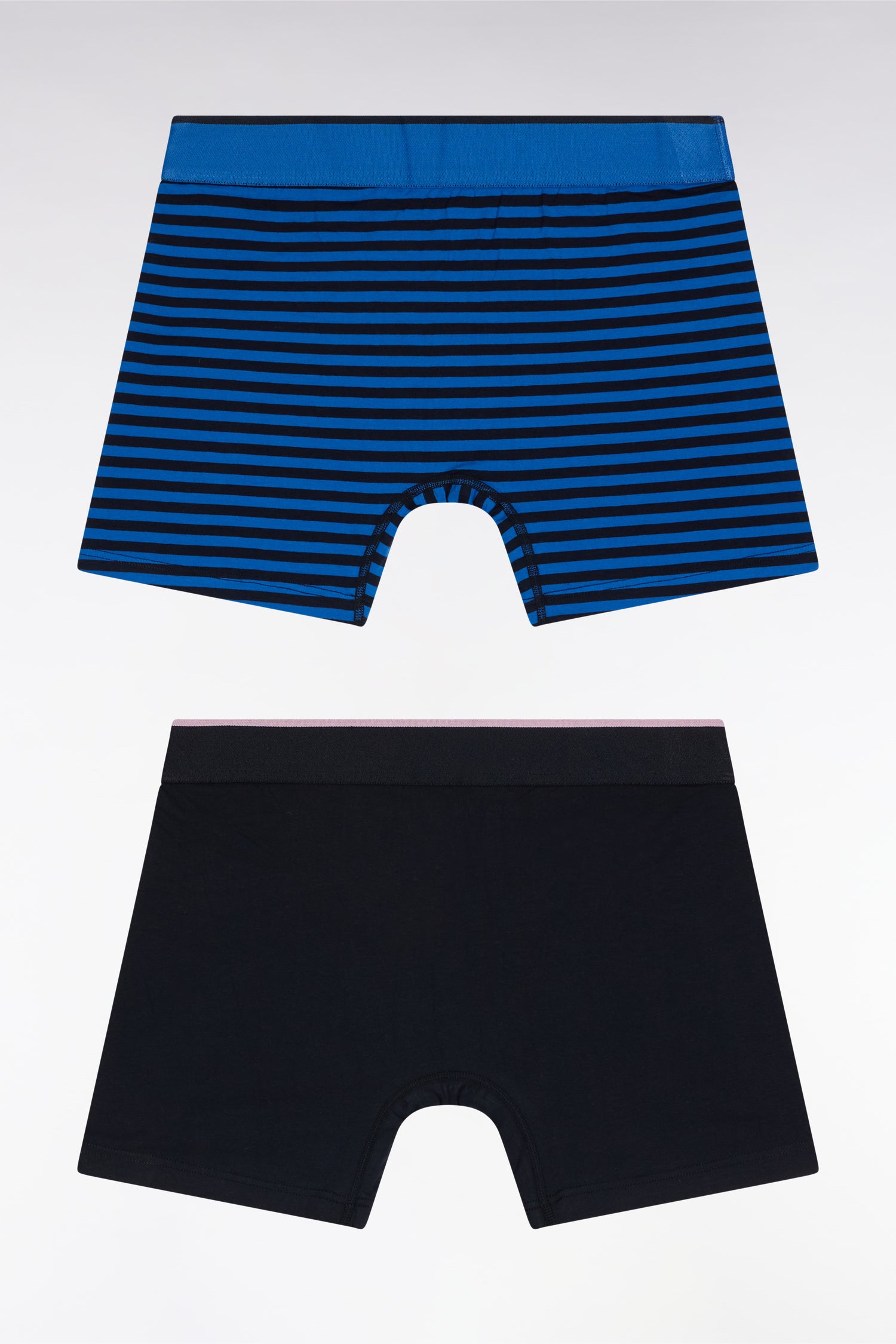 This set of men's underwear includes two stretch cotton jersey boxer shorts: a plain navy model and a second featuring fine stripes in a choice of iconic colors.
