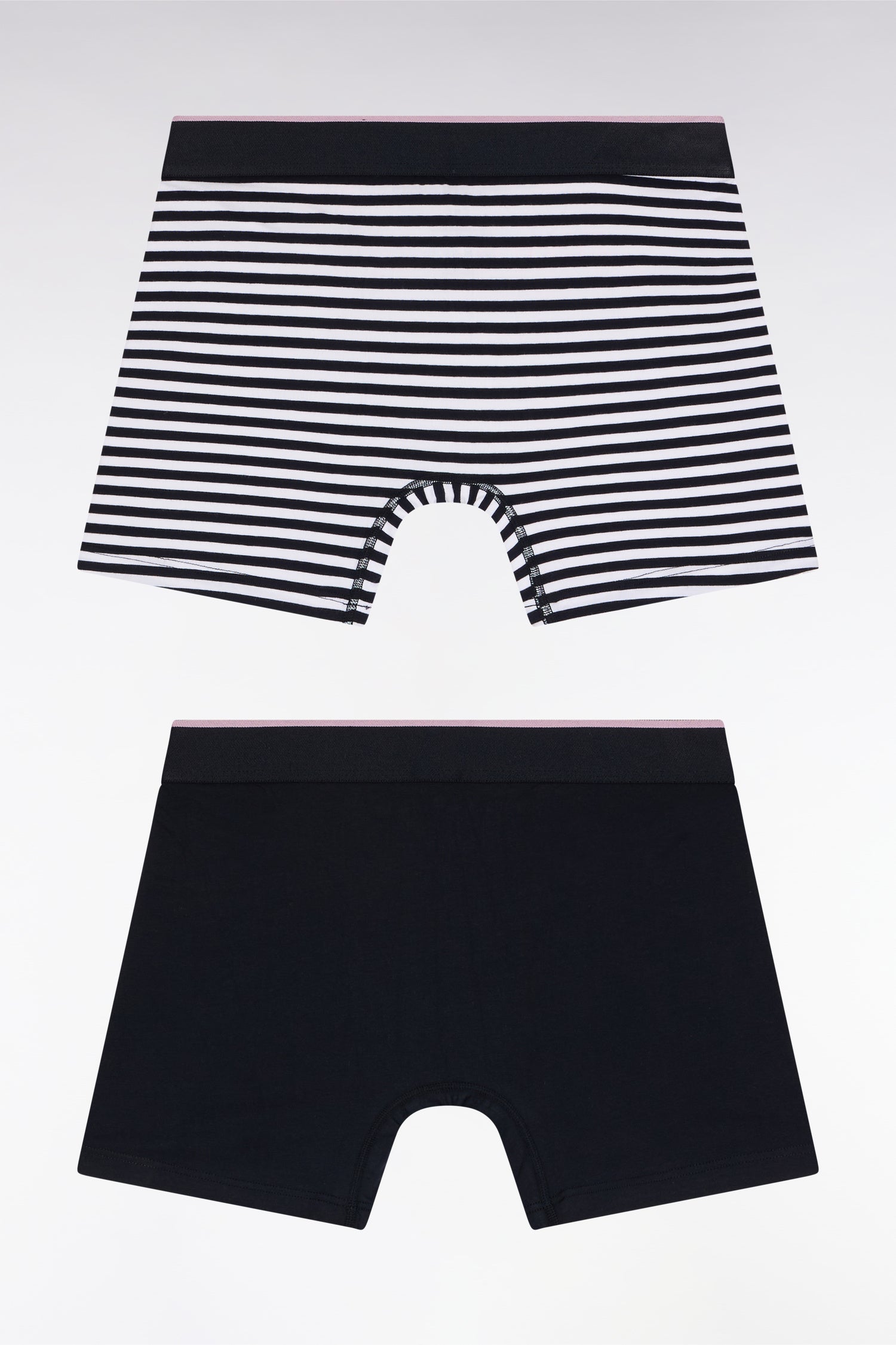 This set of men's underwear includes two stretch cotton jersey boxer shorts: a plain navy model and a second featuring fine stripes in a choice of iconic colors.