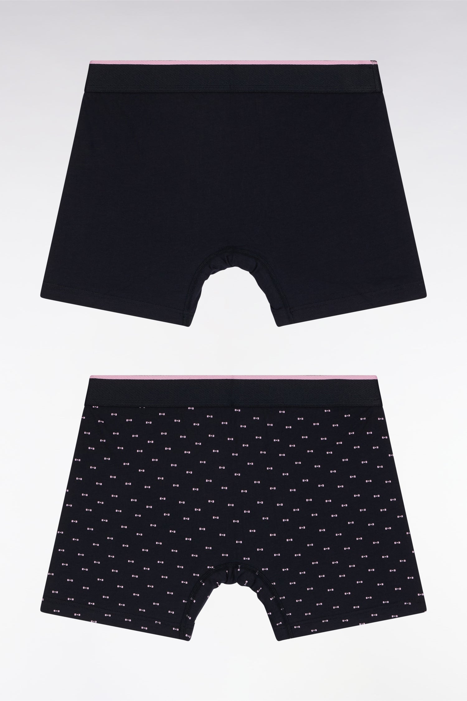 Set of two boxer shorts in plain stretch cotton jersey with navy micropatterns