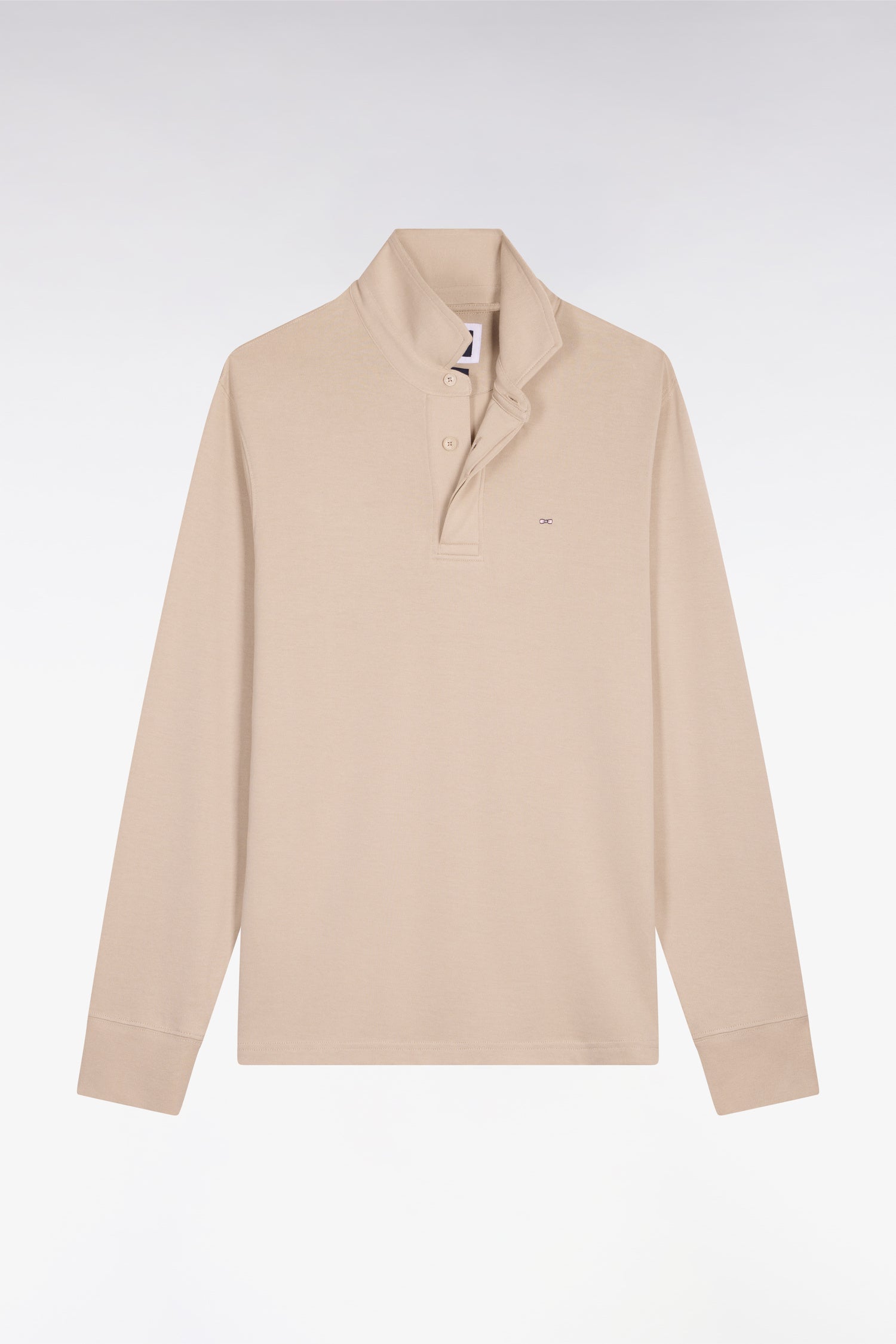 Ce maillot à manches longues en jersey de coton Pima incarne l’élégance décontractée chère à la Maison tout en soutenant une mode plus écoresponsable, le coton Pima étant une fibre naturelle à la culture plus économe en eau. Doux et résistant, il offre un confort durable saison après saison. Doté d’une coupe regular droite et d’un col maillot, il se distingue par ses poignets en bords-côtes et ses boutons ovales inspirés du ballon de rugby, signature emblématique Eden Park. Orné de notre nœud papillon brodé sur la poitrine, ce modèle iconique se décline dans une large palette de coloris pour accompagner chaque journée avec style et confort.