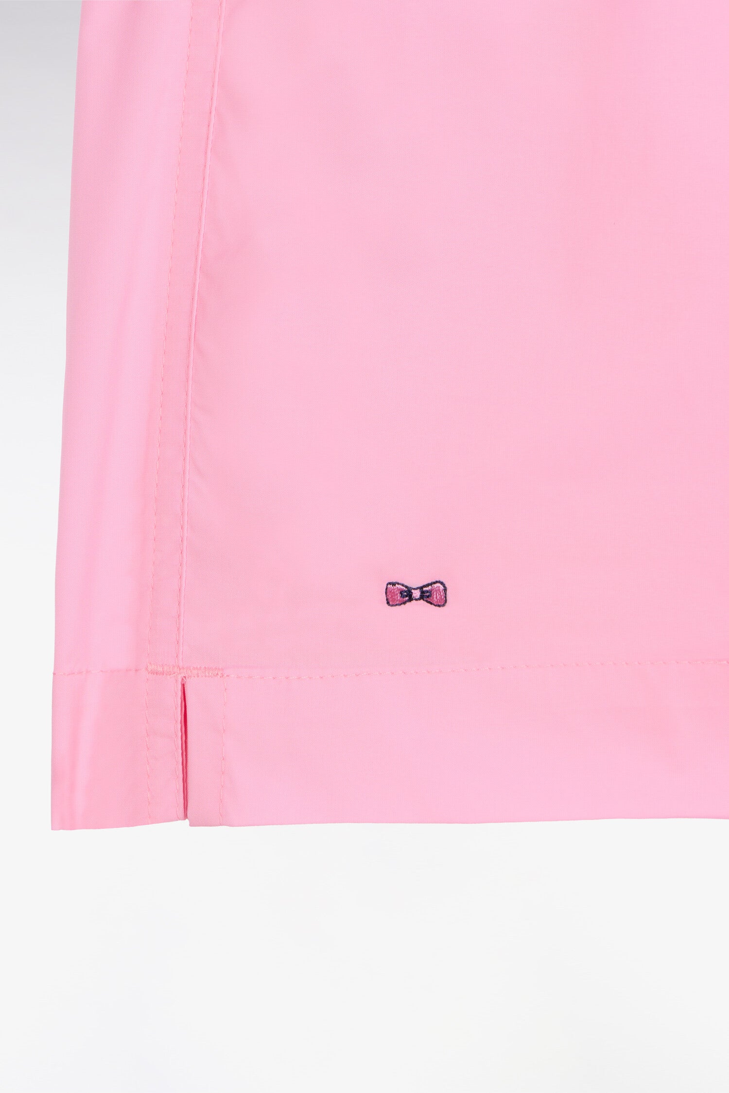 Our men's swimsuit has the sporty-chic look typical of the collections Eden Park in a seaside wardrobe built around a wide palette of colors. Its elasticated belt with contrasting interior and its tubular cords provide comfort, support and graphic detail. The discreet bow tie embroidery on the bottom of the leg completes these swim shorts with a rear flap pocket.