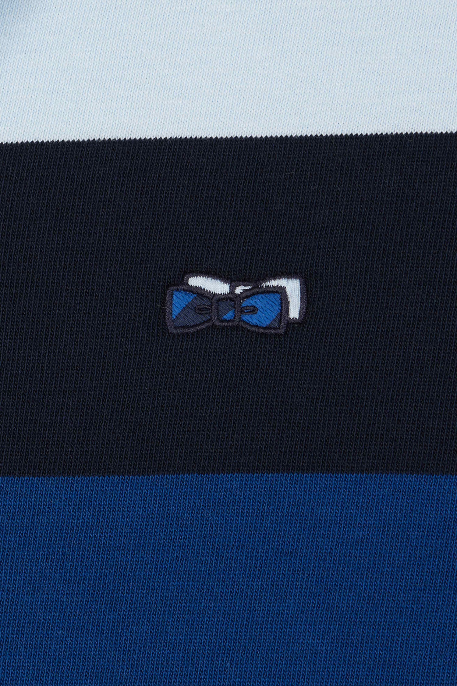 Regular navy long-sleeved cotton T-shirt with striped bow tie embroidery
