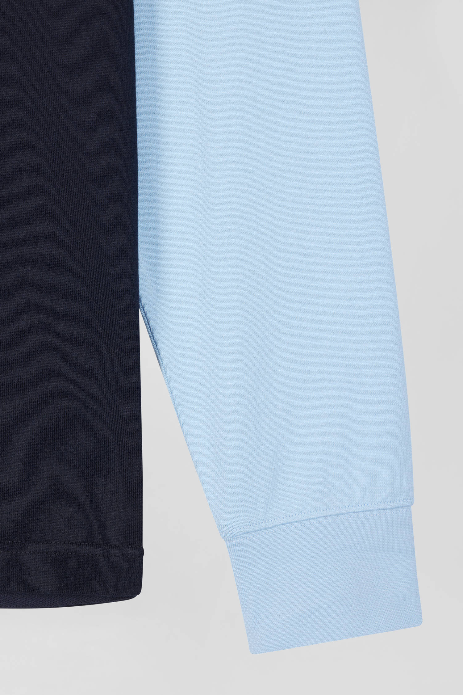 Make a style statement with this Eden Park long-sleeved men's jersey. Sporting elegance is reinvented in a colorblock tribute to the iconic colors of our House. The bold embroidery of the number 10 on the back, highlighted by hooped tie fabric, celebrates rugby heritage with panache. The classic collar, contrasting button placket and iconic embroidered bow tie give this characterful piece a distinguished finish.