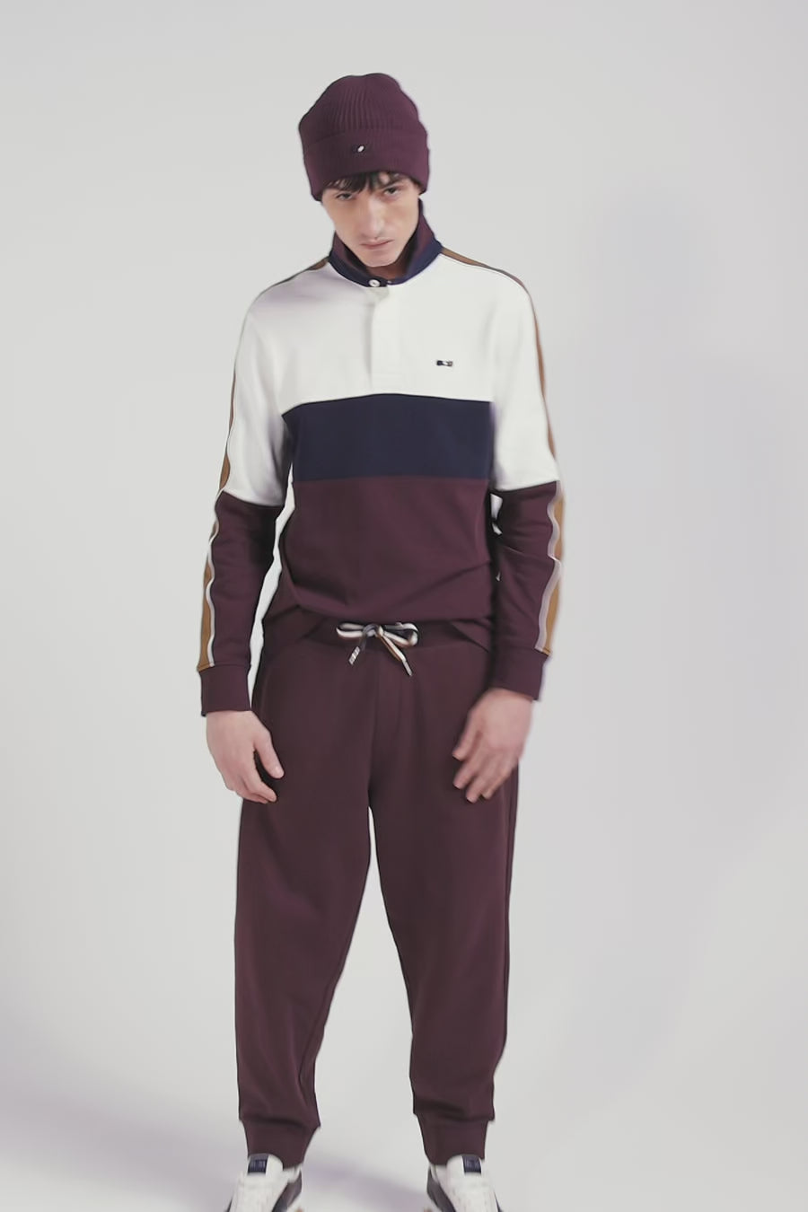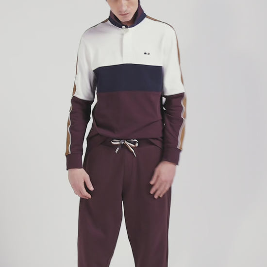 Regular burgundy long-sleeved cotton rugby shirt with back embroidery and piping