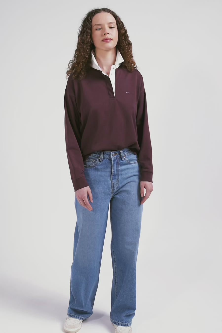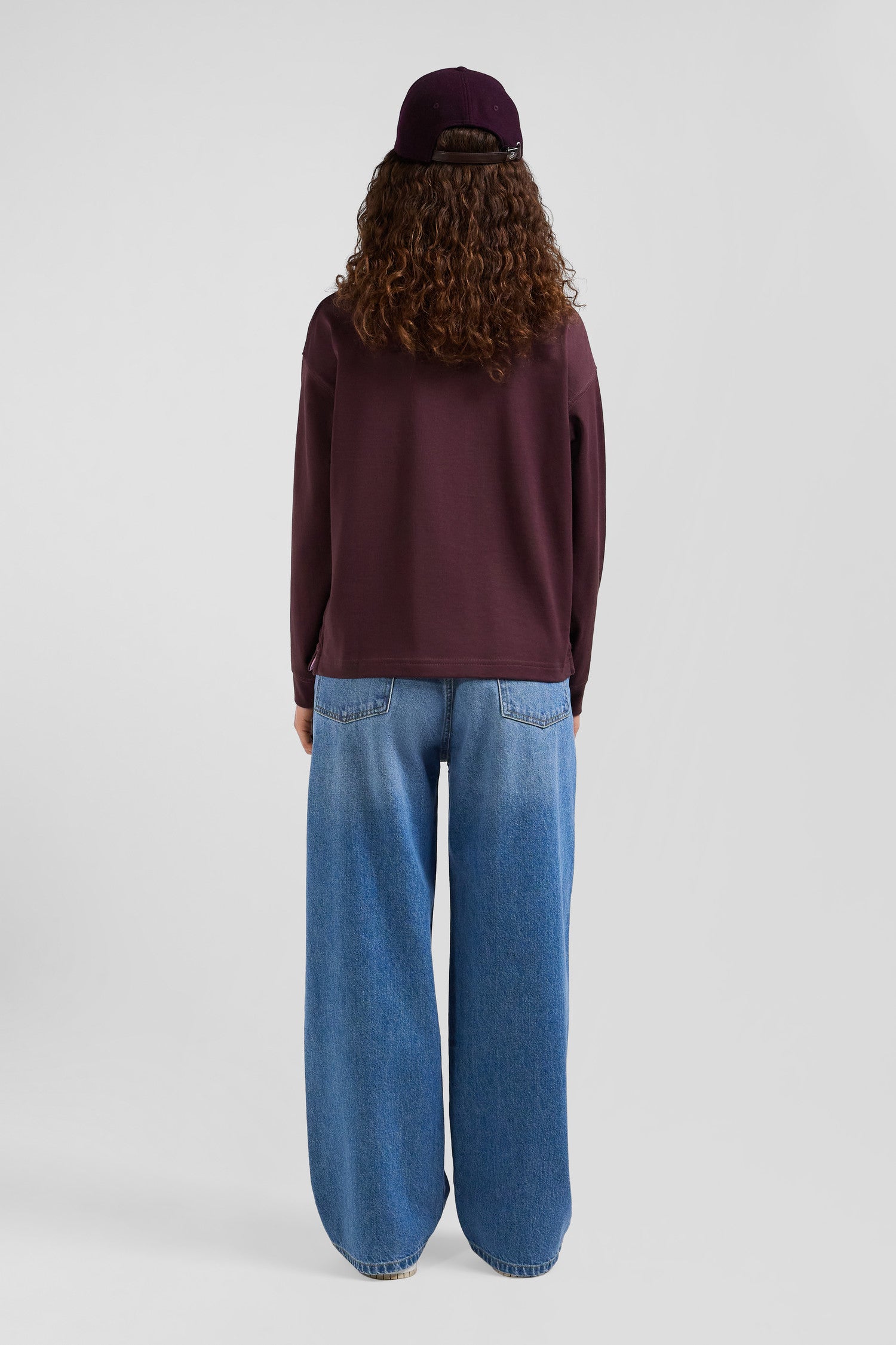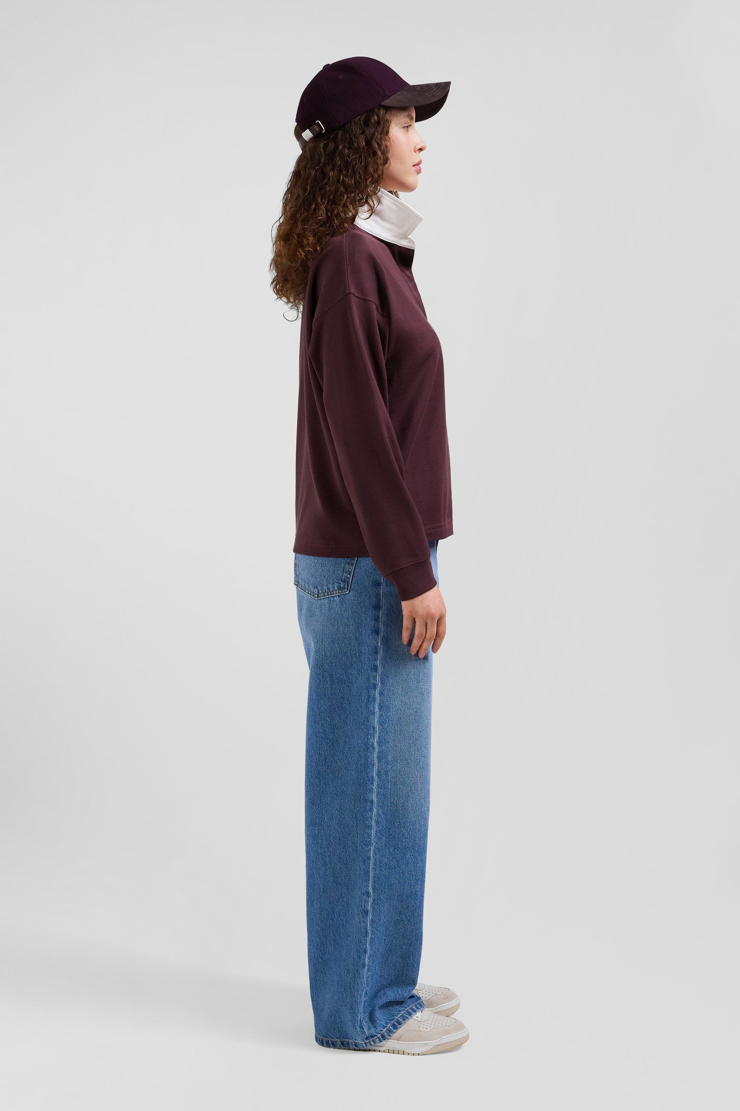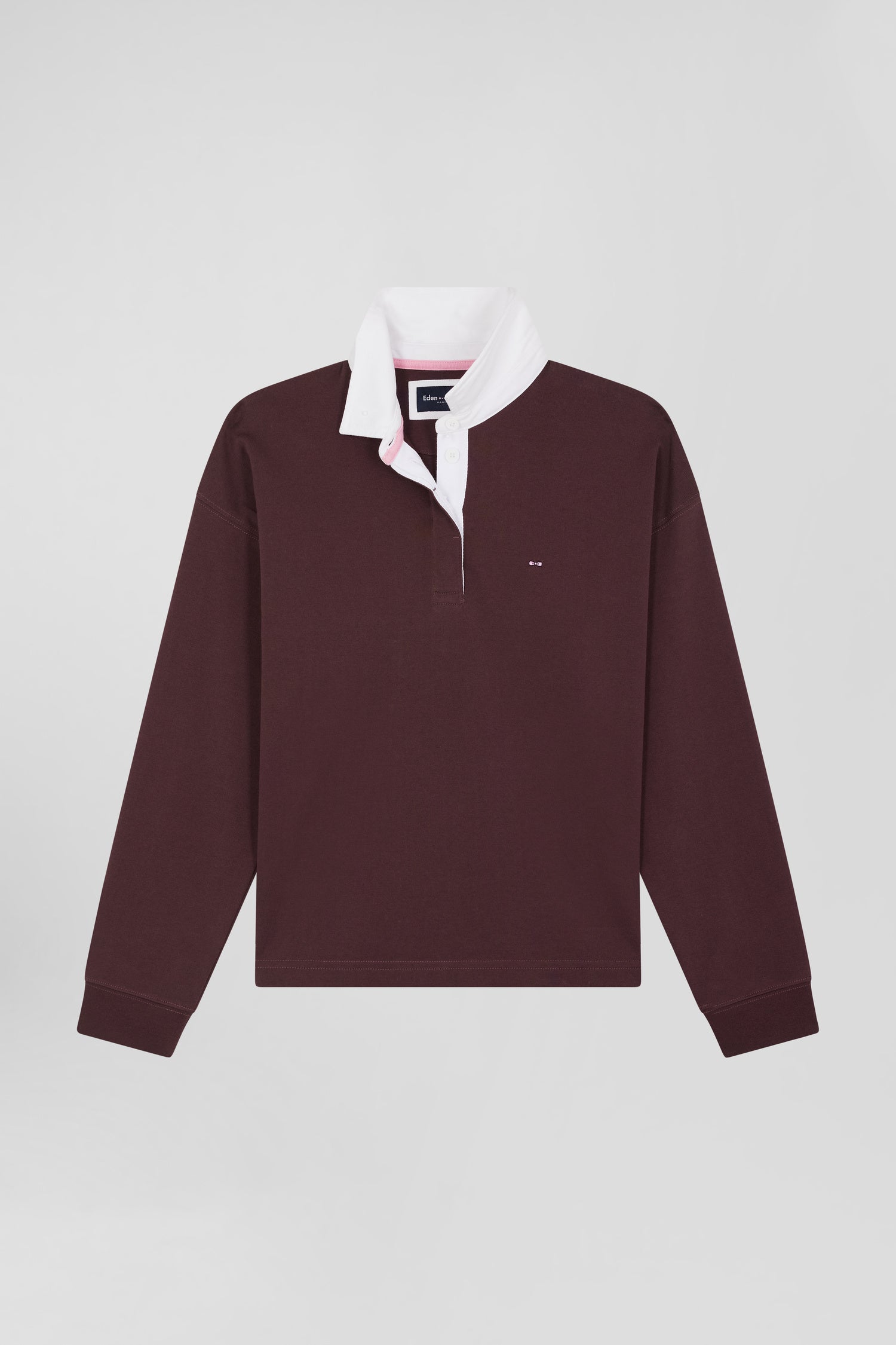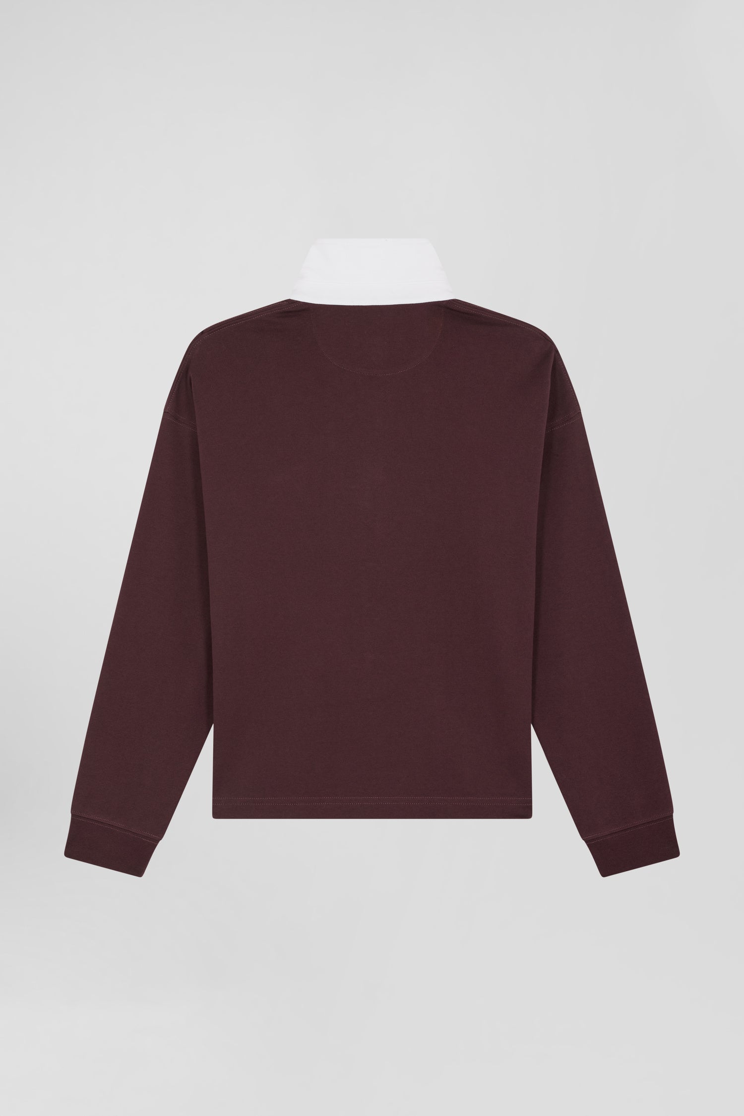 Relaxed burgundy long-sleeved cotton rugby shirt
