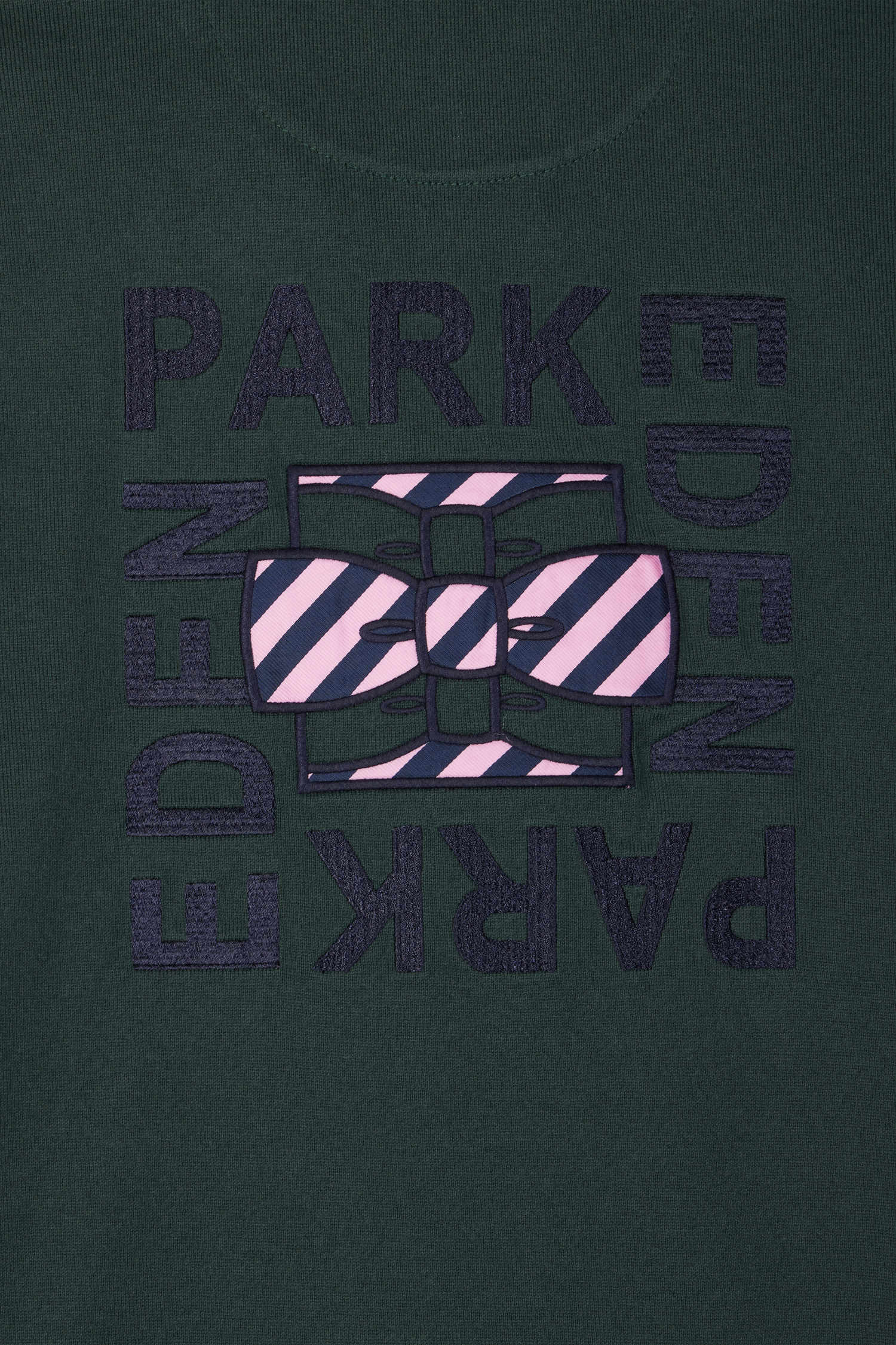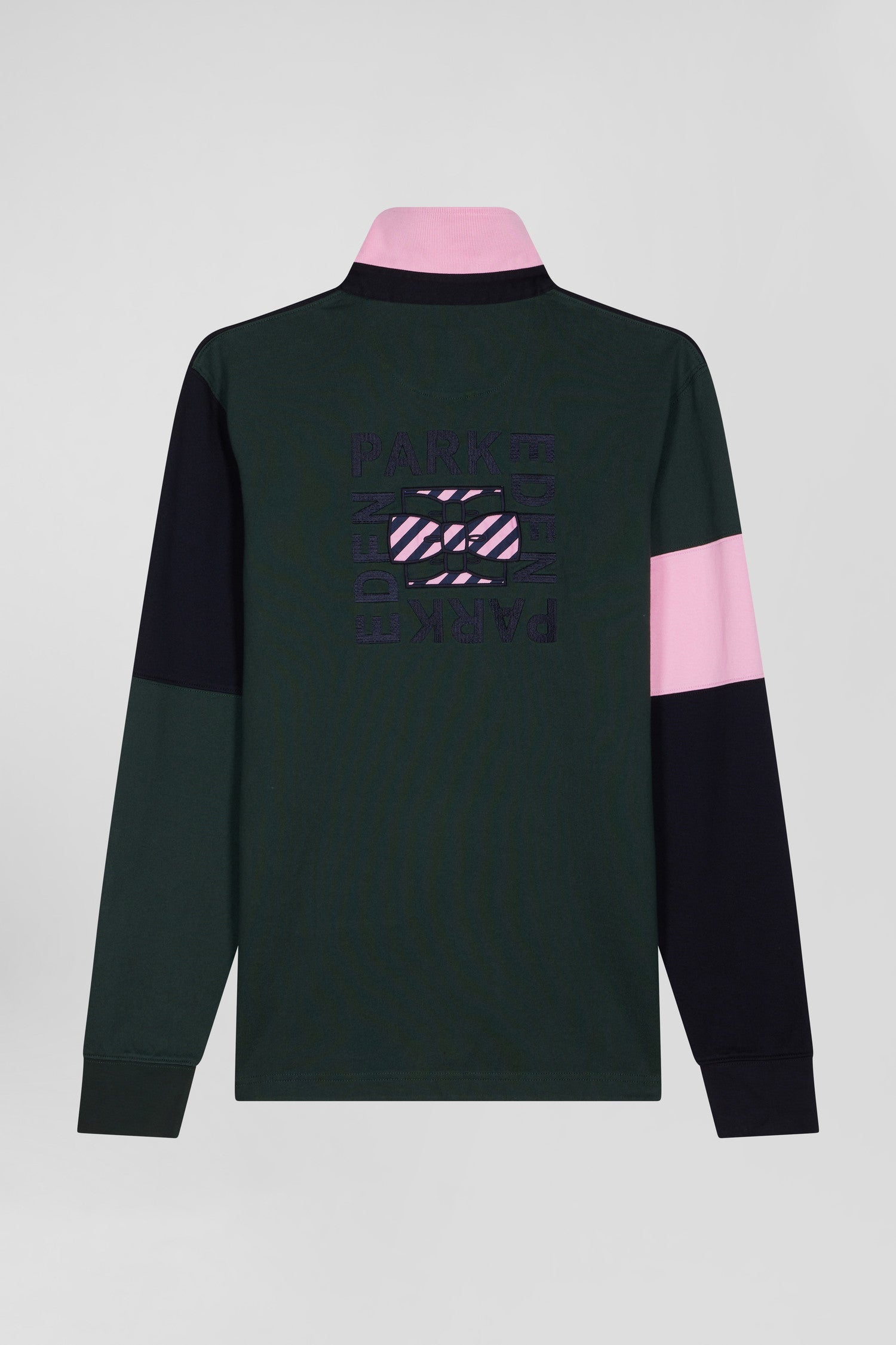 Regular green long-sleeved cotton rugby shirt with tie fabric patchwork
