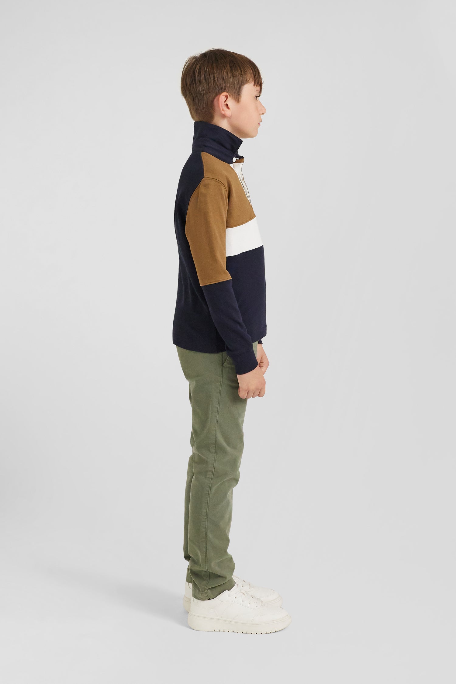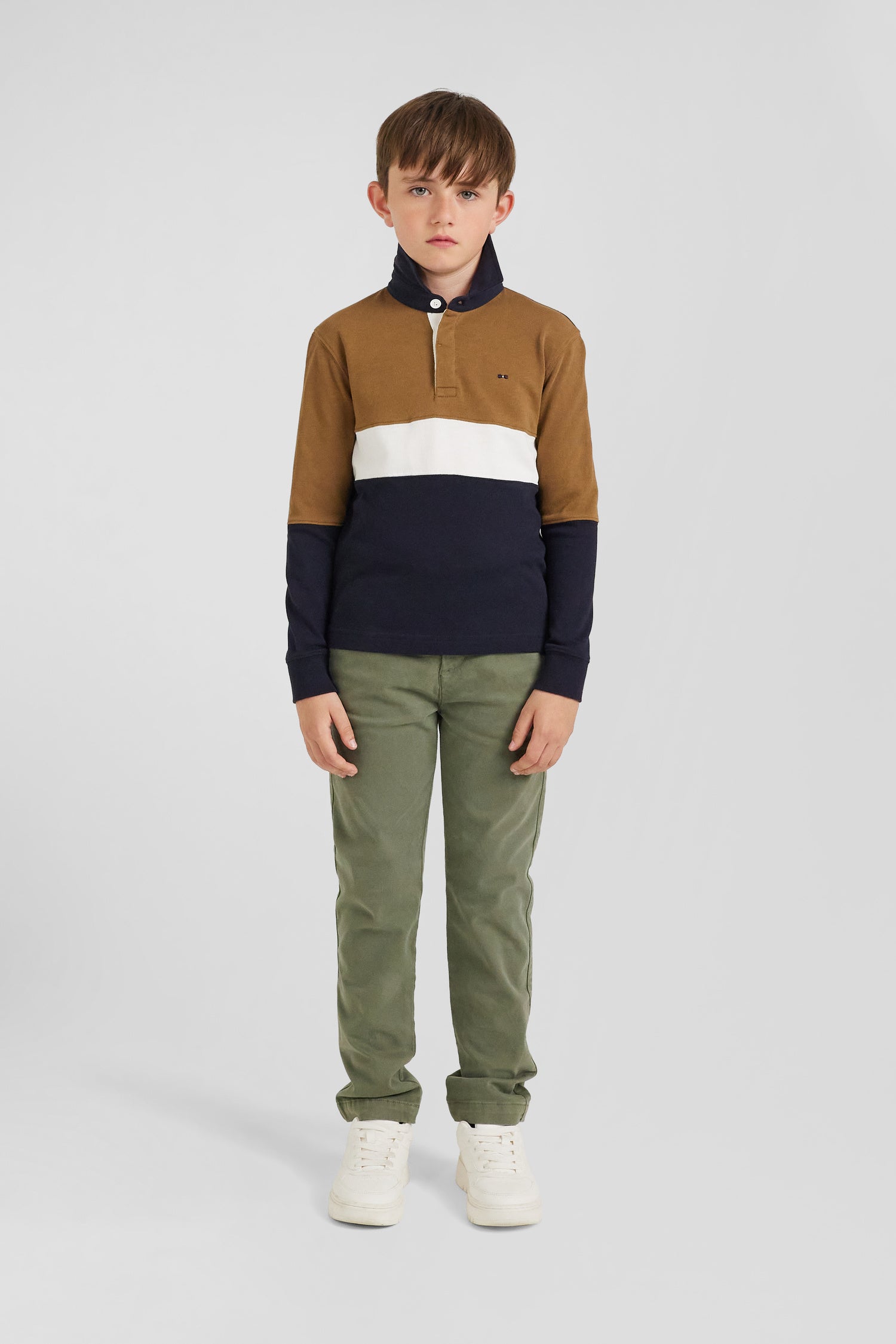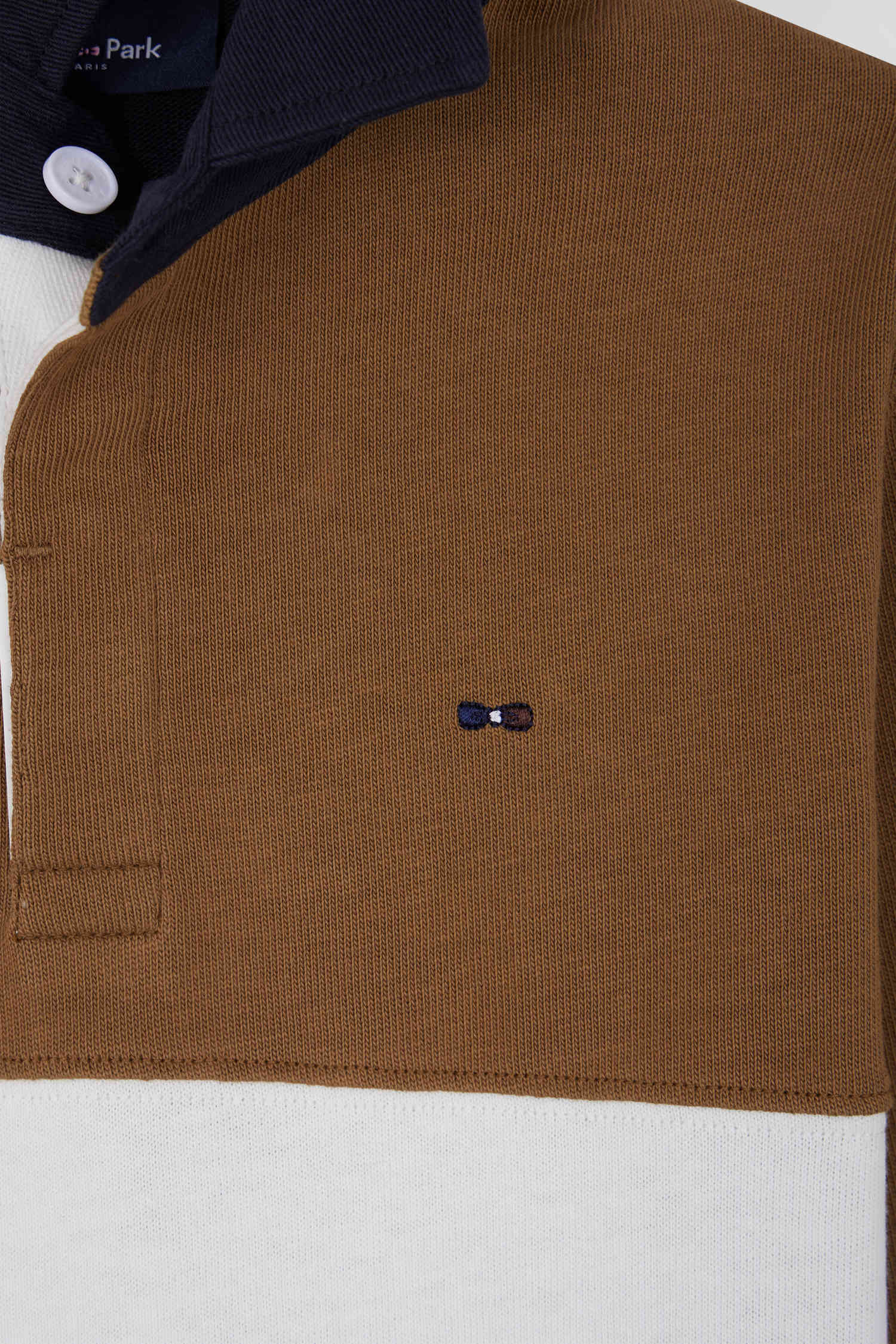 Introduce this iconic piece of French Flair spirit to your child's wardrobe with our tricolor jersey. This jersey captures the spirit of rugby with a vibrant design. The navy twill collar accentuates its sporty look, while sophisticated embroidery on the back celebrates Eden Park's rugby style. Signed rugby ball buttons add an authentic touch, making this jersey a perfect piece for young fans eager to showcase their passion for the sport, always with elegance and comfort.